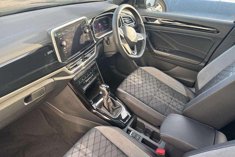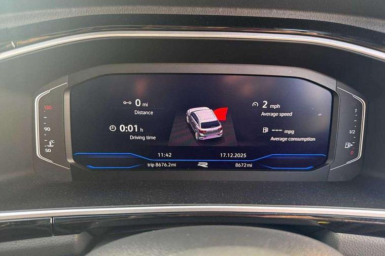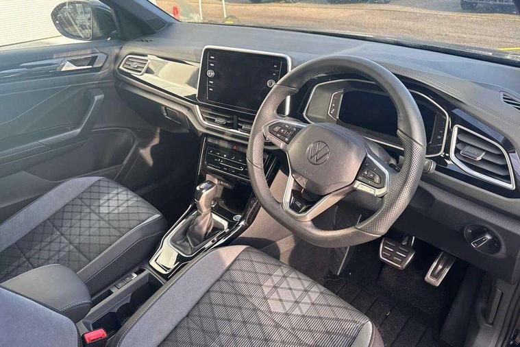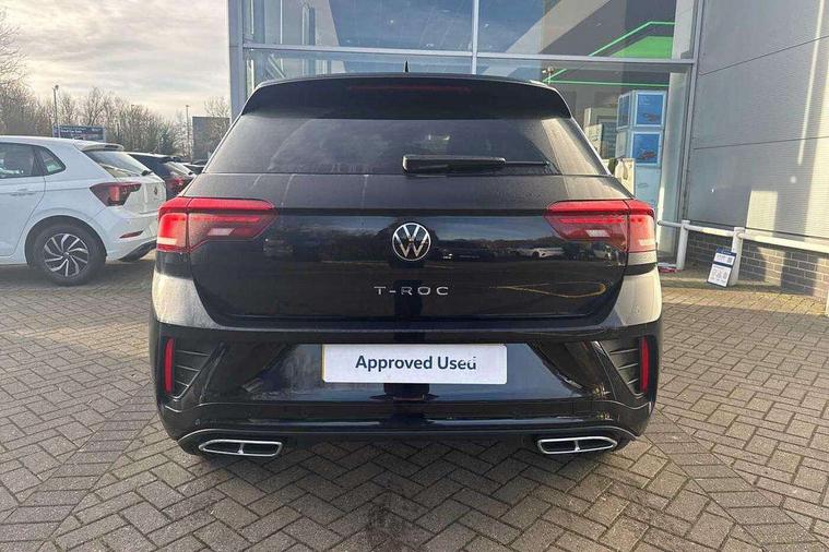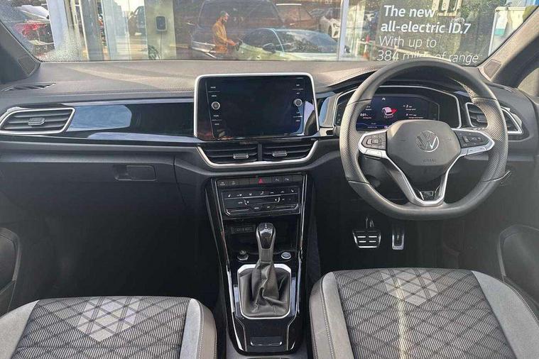 10.25" Digital cockpit pro, Advanced driver attention and drowsiness monitor, Emergency call service, Lane keeping system Lane Assist, Mobile phone interface, Modified key software - reduce switch off time for key status change to Long no motion, Online services, Park assist including front and rear parking sensors, Service interval indicator, Tailgate/trunk lid release from outside, Think blue trainer driver tips and journey analysis, Warning sound and light for front seatbelts unfastened, Wireless app connect, Battery regeneration during braking, Start/stop function with battery regeneration, DAB Digital radio, Diversity antenna for FM reception, Front and rear 6 speakers, Music playback - MP3, WMA and AAC files, Premium USB cable in choice of either Apple or Android smartphone compatibility, SD card slot, Simultaneous pairing of 2 compatible mobile devices, Title and cover art display, We Connect and We Connect Plus functionality, Auto dimming interior rear view mirror, Automatic hazard lights activation under emergency braking, Automatic headlight control with LED separate daytime running lights with coming/leaving home function, Body coloured exterior mirror housings and door handles, Electrically adjustable and heated door mirrors, Extended roof spoiler, Exterior mirrors aspherical on driver side, convex on front passenger side, External USB type C socket and charging sockets, Front windscreen wiper with intermittent wipe and 4 position delay, Heated rear window, LED 3rd brake light, LED rear combination lamps, LED rear number plate lights, Power windows with comfort operation and circuit breaker, Privacy glass for rear side windows and rear window, R-Line design body coloured bumpers, Rain sensor, Rear exhaust tailpipe, Rear fog light on one side and reversing lights on both sides, Rear side wing doors, Rear wash/wipe with intermittent wipe setting, Remote electrically foldable door mirrors, puddle lights and reverse activated passenger's door mirror, 12V power socket in centre console, 3 rear head restraints, 3 seat bench in 2nd row, 4 load lashing points in luggage compartment, Air care climatronic air conditoning system with active combination filter and 2-zone temperature control, Black roof lining, Chrome plated decorative trims, Chrome plated radiator grille inserts, air vent surrounds and light switch surrounds, Door and side trim panel with leatherette insert, Front + rear carpet mats, Front centre armrest, Front cupholders x 2, Front footwell illumination, Front reading light, Front scuff plates with R Line logo, Front seat back storage pockets, Glove compartment door with light, Instrument lighting, white adjustable panel illumination, Interior ambient lighting and surround lighting, Interior light delay, Isofix child seat preparation, Leather gearshift handle, Load-through provision with cup holder when folded down ('Unsplit rear seat bench, split folding backrest, with centre armrest), Luggage compartment lighting, Single front passenger seat, Stainless steel pedals, Storage compartment in left and right luggage area, Storage compartment in rear doors, Storage compartments in driver and front passenger doors, Sunvisors with illuminated vanity mirrors, Variable boot floor, height adjustable and removable, Driver assistance pack without proactive passenger protection - T-Roc, 3 point height adj front seatbelts + pretensioners, 3 point seatbelts in outer rear with ECE label, ABS, Child locks on rear doors, City emergency braking and pedestrian monitoring, Driver and front passenger airbag with front passenger airbag deactivation, Driver and front passenger safety-optimised head restraints, Drivers seatbelt reminder, Electronic parking brake, Electronic Stability Control (ESC) inc EDL (Electronic Differential Lock) and ASR (Traction Control), Front and rear passengers curtain airbag system including front side airbags, Hill start assist, Predictive pedestrian protection, Rear disc brakes, Two tone horn, Tyre pressure loss indicator, Volkswagen roadside assistance, Piano black decorative inserts in dashboard and front door trim panels, Trims for alloy wheels,