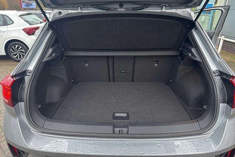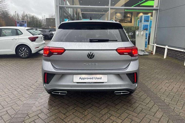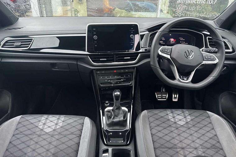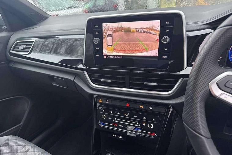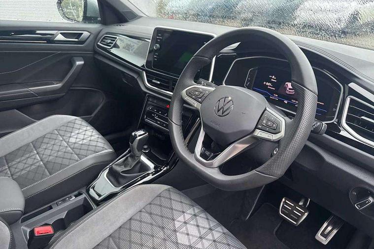10.25" Digital cockpit pro, Advanced driver attention and drowsiness monitor, Dynamic road sign display, Emergency call service, Lane keeping system Lane Assist, Mobile phone interface, Modified key software - reduce switch off time for key status change to Long no motion, Online services, Park assist including front and rear parking sensors, Service interval indicator, Tailgate/trunk lid release from outside, Think blue trainer driver tips and journey analysis, Warning sound and light for front seatbelts unfastened, Wireless app connect, Battery regeneration during braking, Start/stop function with battery regeneration, DAB Digital radio, Diversity antenna for FM reception, Front and rear 6 speakers, Music playback - MP3, WMA and AAC files, Premium USB cable in choice of either Apple or Android smartphone compatibility, SD card slot, Simultaneous pairing of 2 compatible mobile devices, Title and cover art display, We Connect and We Connect Plus functionality, Auto dimming interior rear view mirror, Automatic hazard lights activation under emergency braking, Automatic headlight control with LED separate daytime running lights with coming/leaving home function, Body coloured exterior mirror housings and door handles, Electrically adjustable and heated door mirrors, Extended roof spoiler, Exterior mirrors aspherical on driver side, convex on front passenger side, External USB type C socket and charging sockets, Front windscreen wiper with intermittent wipe and 4 position delay, Heated rear window, LED 3rd brake light, LED rear combination lamps, LED rear number plate lights, Power windows with comfort operation and circuit breaker, Privacy glass for rear side windows and rear window, R-Line design body coloured bumpers, Rain sensor, Rear exhaust tailpipe, Rear fog light on one side and reversing lights on both sides, Rear side wing doors, Rear wash/wipe with intermittent wipe setting, Remote electrically foldable door mirrors, puddle lights and reverse activated passenger's door mirror, 12V power socket in centre console, 3 rear head restraints, 3 seat bench in 2nd row, 4 load lashing points in luggage compartment, Air care climatronic air conditoning system with active combination filter and 2-zone temperature control, Black roof lining, Chrome plated decorative trims, Chrome plated radiator grille inserts, air vent surrounds and light switch surrounds, Door and side trim panel with leatherette insert, Front + rear carpet mats, Front centre armrest, Front cupholders x 2, Front footwell illumination, Front reading light, Front scuff plates with R Line logo, Front seat back storage pockets, Glove compartment door with light, Instrument lighting, white adjustable panel illumination, Interior ambient lighting and surround lighting, Interior light delay, Isofix child seat preparation, Leather gearshift handle, Load-through provision with cup holder when folded down ('Unsplit rear seat bench, split folding backrest, with centre armrest), Luggage compartment lighting, Single front passenger seat, Stainless steel pedals, Storage compartment in left and right luggage area, Storage compartment in rear doors, Storage compartments in driver and front passenger doors, Sunvisors with illuminated vanity mirrors, Variable boot floor, height adjustable and removable, Driver assistance pack without proactive passenger protection - T-Roc, 3 point height adj front seatbelts + pretensioners, 3 point seatbelts in outer rear with ECE label, ABS, Child locks on rear doors, City emergency braking and pedestrian monitoring, Driver and front passenger airbag with front passenger airbag deactivation, Driver and front passenger safety-optimised head restraints, Drivers seatbelt reminder, Electronic parking brake, Electronic Stability Control (ESC) inc EDL (Electronic Differential Lock) and ASR (Traction Control), Front and rear passengers curtain airbag system including front side airbags, Hill start assist, Predictive pedestrian protection, Rear disc brakes, Two tone horn, Tyre pressure loss indicator, Volkswagen roadside assistance, Piano black decorative inserts in dashboard and front door trim panels, Trims for alloy wheels,