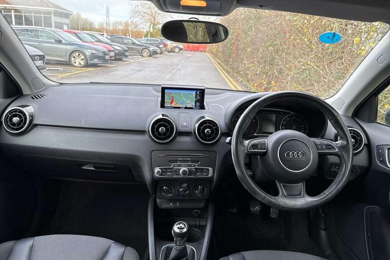 Electro-mechanical PAS, Low washer fluid indicator, Service interval indicator, Voice control system, Additional SD card reader, Audi music interface, Bluetooth audio streaming, DAB Digital radio, Adaptive brake lights, Electric adjustable door mirrors, Electric front windows, Electric rear windows, Front fog lights, Heat insulating glass, Heated door mirrors, Heated rear windscreen, Rear wiper, 12V Accessory socket in centre console, 3 spoke leather multifunction sports steering wheel, Adjustable rear head restraints, Cupholders in centre console, Door sills trims with aluminium inlays, Front floor mats, Front head restraints, Front sports seats, Height adjustable front seats, Illuminated glovebox, Isofix attachments on outer rear seats, Jack and tool kit, Leather handbrake, Lumbar adjustment for front seats, Rake/reach adjustable steering wheel, Split folding rear seats, Connectivity pack - A1, ABS/EBD, Brake assist function, Driver and passenger side airbags, Driver/Front Passenger airbags, EDL, ESP with ASR, First aid kit, Front and rear seatbelt reminder, Front passenger airbag deactivation, Head airbags, Height adjustable front seatbelts, Tyre pressure monitor, Warning triangle, Locking wheel bolts, Remote control central locking, Thatcham category 1 alarm + immobiliser, Tyre repair kit,