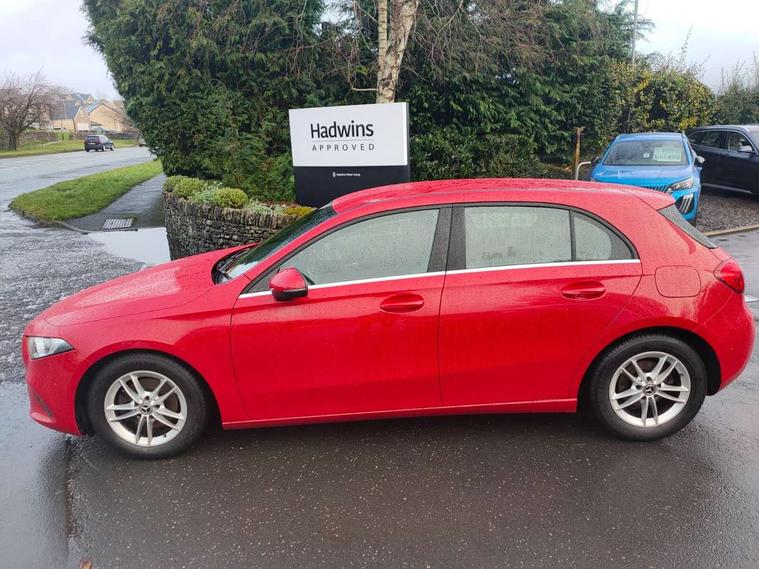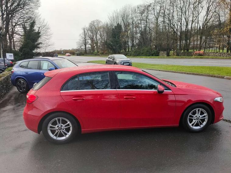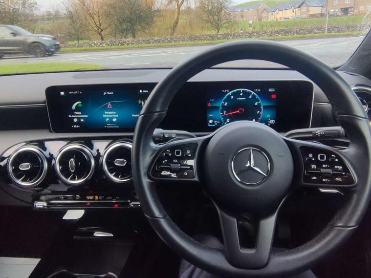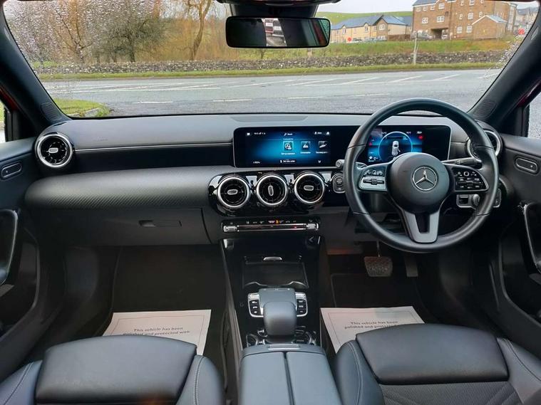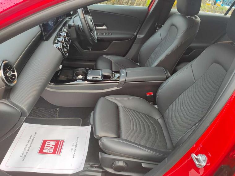 180 degree rear view camera with parking guidelines, 7" colour screen in instrument panel, Active lane keep assist, Active park assist with parktronic system including front and rear parking sensors, Attention assist, Brake pad wear indicator warning light, Cruise control + speed limiter, Direct steering, DYNAMIC SELECT with a choice of driving modes (ECO, Comfort, Sport and Individual), ECO start/stop function, Fluid level warning indicator for fuel, oil, coolant and washer fluid, Hard-disk navigation, Hey Mercedes Voice activation, Lamp failure indicator, Mercedes me connect including emergency call system, accident recovery, breakdown and maintenance management, Outside temperature gauge, Radio aerial integrated into roof spoiler, Service indicator (ASSYST), Speed sensitive power steering, Trip computer, Lowered comfort suspension, DAB Digital radio, Dual bluetooth interface, 2 USB ports (type C), MBUX multimedia system with DAB digital radio and touchpad including satellite navigation, 4 Electric Front and Rear windows, Active aerodynamics with AIRPANEL in the front apron, Adaptive brake lights, Black weather strip, Blue tinted glass, Body colour bumpers, Body colour door handles, Body colour side skirt, Body coloured door mirrors, Chrome beltline trim, Diamond radiator grille with black pins with one louvre in silver + chrome insert, Electric adjustable and heated door mirrors with integrated LED side indicators, Halogen headlamps with integrated daytime running lights, Headlamp assist automatic headlamp activation, Heated glass rear windscreen + timer control, LED third brake light, Part LED tail light, Rain sensor windscreen wipers, Rear fog lights, Rear wiper, 12V socket, 3 Spoke leather multi function steering wheel, 40:20:40 split folding rear seats, Air conditioning thermatic, Air vents surround and cruciform nozzle in silver chrome, Artico man-made leather/Bertrix fabric upholstery, Auto Mercedes-Benz child seat recognition sensor, Black roof lining, Controller on centre console with chrome surround, Cup holder and stowage compartment lighting, Floor mats, Freight packaging without tie-down hooks, Front centre armrest with storage compartment, Front comfort seats with adjustable head restraints, Front door sills with Mercedes Benz lettering, Front doors with ambient and signal light, Front footwell lights, Front reading lamps in left and right console downlighter, Front seat backs luggage nets, Front seat cushion length adjustment, Front signal exit lamp, Front vanity lights, Gearshift paddles on steering wheel, Handle recess/closing light, Heated front seats, Height/reach adjustable steering column, Illuminated glove compartment stowage, ISOFIX Child seat top tethers and anchor fixings, Luggage compartment cover, Manual height adjustable front seats, Oddments tray lighting, Rear head restraints, Rear Reading Lamps, Seat occupancy sensor for front passenger seat, Spectacles compartment for driver, Storage compartment under load area floor, Stowage compartment in centre console with retractable cover, Sunvisors with illuminated vanity mirrors, Touchpad, Touchpad illumination, Twin front cupholders, Light and sight pack - A Class, Mirror package - A Class, Seat comfort pack - A Class, 3 rear 3 point seatbelts, ABS with Brake Assist, Active bonnet, Active brake assist includes forward collision warning system with autonomous braking, Adaptive brake assist with hold function and hill start assist, Black seatbelts, Childproof locks manually operated for rear doors and electrically operated for rear power windows, Crash responsive emergency lighting, Driver and passenger head and side airbags, Drivers knee airbag, Dual stage driver/passenger airbags, Electronic parking brake, ESP curve dynamic assist, ESP with ASR, Front and rear seatbelt reminder, Tyre pressure monitoring system, Warning triangle and first aid kit, Window airbags, Alarm system/interior protection/immobiliser, Keyless Go, Remote central locking and crash sensor with emergency opening function, 16" 5 twin spoke light alloy wheels painted in vanadium silver, Summer tyres, Tirefit sealant kit,