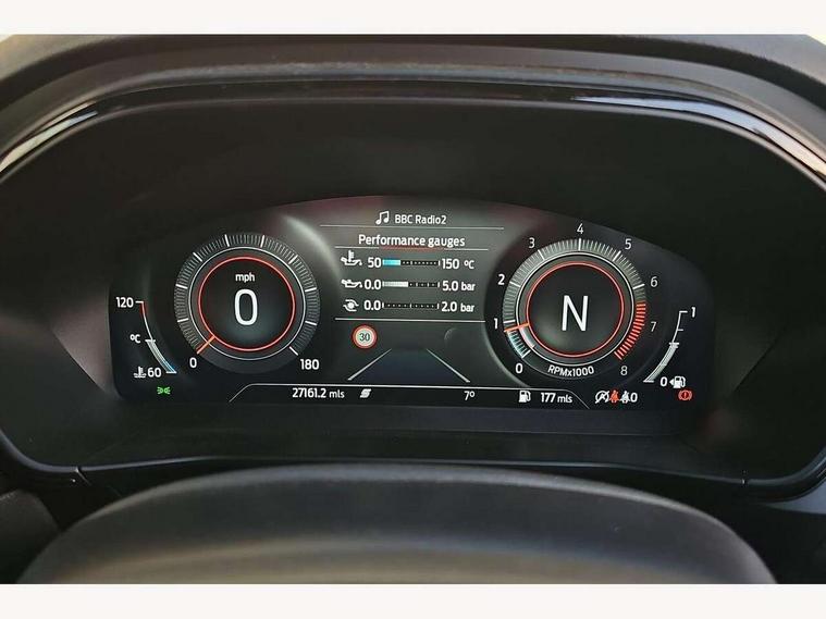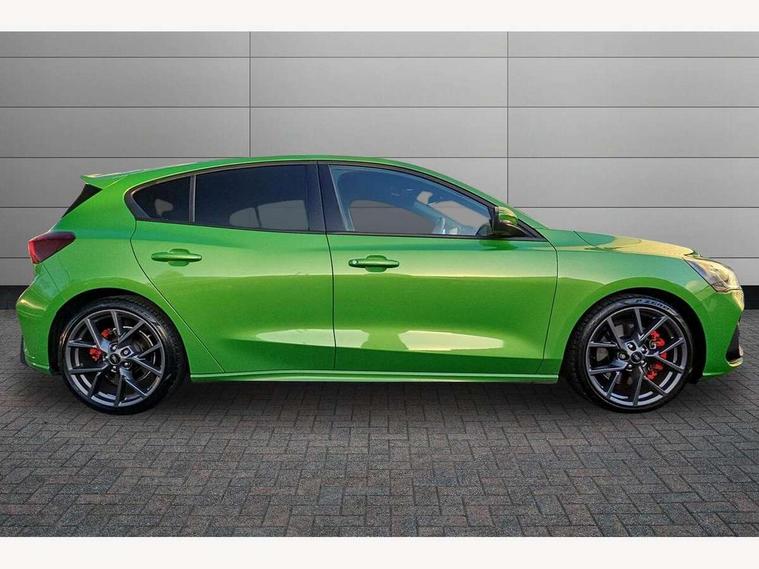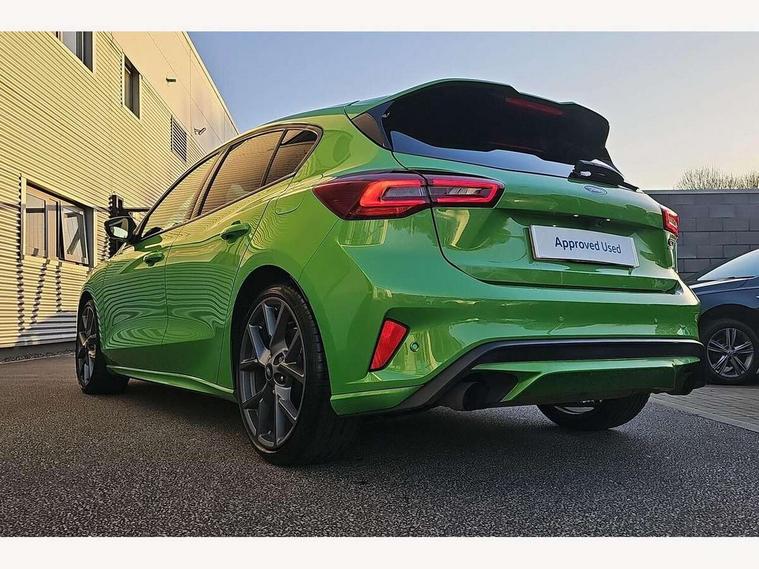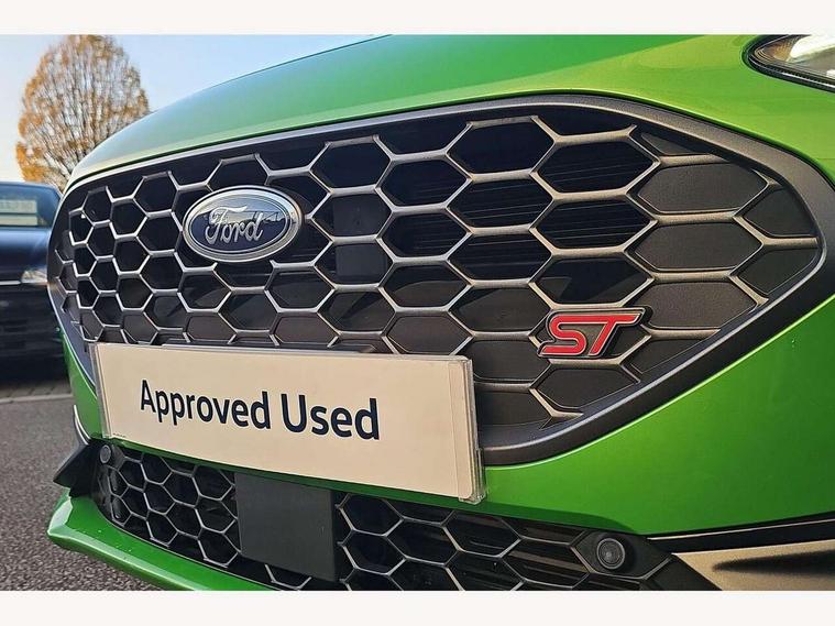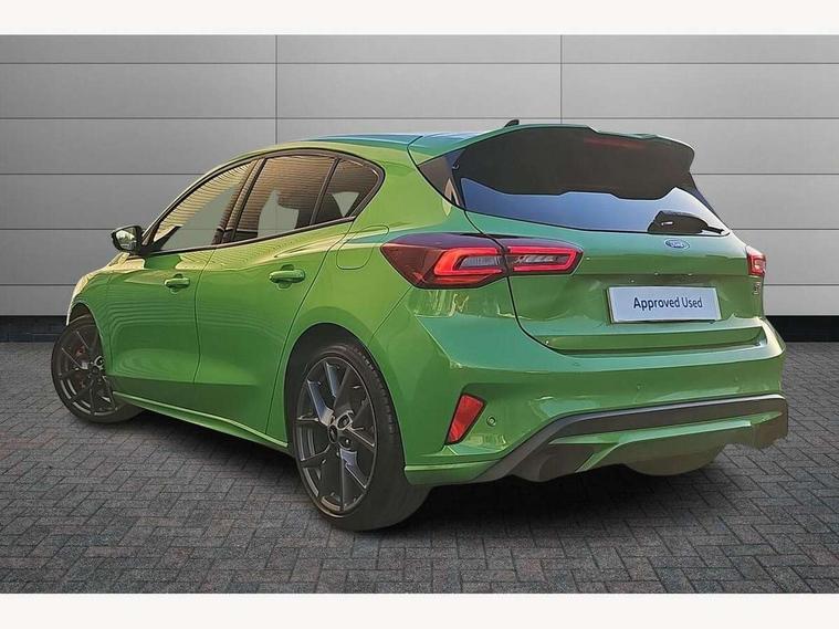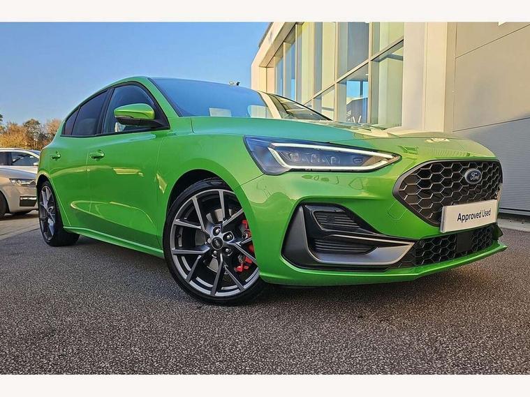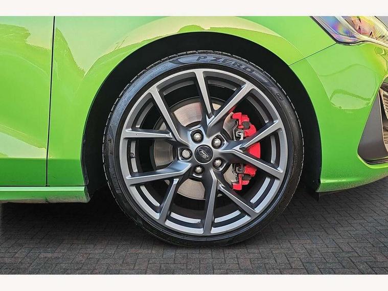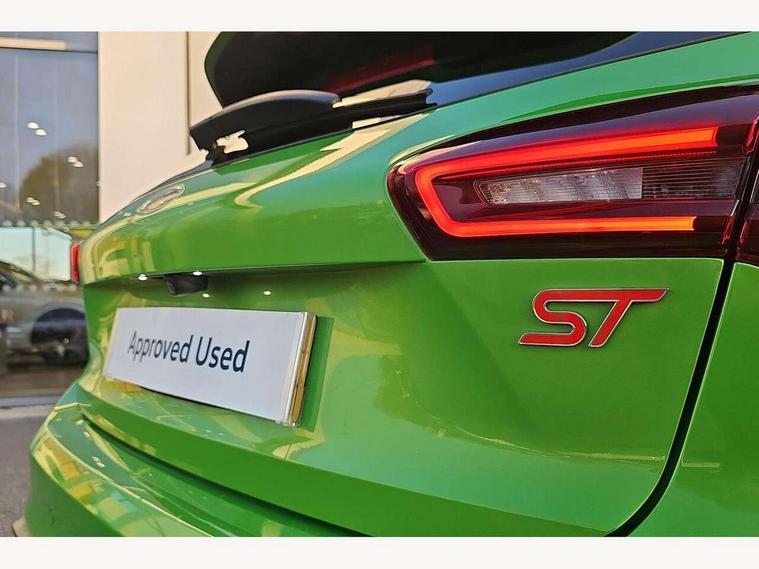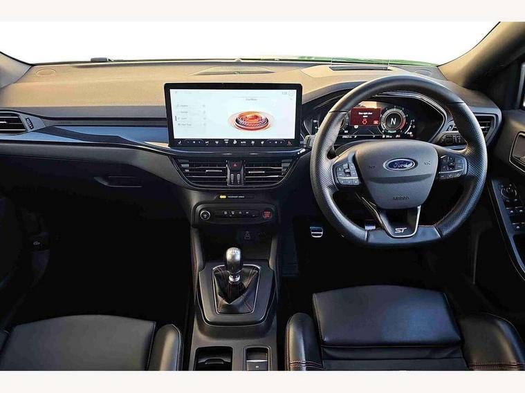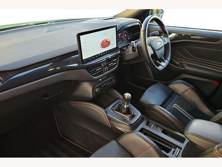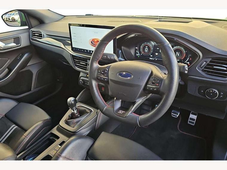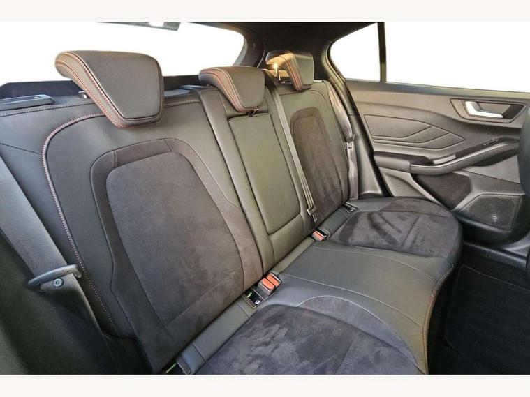 12.3" Digital instrument cluster, Bluetooth system, Digital clock, Easy fuel capless refuelling system, Eco mode, Ford SYNC4 Nav with 13.2'' touchscreen, DAB, Emergency Assistance, Apple Carplay & Android Auto, B&O Premium Audio with 10 speakers, FordPass Connect, Lane keeping system - lane keeping alert and lane keeping aid, PAS, Rev counter, Selectable drive mode, Service interval indicator, Trip computer, Wireless charging pad, Unique ST sport suspension with limited slip differential, 2 USB ports, Auto headlamps (on/off), Auto high beam assist, Body coloured door handles, Daytime running lights, Dynamic matrix LED headlamps including Glare free lighting, Electrically operated front and rear windows with one touch opening and closing, Electrically operated heated power fold door mirrors with puddle lamp with side indicators, Front variable intermittent wipers with electric wash, Heated rear window, LED rear lamps, LED third brake light, Privacy glass, Quickclear heated windscreen, Rain sensor, Rear side wing doors, Tailgate wash/wipe, Unique ST upper & lower grille with full bodystyling kit, 3 rear headrests, 3 seat bench in 2nd row, Dual zone electronic air temperature control, Height adjustable front headrests, Isofix child seat preparation, Load through ski hatch, Partial sensico upholstery with ford performance seat, Power 6-way driver seat adjust, with power lumbar adjust, Power 6-way passenger seat adjust, with power lumbar adjust, Reach + rake adjustable steering column, Single front passenger seat, Winter pack - Focus, 3x3 point rear seatbelts, ABS+Electronic Brake force Distribution, Auto hold function, Driver airbag, EDL traction control, Electronic parking brake, Electronic stability control, Front and rear seatbelt reminder, Front inertia reel height adjustable seatbelts with pre-tensioners, Front passenger airbag, Front side airbags, Passenger airbag deactivate switch, Post collision braking, Pre collision assist with autonomous emergency braking and pedestrian/cyclist detection, Red brake calipers, Remote/power child rear door locks, Side curtain airbags, Three rear inertia reel lap/diagonal seatbelts, Tyre pressure monitoring system, Keyless entry and keyless start, MyKey system, Remote central locking & engine immobiliser, Thatcham alarm with power door dead locks, 19" 5x2 spoke magnetite matte finish alloy wheels with mini spare wheel,