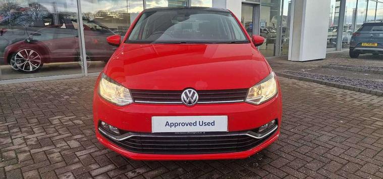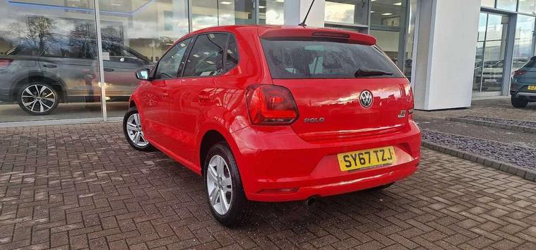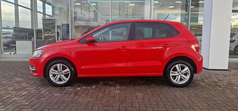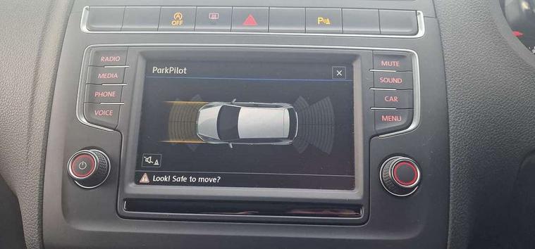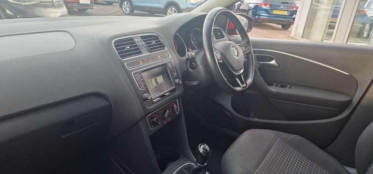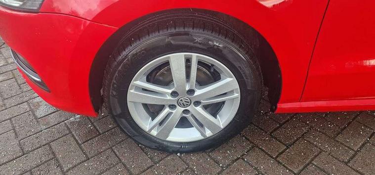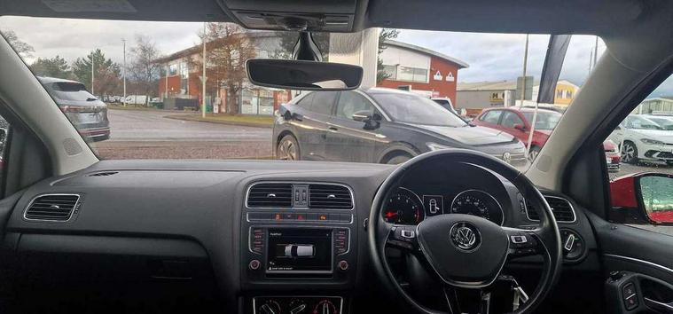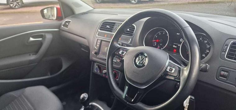 App-Connect, Bluetooth Telephone preparation, Driver alert system, Multi function display, Multifunction computer, PAS - speed related, Service interval indicator, Ultrasonic front and rear optical and audible parking sensors, Warning buzzer and light for front seatbelts unfastened, 6 speakers, Composition media system with radio, glovebox mounted CD, colour touch screen, SD card, aux-in, USB, multimedia interface, DAB Digital radio, Black grille with chrome surround, Body colour bumpers, Body colour door handles, Body colour door mirrors, Body coloured side sills, Chrome trimmed front air intake surrounds, Electric folding door mirrors, Electric front windows, Electric operated/heated door mirrors, Front fog lights with static cornering function, Front wash/wipe with interval delay, Heat insulated tinted glass 65% light absorbing from B pillar back, Heated rear window with auto timer, Rear electric windows, Rear windscreen washer and wiper with interval delay, 12V power socket in centre console, 2 bag hooks in luggage compartment, 2 cupholders, 3 rear head restraints, 3 spoke steering wheel, 4 grab handles, 60/40 split folding rear seat, Centre console storage, Chrome interior door handles, Driver and passenger sunvisors, Driver seat height adjust, Dust/pollen filter, Front door pockets, Front passenger seat height adjust, Front seat backrest storage nets, Front/rear reading lights, Glovebox, Height/reach adjustable steering column, Illuminated vanity mirror, Interior light with delay, Isofix Preparation 2 Rear child seats, Luggage compartment cover, removable, Luggage compartment lighting, Matt chrome gear lever gaiter surround, Multifunction leather steering wheel with leather gear knob/handbrake grip, Storage compartment in front doors, Storage compartment in rear doors, Sunglasses holder, Variable boot floor, Light and sight pack - Polo, 3 point height adj front seatbelts + pretensioners, 3x3 point rear seatbelts, ABS, Automatic post collision braking, Driver/front passenger airbag, Driver/Passenger whiplash optimised head restraints, ESC - Electronic Stability Control + traction control, ESP with EDL + ASR, Hill hold control, Hydraulic Brake Assist (HBA), Tyre pressure monitoring system, Alarm with remote central locking and interior protection, Electronic engine immobiliser, Air vents in Matt chrome, Matt chrome interior trim, 15" steel spare wheel,