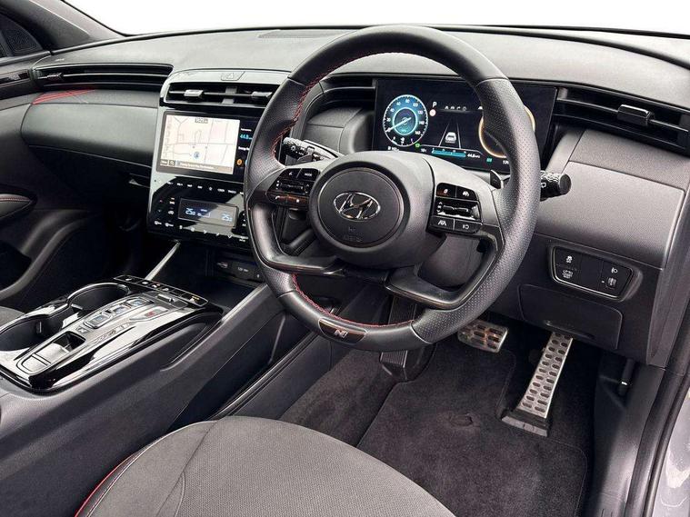10.25" super vision instrument cluster, 10.25" touchscreen satellite navigation with mapcare and live services, Apple car play/Android Auto, Bluetooth system, Cruise control, Digital clock, Drive mode selector, Driver attention warning, E-call, Emergency stop signalling system, Forward Collision Avoidance Assist (FCA) - Car, Pedestrian and Cycle, Front and rear parking sensors, Intelligent speed limit assist, Lane follow assist, Lane keep assist, PAS, Rev counter, Reversing camera, Tailgate open warning light, Trip computer, Trip odometer, Voice recognition, Water temperature gauge, Windscreen washer fluid sensor and warning indicator, Wireless phone charging pad, Shift by Wire Gear Selector (SBW), 2 front and 2 rear speakers with 2 tweeters, DAB Digital radio, Steering wheel mounted audio/phone controls, USB connections in front and rear, Adjustable intermittent front windscreen wipers with aero wiper blade, Auto dimming rear view mirror, Automatic defog system, Automatic headlights with dusk sensor, Automatic windscreen wipers with rain sensor, Black headlamp bezels, Body colour bumpers, Body colour door mirrors with integrated indicators, Body colour exterior door handles, Body coloured wheel arches, Dark chrome effect radiator grille, Electrically adjustable, heated and power folding door mirrors, Follow me home headlights, Front and rear electric windows with anti-trap mechanism and one touch control, Front fog lights, Gloss black door frame moulding, High beam assist, High level third brake light, LED daytime running lights, LED rear lights, MFR - LED headlight with static bending light, N Line body coloured side mouldings, N Line design front grille, N Line Exclusive front and rear bumpers, N Line rear spoiler with fins, Positioning Lights - LED, Privacy glass - Rear windows and tailgate, Rear side wing doors, Rear wash/wipe with intermittent wipe setting, Roof rails, Silver front and rear skid plate, Sports twin tip exhaust and diffuser, Tinted glass with windscreen shade band, Trailer stability assist, 12V power outlets in front console and luggage compartment, 3 seat bench in 2nd row, 40/20/40 split folding rear seat, Adjustable head restraints (Up and down), Alloy pedals, Ambient lighting, Black headliner, Cupholders in rear armrest, Door courtesy lights, Driver and passenger sunvisors with illuminated LED vanity mirrors, Driver's seat electric lumbar support, Driver's seat manual height adjust, Dual zone climate control, Front and rear door pockets, Front armrest with storage box, Front door pocket bottle holders, Front passenger seat lumbar adjustment, Heated front seats, Height/reach adjustable steering column, Illuminated/air conditioned glove compartment, ISOFIX child seat anchorage points attached on outer rear seats, Leather wrapped steering wheel, Leather/suede upholstery, Luggage area underfloor compartment, Luggage compartment lighting, Luggage cover, Luggage hooks, Manual height adjustable front passenger seat, Map and reading lights, N Line logo on steering wheel, Reclining rear seats, Retractable load cover, Single front passenger seat, Sunglasses holder, 3x3 point rear seatbelts, Active bonnet, Airbag - Front, front side, curtain and centre front airbags, Anti-lock brake system (ABS), Brake assist function, Childproof rear door locks, Curtain airbag roll over sensor, Downhill brake control, Electric parking brake with auto hold function, Electronic stability control, Front and rear seatbelt reminder, Front passenger airbag deactivation switch, Front seatbelt pretensioners, Hill start assist control (HAC), Multi-Collision braking, Outer rear seatbelt height adjustment, Seatbelt height adjustment for front seats, Traction control, Tyre pressure monitoring system with individual tyre pressure display - TPMS, Vehicle stability management, Alarm, Deadlocks, Immobiliser, Locking wheel nuts, Remote control central locking, Smart key with keyless entry and engine start/stop button, Speed sensitive auto door locking, 19" Alloy wheels, Tyre repair kit,