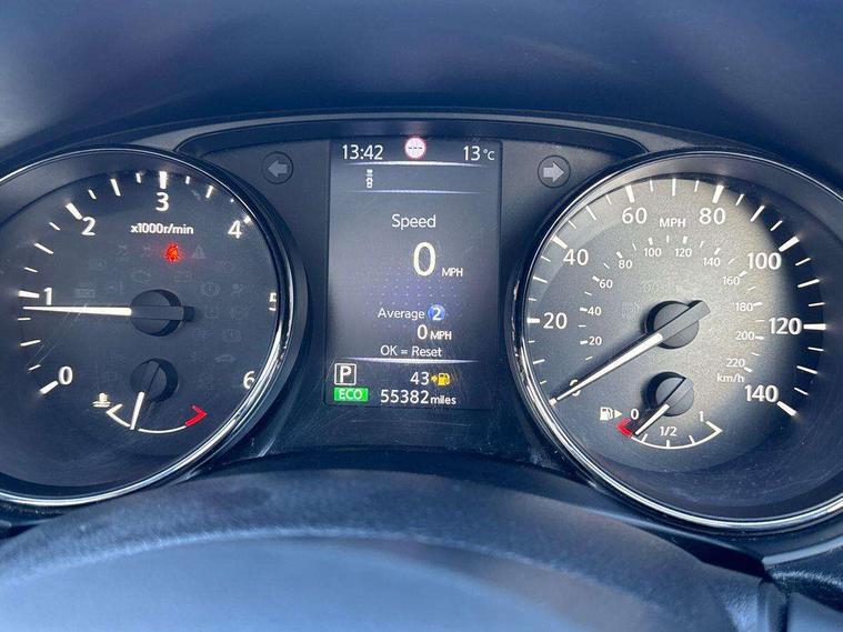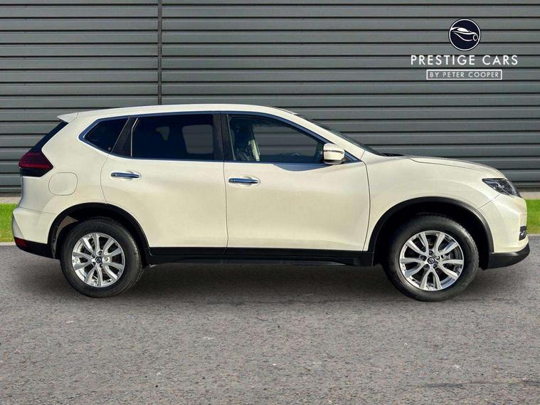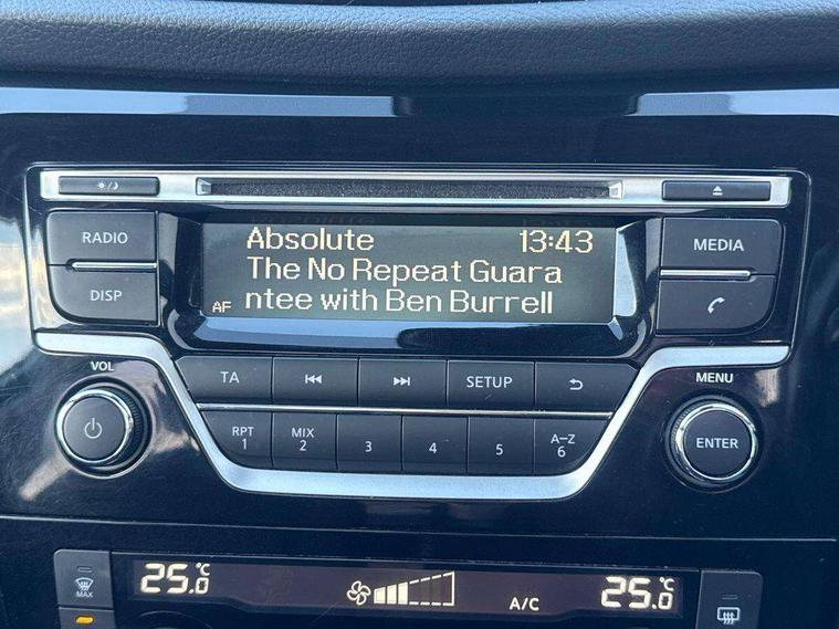 5" TFT driver information centre, Bluetooth phone integration system, Cruise control + speed limiter, Front and rear parking sensors, Lane departure warning system, PAS, Stand still assist auto hold function, Traffic sign recognition, Trip computer, Nissan chassis control (intelligent ride control, intelligent trace control, intelligent engine brake), 6 speakers, DAB Digital radio, Radio/CD, Steering wheel mounted audio controls, USB/aux input socket, Anti dazzle rear view mirror, Automatic headlights, Automatic rain sensing wipers, Black honeycomb front grille, Body colour door mirrors, Chrome door handles, Chrome window surround, Electric folding door mirrors, Electric heated door mirrors, Front and rear electric windows, Front fog lights, Halogen headlights, High beam assist, LED daytime running lights, Panoramic sunroof with one touch shade, Rear privacy glass, Rod antenna, 3 rear headrests, 60/40 split rear bench seat, Centre console storage box/armrest, Cloth upholstery, Configurable luggage board system, Driver's manual adjustable lumbar support, Dual zone climate control, Front and rear door pockets with bottle holders, Front cupholders, Front/rear armrests, Height adjustable front headrests, Individual rear reading lights, Isofix child seat attachment, Leather D shaped steering wheel, Leather steering wheel and gear knob, Pollen filter, Tilt/telescopic adjustable steering wheel, 3 point seatbelts on all seats, 6 airbags - Driver, front passenger, curtain and side airbags, ABS, Child locks on rear doors, EBD + Brake Assist, Electric parking brake, ESP + traction control, Intelligent emergency braking with pedestrian recognition, Seatbelt warning, Tyre pressure monitoring system, Immobiliser, Remote central locking, Thatcham Cat.1 alarm, 17" alloy wheels, Full size spare wheel,
