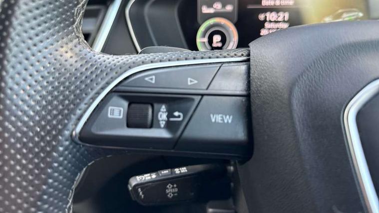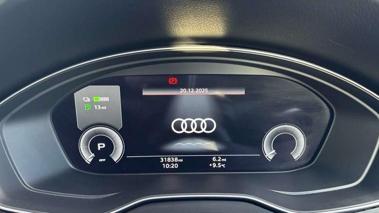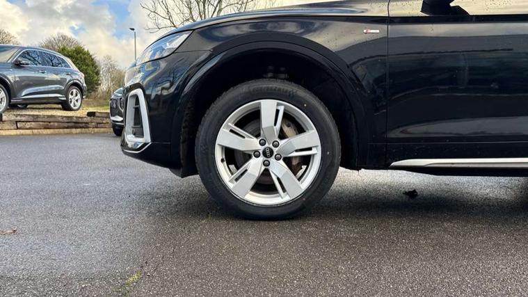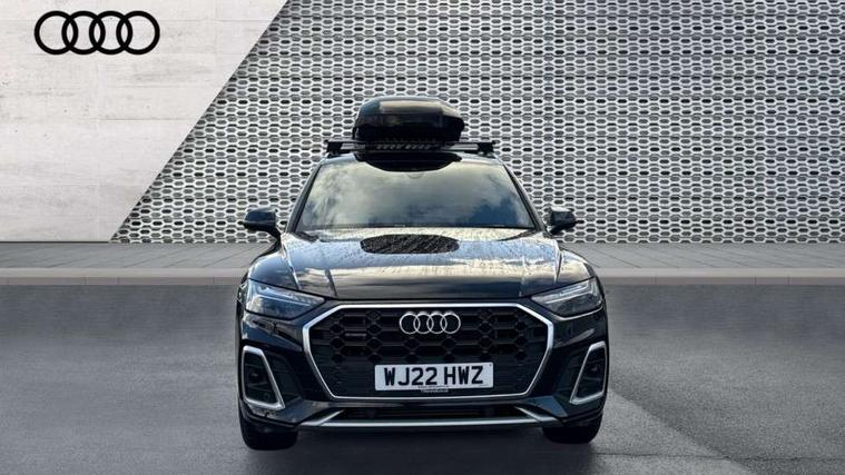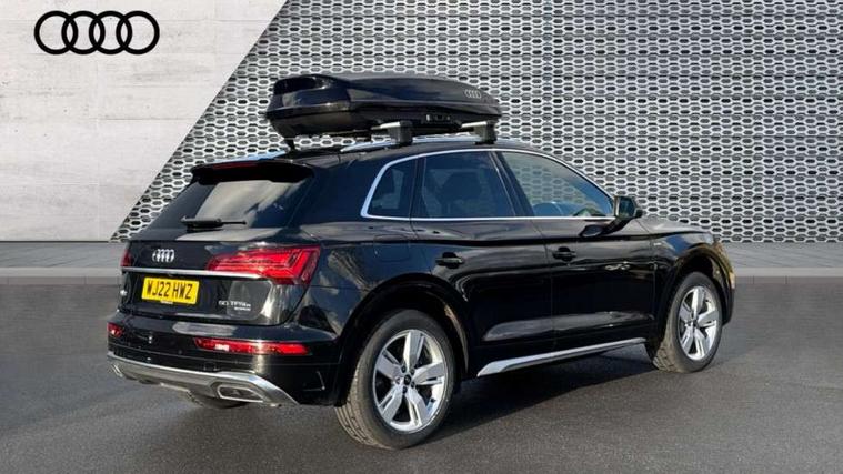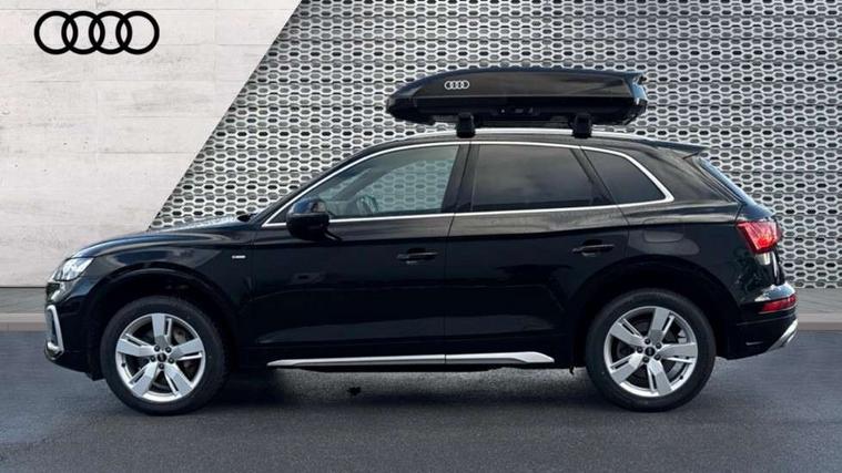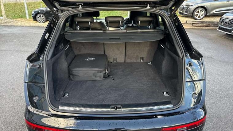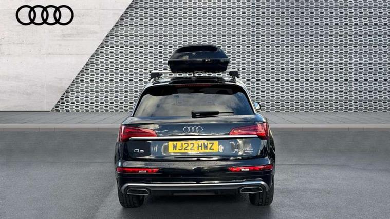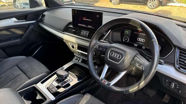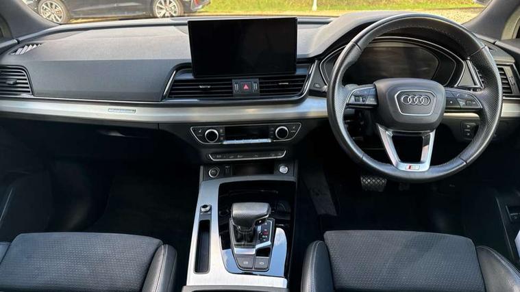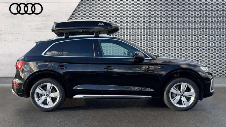 Audi connect safety and service (e-call), Audi connect with Amazon Alexa Integration, Audi drive select, Audi virtual cockpit plus with 12.3" screen and three different layout designs, Audi wireless smartphone interface, Automatic start-stop system with coasting functionality and efficiency programme, Bluetooth interface, Electro - mechanical power assisted steering, MMI navigation plus with 10.1" touch screen, Power tailgate, Reversing camera, Service interval indicator, Voice control system with Audi hotword activation "Hey Audi", 3 pin 10 amp domestic charging cable, 7.4 kW onboard charger, Dynamic suspension, Quattro on demand, Type 2 mode 3 22kW 32 amp charging cable, Type 2 socket for AC charging, 2 x USB charging port with aux input socket, DAB Digital radio, 3rd brake light, Acoustic windscreen, Aluminium roof rails, Audi matrix LED headlights with dynamic front and rear indicators, Auto dimming rear view mirror, Automatic headlights and windscreen wipers, Body colour bumpers, Body colour door mirrors, Body colour rear diffuser with matt aluminium silver surrounds, Body colour underbody protection, Chrome plated exhaust trims, Daytime running lights, Door sills in Selenite silver, Electric adjustable/heated/folding door mirrors, Front air inlet surrounds in aluminium, Front and rear electric windows, Front radiator grille in honeycomb design, Headlight washers, Lower bumpers painted in contrast Manhattan grey, Rear chrome trim strip below lights, Rear privacy glass and rear side windows, Rear side wing doors, Rear spoiler, Rear wiper, Roof bars, S Line badges on the front wings, S Line front and rear bumpers, S Line side skirts, 3 rear headrests, 40:20:40 split folding 3 rear bench seat in 2nd row with rear centre armrest, Black cloth headlining, Comfort front centre armrest, Contrast stitching on seats, steering wheel and gear lever gaiter, Deluxe 3 zone electronic climate control, Front/rear floor mats, Gear lever in black leather, Heated front seats, Height adjustable front head restraints, Height/reach adjustable steering column, Illuminated door sill trims with S logo, ISOFIX child seat mounting and top tether, Manual seat adjustment with 4-way electric lumbar support, Rear seat bench plus, Single front passenger seat, Sunvisors with vanity mirrors, Trunk roller cover, High gloss pack - Q5, LED interior light pack - Q5, 3 point seatbelts on all seats, 6 airbags - Driver, front passenger, curtain and side airbags, Electrically operated child locks on rear doors, Electromechanical parking brake, Electronic stabilisation control including ABS, ASR and EDL, Front passenger airbag deactivation, Hill descent control, Hill hold assist, Multi collision brake assist, Pop-up bonnet for pedestrian protection, Pre sense city, Seat belt force limiter, Seatbelt monitoring, Tyre pressure warning, Warning triangle and first aid kit, Anti theft alarm, Anti-theft wheel bolts, Keyless Go access/ignition system, Matt brushed aluminium inlays, Tool kit, Tyre repair kit,