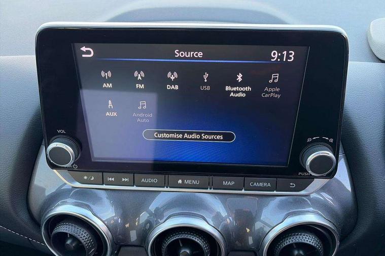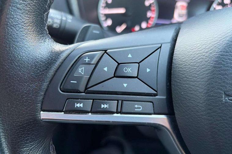 7" full colour TFT screen combimeter, Apple CarPlay and Google Android auto, Drive modes select (Eco, normal and sport), Emergency and breakdown call, Front parking sensor, Idle start/stop system, Intelligent lane intervention, Lane departure warning system, Nissan connect 8" touch screen entertainment system, Nissan connect nav with TomTom traffic, Nissan connect services and Wifi connection, Outside temperature sensor, Power Steering, Rear parking sensor, Traffic sign recognition, Trip computer, Voice recognition, Gasoline particulate filter, 6 speakers, Bluetooth system, USB, Aux-in and 12V socket, DAB Digital radio, Rear console USB port, Auto dimming interior rear view mirror, Auto headlights, Automatic hazard signal with emergency stop signal, Body colour bumpers, Body colour door handles, Electrically adjustable door mirrors with integrated indicators, Follow me home headlights, Front and rear electric window with one touch driver window, Heated and auto folding door mirrors, High beam assist, LED daytime running lights, LED headlamps, LED rear fog lamp, LED rear lamps, Rain sensor windscreen wipers, Rear privacy glass, Rear side wing doors, Rear wiper, Three blink turn signal, 3 height adjustable rear headrests, 3 seat bench in 2nd row, 60/40 split folding rear seat, Automatic climate control, Card holder on driver sunvisor, Cloth upholstery with black and metallic grey syntech leather inserts, Driver and passenger sliding and reclining seats, Driver side rear coat hanger, Driver/passenger sunvisors and vanity mirrors, Front and rear cabin lights, Front armrest, Front door pockets with bottle holders, Front head restraints, Front/rear passenger grab handles, Grey synthetic leather kneepad, Height adjustable driver's seat, Internal chrome door handles, Leather gearshift knob, Leather steering wheel, Luggage board, Luggage space lighting, Monoform sporty seats, Multifunction steering wheel, Rear door bottle holders, Single front passenger seat, Steering wheel mounted gearshift paddles, Telescopic steering wheel adjustment, Two cupholders in front centre console, Two rear isofix child seat anchorage points with top tether, Welcome light and console tray ambient lighting, ABS with EBD and brake assist, Active ride control, Active Trace Control, Driver and passenger airbags, Driver and passenger side airbags, Electric handbrake with auto hold function, Electronic Stability Programme (ESP), Front and rear curtain airbags, Height adjustable seatbelts, Hill start assist, Intelligent emergency braking with pedestrian and cyclist recognition, Rear door child safety locks, Seatbelt reminder for driver/front passenger and rear seats, Single tone horn, Three 3 point rear seatbelts, Traction control, Tyre pressure monitoring system, VDC Dynamic Vehicle Control, Ventilated rear brake discs, Alarm, Immobiliser, Intelligent key and start push button with walk away lock and approach unlock functions, Remote central locking,
