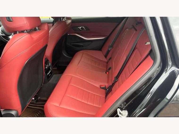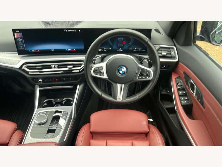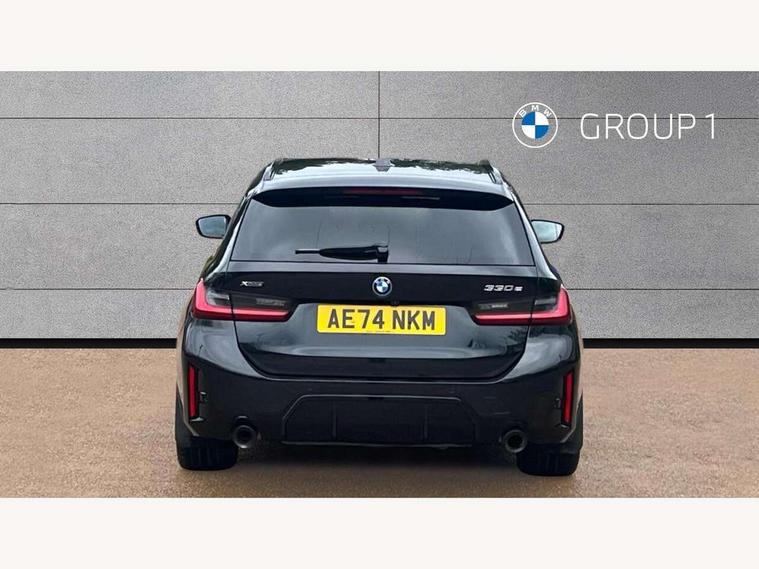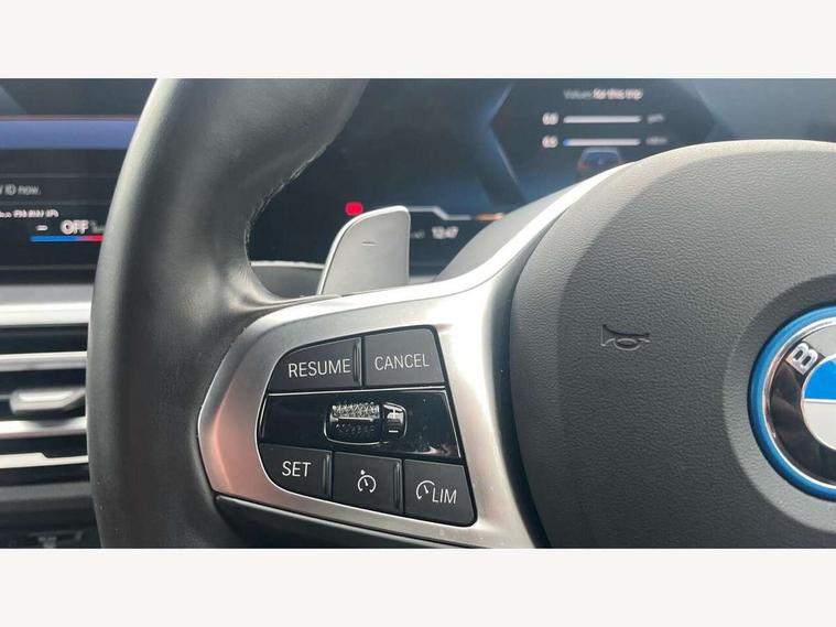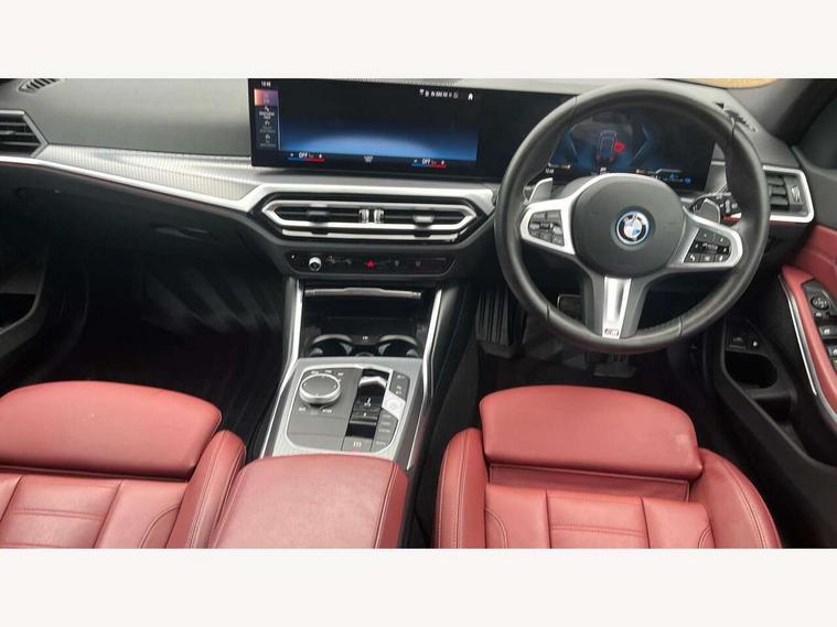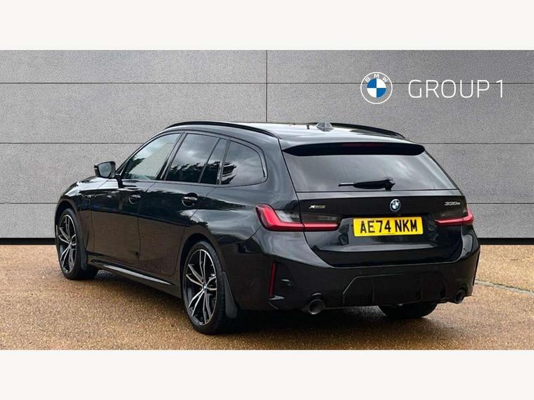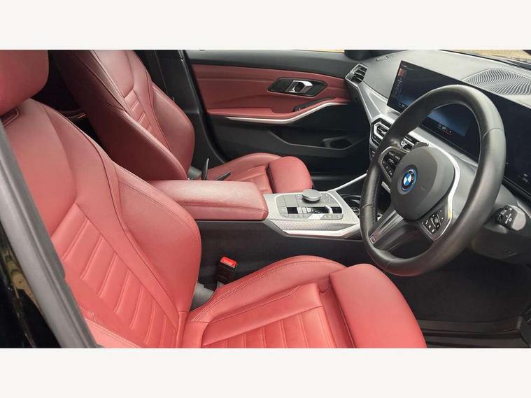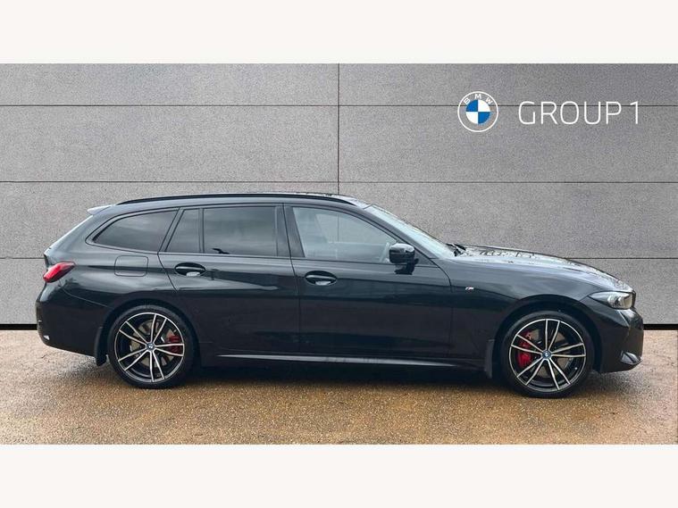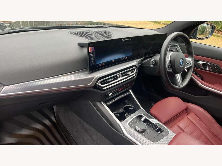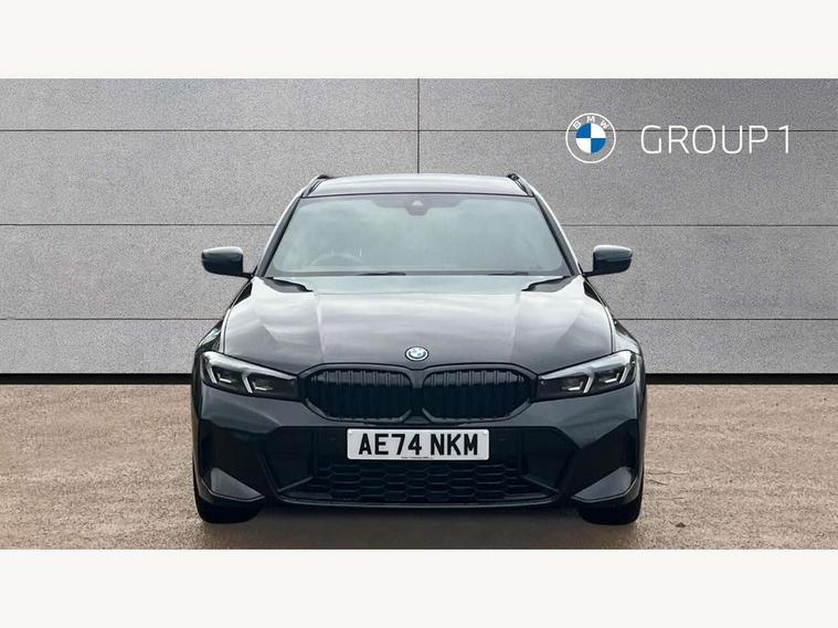 Active guard plus, Attentiveness assist, Automatic Start/stop button, BMW Iconic sounds electric, BMW iDrive, BMW Teleservices, Condition based service, ConnectedDrive Services, Driving experience switch, Live cockpit plus with Navigation + 12.3" instrument display + 14.9" display, Intelligent voice assist, 2 USB, 4G LTE connect, Oil sensor for level and grade, PAS, Preparation for driver assistance, Shifting point display, Double joint spring strut front axle, Fast charging cable - Mode 3, Fuel tank breather system, Sport automatic transmission with steering-wheel mounted gearshift paddles and launch control, Standard suspension, DAB tuner, 3rd brake light, Acoustic glazing, Automatic headlight beam throw control with load dependent regulating reaction, dynamic compensation of braking dive and acceleration squat, BMW emblem, engine compartment lid and tailgate, Body colour roof fin, Door sill strips, Electric windows - front and rear, with open/close fingertip control, anti-trap facility and comfort closing, Follow me home headlight function, Front and rear bumper system with replaceable deformation elements, Front apron plastic in body colour, Fuel filler flap - right rear in body colour, Heated washer jets, High gloss shadow line exterior trim, High gloss shadow line roof rails, Illuminated bow type door handles in body colour drivers side with door lock, Interior rear view electrochromatic mirror with automatic anti dazzle function, LED rear lights, Licence plate panel integrated into front bumper and tailgate, Matt black B-pillar finsher, Matt black window recess cover, Model designation on right side of tailgate, One piece front bumper cover including towing eye cover in body colour, Rain sensor with automatic headlight activation, Rear side wing doors, Rear wiper, Reversing lights, Side frame decorative moulding black matt, Visible exhaust tailpipe finisher, Welcome lights in interior and door handle area, 12V power socket in front storage compartment, 2 front cupholder in centre console with clamping elements and matt black inlay, 3 seat bench in 2nd row, 3 zone automatic air conditioning, 40:20:40 split folding rear seat with loading system, Ambient inside door handle light, Ambient light design projected onto the left and right entering and exiting area, Ambient lighting front and rear with 9 selectable colours, Ambient storage compartment lighting in the centre console, Anthracite headlining, Armrest integrated in front and rear door trim + front centre console armrest, Battery in luggage compartment, BMW ID, Contour lighting in instrument panel and door trim panel, Cruise control operation in steering wheel, Driver backrest width adjustment, Folding rear centre armrest with 2 cupholders, Front and rear ambient footwell lighting, Front and rear door exit lighting (left / right), Front and rear headrests, Front and rear reading lights, Front and rear velour floor mats, Front sport seats, Heated front seats, Height adjustable mechanically and infinitely variable steering column, Illuminated armrest storage compartment, Illuminated glove compartment, Illuminated luggage compartment, Lashing eyelets in luggage compartment, M Sport multifunction leather steering wheel, Make-up mirror lights, Single front passenger seat, Standard seat for driver and passenger with manual adjustment, Sunvisors with vanity mirrors and ticket pocket, Toolkit located in luggage compartment, Connected pack professional - 3 Series Saloon/Touring, Interior and exterior mirror pack - 3 Series Touring/Saloon, M Aerodynamics package - 3 Series Saloon/Touring, M sport exterior styling pack - 3 Series Saloon/Touring, Storage compartment pack - 3 Series Saloon/Touring, 3x3 point rear seatbelts, BMW emergency call, Child locks on rear doors, Crash sensor activating of airbags, Unlocking doors, hazard warning lights, interior light, safety battery terminal, Driver and front passenger with seat occupancy detection for driver's and passenger side, Driver and passenger side airbags, body protection at side and airbags deploy from seat backrests, Dynamic brake control, Dynamic stability control + (DSC+) - Anti-lock Braking System (ABS) with brake assist and cornering brake control + Automatic Stability Control (ASC), Dynamic Traction Control - DTC, Electric parking brake including automatic hold function and automatic release of the parking brake when driving off, Electronic differential lock control (EDLC), Head airbags in 1st and 2nd row, head protection at side, curtain airbags open from headliner above 1st and 2nd row, Plastic fuel tank, Side impact protection, Tyre pressure monitoring with three level warning strategy, Ventilated front and rear disc brakes, Warning triangle and first aid kit, Alarm system, Centre lock switch, Closing system with central locking, Electronic vehicle immobiliser,
