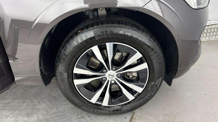 12.3" Progressive Driver Display, 9" centre console touch screen, Adjustable steering wheel force, Bluetooth handsfree system, Driver alert control with lane keeping aid, Emergency services call system, Front and rear park assist, Google Automotive Services, Oncoming Lane Mitigation, PAS, Power tailgate, Rear park assist camera, Service interval indicator, Speed limiter, Speed sensitive steering, Trip computer, Volvo on call with App, Wireless/Inductive Mobile Phone Charging, 8 speed automatic transmission with start/stop + manual change functions, Dynamic chassis, DAB Digital radio, High performance sound, connected service booking, 2x USB Type A in front and 2x USB Type C in rear, 10 speakers/220W output, Steering wheel remote infotainment controls, Adaptive brake lights with high level LED brake lights, Auto dimming interior + exterior mirrors, Automatic headlight levelling system, Automatic LED Headlights + Active high beam incorporating daytime running lights, Colour co-ordinated door mirrors, Electric adjustable/heated/auto power folding door mirrors, Electric front+rear windows, Front aluminium tread plates, Home safe and approach lighting, Integrated roof rails in black, Piano black front grille with chrome surround, Rain sensor with automatic windscreen wiper activation, Rear side wing doors, Rear wiper, Roof antenna, Roof spoiler, Tinted windscreen, Visible VIN plate, 12V socket in front tunnel console and luggage compartment, 2 zone electronic climate control with Clean zone air quality system and pollen filter, 3 seat bench in 2nd row, A-pillar parking ticket holder, B Pillar ventilation, Blond headlining, Bright metal luggage threshold, Centre console cupholders and storage, Charcoal floor mats, Front and rear courtesy lights, Front cupholder illumination, Front footwell illumination, Front reading lights, Glovebox compartment with illumination, Head restraints for all seats, Heated front seats, Height/reach adjustable steering column, Illuminated luggage compartment, Illuminated vanity mirrors + ticket holder, ISOFIX attachment on outer rear seats, Leather upholstery, Load cover, Load protection net, Power passenger seat with lumbar support, Rear armrest with cupholder, Rear seat concealed storage, Single front passenger seat, Synthetic leather sport gear knob, Underfloor stowage compartment, Versatile split folding rear seat - 60/40, 5 three point seatbelts, City safety with steering support with Pedestrian + cyclist + large animal detection + front collision warning with full auto brake, Drivers knee airbag, Dual stage driver/passenger airbags, Electronic parking brake with auto hold, First aid kit, Front seats SIPS airbags, Hill descent control - Off-road drive mode, Hill start assist, IC (Inflatable Curtains) - Full Length, Passenger airbag cut-off device, Power child locks on rear doors, Road sign information display, Run off Road Mitigation, Run off Road Protection, Seatbelt reminder and pretensioners, SIPS (Side Impact Protection System), Slippery road and hazard light alert, Stability and Traction Control with Spin control, Engine Drag Control and Corner Traction Control, Tyre pressure monitoring system, Vehicle deceleration control with Anti-lock Brake System, Electronic Brake Distribution and Emergency Brake Assist, Warning triangle, WHIPS whiplash protection system - front, Anti-theft alarm including immobiliser/volume sensor + level sensor, Care key with user defined top speed, Key integrated remote control central locking + fuel flap with deadlocking system and auto open/close power windows, Keyless Start, Locking wheel nuts, Private locking for tailgate,