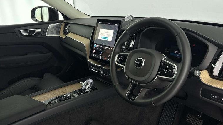11.2" centre console touch screen, 12.3" Progressive Driver Display, 360 degree surround view parking camera with side proximity sensors, Adaptive cruise control, Adjustable steering wheel force, Android auto (Wired), Apple carplay (wired), Bluetooth handsfree system, Drive mode settings, Driver alert control with lane keeping aid, Emergency services call system, Front and rear park assist, Google Automotive Services, Intelligent speed assistance, Oncoming Lane Mitigation, PAS, Power operated tailgate with handsfree opening and closing, Service interval indicator, Speed limiter, Speed sensitive steering, Trip computer, Volvo cars services with app, Volvo on call with App, Wireless/Inductive Mobile Phone Charging, 2 phase on board charger 6.4kW (home charging limited to 3.7kW), 6m 3 phase 16amp Type 2 / mode 3 charge cable, 8 speed automatic transmission with start/stop + manual change functions, Active four-C chassis + four corner adaptive damper with electronic rear air suspension, Electric rear axle drive, Recharging port located in nearside front wing, DAB Digital radio, Low speed exterior sound speaker, Premium Sound by Bowers and Wilkins, dirac live, dolby pro logic II surround sound, 14 speakers/1100W output and subwoofer, Steering wheel remote infotainment controls, Active bending headlights with adaptive shadow technology, Adaptive brake lights with high level LED brake lights, Auto dimming interior + exterior mirrors, Automatic headlight levelling system, Automatic LED Headlights + Active high beam incorporating daytime running lights, Dark tinted windows for rear side windows and cargo area, Electric adjustable/heated/auto power folding door mirrors, Electric front+rear windows, Front aluminium tread plates, Headlight cleaning system, High gloss black door mirrors and window surround, High gloss black front and rear bumper decoratives, High gloss black mesh front grille with high gloss black surround, Home safe and approach lighting, Integrated roof rails in high gloss black, Power glass tilt and slide panoramic sunroof with sun curtain, Puddle lights, Rain sensor with automatic windscreen wiper activation, Rear side wing doors, Rear wiper, Roof antenna, Roof spoiler, Tinted windscreen, Visible VIN plate, 12V socket in front tunnel console and luggage compartment, 2 zone electronic climate control with Clean zone air quality system and pollen filter, 3 seat bench in 2nd row, A-pillar parking ticket holder, Air purifier particulate matter (PM) 2.5 filter, B Pillar ventilation, Bright metal luggage scuff plate, Centre console cupholders and storage, Charcoal floor mats, Front and rear courtesy lights, Front and rear door pocket illumination, Front cupholder illumination, Front footwell illumination, Front reading lights, Front seat cushion extensions, Glovebox compartment with illumination, Head restraints for all seats, Heated front seats, Heated steering wheel, Height/reach adjustable steering column, Illuminated luggage compartment, Illuminated vanity mirrors + ticket holder, Inner door release handle illumination, ISOFIX attachment on outer rear seats, Load cover, Load protection net, Multi directional lumbar support, Power driver seat with memory + exterior mirrors memory, Power folding rear headrests, Power passenger seat with memory, Rear armrest with cupholder, Rear footwell and front and rear side step illumination, Rear reading lights, Rear seat concealed storage, Single front passenger seat, Tailgate illumination and ambient door lighting, Underfloor stowage compartment, Versatile split folding rear seat - 60/40, Driver assist pack without Adaptive cruise control - XC60, 5 three point seatbelts, City safety with steering support with Pedestrian + cyclist + front collision warning with full auto brake and rear auto brake, Drivers knee airbag, Dual stage driver/passenger airbags, Electronic parking brake with auto hold, First aid kit, Front seats SIPS airbags, Hill descent control - Off-road drive mode, Hill start assist, IC (Inflatable Curtains) - Full Length, Passenger airbag cut-off device, Power child locks on rear doors, Run off Road Mitigation, Run off Road Protection, Seatbelt reminder and pretensioners, SIPS (Side Impact Protection System), Slippery road and hazard light alert, Stability and Traction Control with Spin control, Engine Drag Control and Corner Traction Control, Tyre pressure monitoring system, Vehicle deceleration control with Anti-lock Brake System, Electronic Brake Distribution and Emergency Brake Assist, Warning triangle, WHIPS whiplash protection system - front, Anti-theft alarm including immobiliser/volume sensor + level sensor, Key integrated remote control central locking + fuel flap with deadlocking system and auto open/close power windows, Keyless Drive (includes Keyless Entry and Keyless Start), Locking wheel nuts, Private locking for tailgate, Tailored instrument panel with contrast stitching, Summer tyres, Tyre sealant kit + 12v compressor,