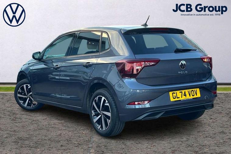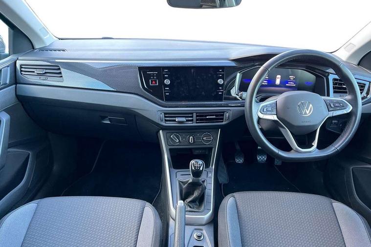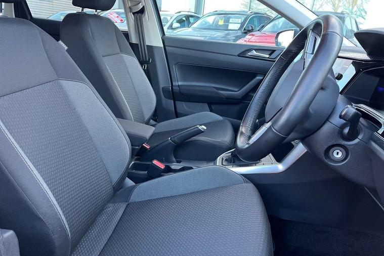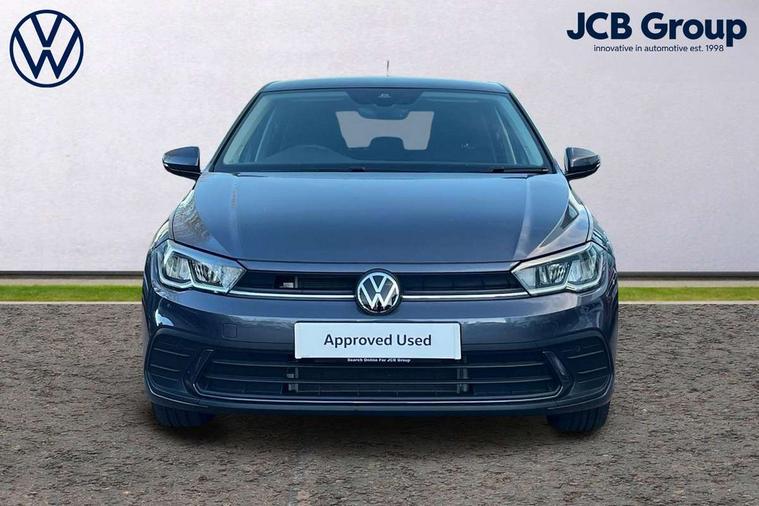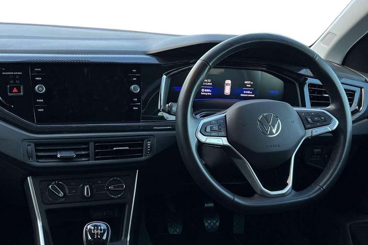Adaptive cruise control without follow-to-stop and speed limiter, Advanced driver attention and drowsiness monitor, Bluetooth mobile phone interface, Dynamic road sign display, Emergency call service, Multifunction front facing camera for distance control, Park distance control, Power assisted speed sensitive steering, Preparation for navigation system with media and internet package, Preparation for We connect and We connect plus, Rear view camera, Speedo and rev counter, electronic odometer, trip, service interval display and exterior temperature gauge, Standard rear axle, Travel Assist - Lane keeping system and traffic jam assist, Travel assist including emergency assist, Trip computer, Warning signal and warning light for front and rear seatbelts not fastened, Washer fluid level indicator, Wireless app connect, Front wheel drive, Rear shock absorpion, Start-stop system with battery regeneration (recuperation - energy recovery during braking), DAB Digital radio, Diversity antenna for FM reception, Front and rear 6 speakers, Automatic dimming interior rear view mirror, Automatic headlight control with LED separate daytime running lights with coming/leaving home function, Body colour bumpers with chrome inserts, Body colour door handles, Body colour door mirrors, Electric front windows, Engine badge deletion, Headlight range adjustment, Heat insulating and laminated safety glass windshield, LED Headlights, LED rear combination lamps, Power folding adjustable/heated exterior mirrors and front passenger exterior mirror lowering function, Rain sensor, Rear electric windows, Rear fog light, Rear side wing doors, Rear tinted glass from B-pillar backwards approx 65% tinted, Rear windscreen washer and wiper with interval delay, Third brake light, 12V power socket in centre console, 2 front and 2 rear reading lights with switch off delay and dimmer, 2 USB-C ports in the front, 2 USB-C charging sockets on the center console in the rear, 3 rear head restraints, 60/40 split folding rear seat and rear seat bench not split, Ceramique roof lining, Chrome plated radiator grille inserts, air vent surrounds and light switch surrounds, Door and side trim panel, Driver and front passenger seat height adjustment, Driver/passenger sunvisors with illuminated vanity mirrors, Front centre armrest, Front seat backrest storage pockets, Front standard seats, Handbrake lever handle in leather, Hartley/Thomas cloth upholstery, Headliner in recycled material, Isofix child seat preparation easy-fit (for two outer rear seats, and front passenger seat) compatible with I-size, Leather trimmed gear knob, Luggage compartment cover, Luggage compartment lighting, Removable luggage compartment floor, Single front passenger seat, Standard climatic zones, Standard pedal cluster, Three spoke leather wrapped multifunction steering wheel, Light and vision pack - Polo, 3 point height adj front seatbelts + pretensioners, 3 point seat belt for centre rear seat, 3 point seatbelts, outer rear with ECE lable, ABS, Driver and front passenger airbag with front passenger airbag deactivation, Drivers and front passengers safety optimised head restraints, ESC (Electronic stability control) + EDL (Electronic Differntial lock) and ASR (Traction control), Extended and predictive pedestrian/ cyclist protection, Front assist with autonomous emergency braking (for Adaptive Cruise Control ACC up to 130 mph), Front curtain and side airbags with center airbag, Front disc brakes, Hill hold control, Manual child lock in rear doors, Rear drum brakes, Single tone horn, Tyre pressure loss indicator, Alarm with interior protection, Anti-theft alarm system with interior monitoring, backup horn, and towing protection, Anti-theft wheel bolts, Electronic engine immobiliser, Lava stone black gloss/matt decorative inserts in dash and front door panels, 16" Torsby alloy wheels, Low rolling resistance tyres,
