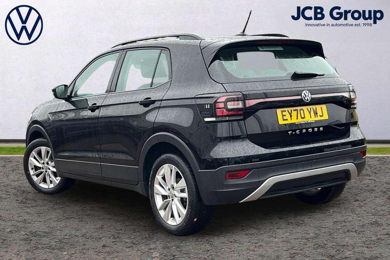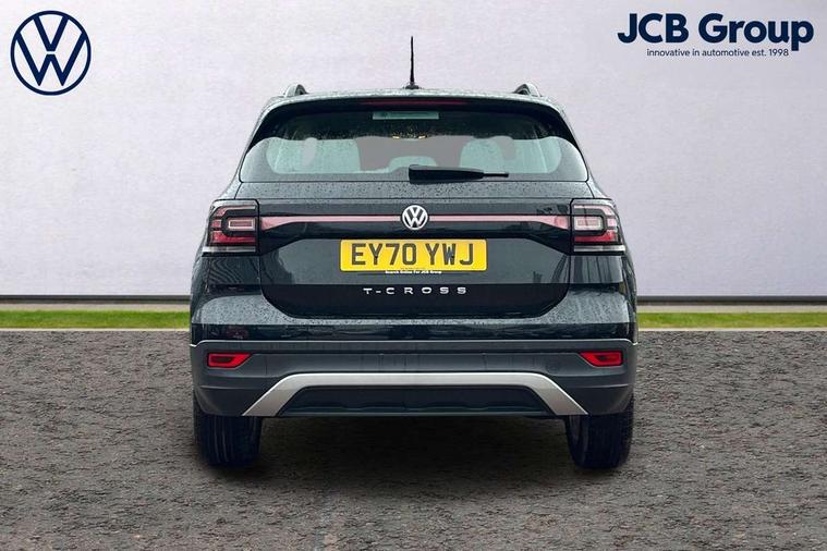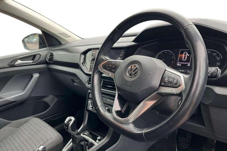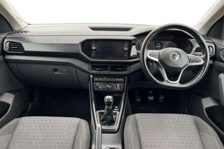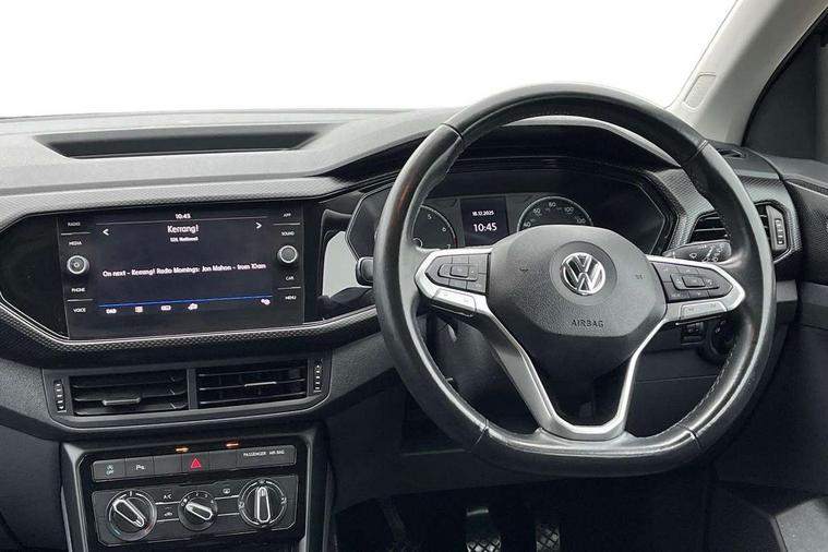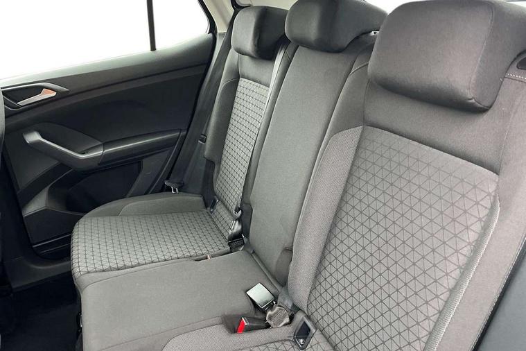 'Lights On' Reminder warning buzzer, Adaptive cruise control including front assist, forward collision warning, autonomous emergency braking, speed limiter, Driver alert system, eCall emergency call system, Lane assist, Multifunction computer with visual gear change recommendation for fuel consumption, Power assisted speed sensitive steering, Speedo, rev counter, electronic odometer, trip, service interval display, exterior temperature and fuel gauge, Stop/start system, Warning sound and light for doors and tailgate open, Warning sound and light for front seatbelts unfastened, We Connect Go Dongle, Wireless Car net app connect with Apple CarPlay, combined functionality of Apple CarPlay/Android Auto and MirrorLink, Battery regeneration during braking, Misfuel prevention device, 2x USB connection with USB charging sockets and in rear centre console, Diversity antenna for FM reception, Premium USB cable for Apple or Android smartphone compatibility, Automatic dimming interior rear view mirror, Automatic hazard lights activation under emergency braking, Black roof rails, Body colour door handles, Body coloured bumpers, Dusk sensor + automatic driving lights, Front and rear electric windows, Front fog lights with static cornering function, Galvanised body, Heated rear window, High level 3rd brake light, Lower door sills and door pillars in black, Manual coming/automatic leaving home lighting function, Radiator grille with high gloss surface and chrome strip, Rain sensor, Rear lights incorporating LED technology, Rear window aerial, Rear windscreen washer and wiper with interval delay, Reflectors in all doors, Tailgate with integrated roof spoiler, Windscreen wipers/ intermittent wipe + 4 position delay, 12V Accessory socket in centre console, 3 rear head restraints and 3 rear three point seat belts, 60/40 split folding rear seat backrest, Drawer under drivers seat, Driver and front passenger sunvisor with vanity mirror, Driver's sunvisor with ticket holder, Dust and pollen filter, Front and rear reading lights X 2, Front centre armrest with storage compartment, Front seat back storage pockets, Glovebox, Heating and fresh air system with 4 stage blower, Height/reach adjust steering wheel, Instrument lighting white adjustable panel illumination, Interior light with delay, Isofix child seat preparation for 2 rear child seats, Luggage compartment cover, Luggage compartment lighting, Manual front seats with height adjustment, Moveable and foldable Rear bench seat, Storage compartment in drivers and front passengers door, Variable boot floor, Composition Media infotainment system pack - T cross, Anti-lock Braking System (ABS) with Hydraulic Brake Assist (HBA), Automatic post collision braking system, Driver and front passenger safety-optimised head restraints, Drivers and Front Passengers airbags with front passengers airbag deactivation switch, ESC with EDL, ASR, EDTC and trailer stabilisation function, Extended and proactive pedestrian protection, Front and rear curtain airbags, Front seat side impact airbags, Height adjustable 3 point automatic front seatbelts with pretensioners, Hill start assist, Pre crash preventive occupant protection, Rigid safety cell with front and rear crumple zones, Tyre pressure loss indicator, Volkswagen roadside assistance, Alarm with interior protection and deactivation via infotainment system, Child security locks in rear doors, Remote tailgate unlocking using key fob,