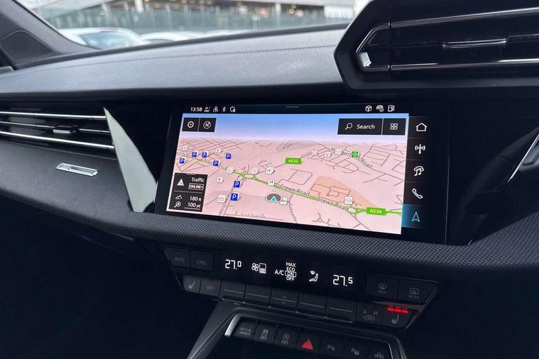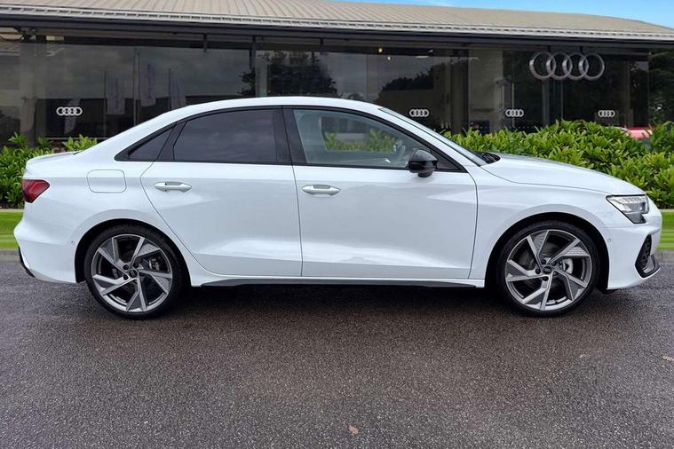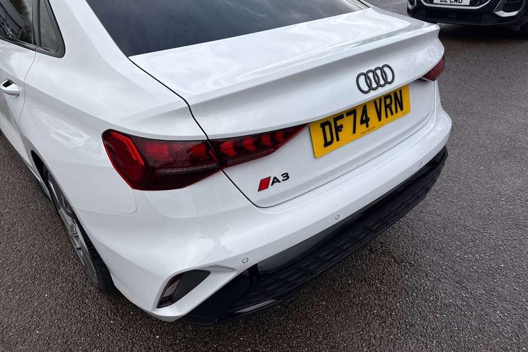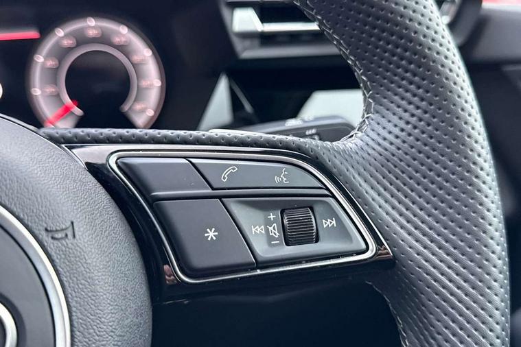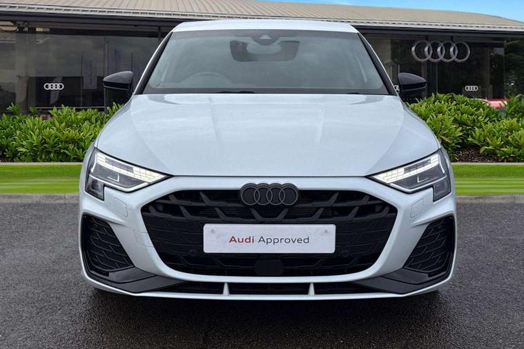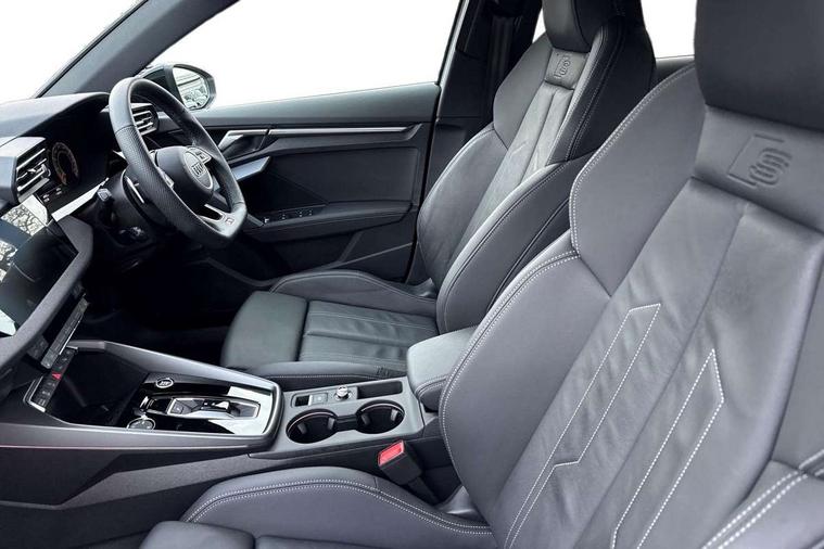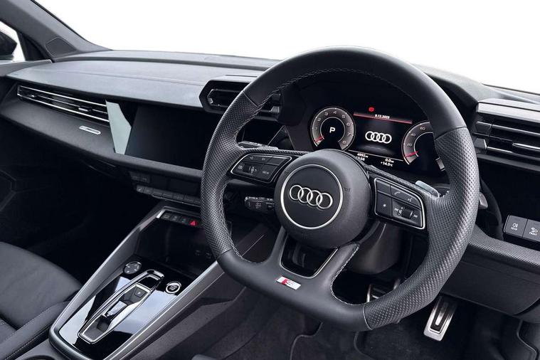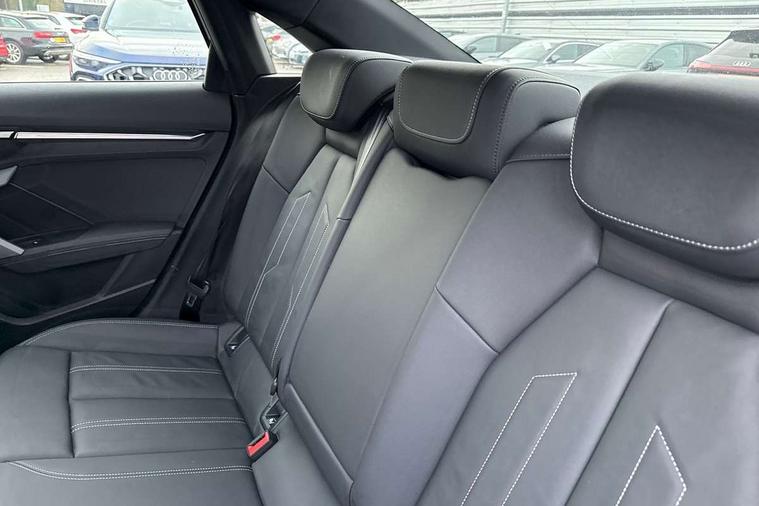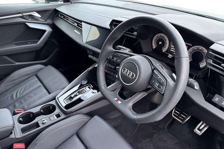 Adjustable speed limiter, Audi drive select, Audi smartphone interface with app store includes wireless Apple carplay, Android auto and Amazon alexa integration, Audi virtual cockpit plus - 12.3" full HD resolution dynamic digital instrument cluster, Automatic start/stop system with recuperation, Bluetooth interface, Camera based traffic sign recognition, Collision avoidance assistant, Cruise control, Distraction and Fatigue warning, e-Call (emergency call), Electromechanical power speed sensitive steering, Lane departure warning system, MMI Navigation Plus with high resolution 10.1" colour touch screen display, Park Assist with parking system Plus, Service indicator, Trip computer, Voice control system with natural language interaction, Sports suspension, Audi Phonebox light with wireless charging, Audi sound system - 10 loudspeakers including centre loudspeaker and subwoofer, DAB Digital radio, USB ports with charging function in the rear, Acoustic glass windscreen, Anthracite grey Audi rings (front and rear), Audi beam uses LEDs to project the Audi logo onto the ground as you exit your A3, Auto dimming frameless rear view mirror, Black accents front and rear bumpers, Black accents in the area of the Audi single frame grille, Black accents window trims strips, Electrically adjustable/heated/folding/auto dimming door mirrors with integrated LED indications + kerb view function for passenger side, Exterior model badging, Front electric windows, Heat insulating glass windscreen, Illuminated door sills with aluminium inserts at the front with S logo, LED 3rd brake light, LED daytime running lights, LED headlights with LED rear lights and dynamic rear indicators, Light and rain sensors, Privacy glass - dark tinted rear window, rear door and side windows, Rear boot, Rear electric windows, Rear side wing doors, 12V socket and storage compartment in front centre console, 3 seat bench in 2nd row, 3 spoke flat bottomed leather multifunction sport steering wheel with gear shift paddles, 3-zone deluxe automatic air conditioning, 4 way electrically adjustable lumbar support for driver and front passenger, 40/20/40 split folding rear seat bench, Black cloth headlining, Front and rear centre armrest in artificial leather, Front and rear centre armrest in artificial leather with contrasting stitching on armrests and instrument panel, Front and rear headrests, Front/rear floor mats, Heated front seats, Height and reach adjustable steering wheel, Manual boot compartment lid, Manually adjustable front seats, Rear cup holders, S badging on the steering wheel, Seat side bolsters, Single front passenger seat, Stainless steel pedals and front footrest in black, Twin leather upholstery with front sports seats S embossed logo, Aluminium interior elements pack - A3, Multi-coloured LED interior lighting package - A3 Black Edition, 3x3 point rear seat belts, Driver and front passenger airbag with passenger airbag deactivation, Electronic Stabilisation Control (ESC) including ABS, ASR and EDL, First aid kit with warning triangle and 2 safety vests, Front side airbags with head airbags and interaction airbag, Hill hold assist, Pre-sense front with pedestrian and cyclist detection, Seatbelt monitoring, Tyre pressure loss indicator, Anti theft alarm, Anti-theft wheel bolts, Electronically operated child locks, Immobiliser, Remote central locking with safelock, Inlays in black Impressum woven textile,