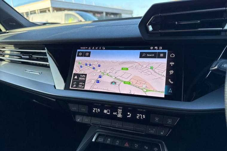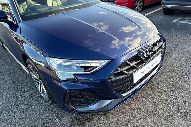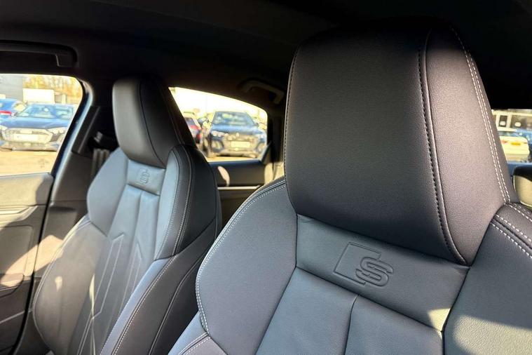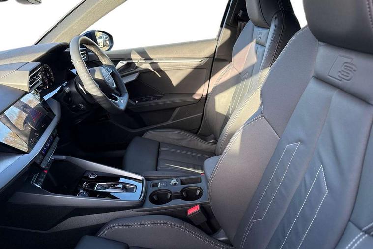 Adjustable speed limiter, Audi drive select, Audi smartphone interface with app store includes wireless Apple carplay, Android auto and Amazon alexa integration, Audi virtual cockpit plus - 12.3" full HD resolution dynamic digital instrument cluster, Automatic start/stop system with recuperation, Bluetooth interface, Camera based traffic sign recognition, Collision avoidance assistant, Cruise control, Distraction and Fatigue warning, e-Call (emergency call), Electromechanical power speed sensitive steering, Emergency assist, Lane departure warning system, MMI Navigation Plus with high resolution 10.1" colour touch screen display, Park Assist with parking system Plus, Service indicator, Trip computer, Voice control system with natural language interaction, Sports suspension, Audi Phonebox light with wireless charging, Audi sound system - 10 loudspeakers including centre loudspeaker and subwoofer, DAB Digital radio, USB ports with charging function in the rear, Acoustic glass windscreen, All weather light, Aluminium window trim, Auto dimming frameless rear view mirror, Automatic dynamic range control, Body colour exterior mirrors, Chrome exhaust tailpipes, Dipped beam, main beam, position light and turning light, Electrically adjustable/heated/folding/auto dimming door mirrors with integrated LED indications + kerb view function for passenger side, Exterior model badging, Front and rear side air inlets in grained matt black with dark liquid chrome frame, Front electric windows, Front radiator grill in high gloss dark chrome, Heat insulating glass windscreen, Illuminated door sills with aluminium inserts at the front with S logo, Intersection light, LED 3rd brake light, LED brake lights, LED daytime running x3, LED headlights with LED rear lights and dynamic rear indicators, LED rear number plate lights, LED reverse light, LED tail lights, Light and rain sensors, Manoeuvring light, Motorway light, Privacy glass - dark tinted rear window, rear door and side windows, Rear boot, Rear diffuser and grill in grained matt black with inlay in dark liquid chrome, Rear electric windows, Rear side wing doors, S line bumpers, Side S line emblems on front wings, Side sill trim in dark liquid chrome, Static cornering light, 12V socket and storage compartment in front centre console, 3 seat bench in 2nd row, 3 spoke flat bottomed leather multifunction sport steering wheel with gear shift paddles, 3-zone deluxe automatic air conditioning, 4 way electrically adjustable lumbar support for driver and front passenger, 40/20/40 split folding rear seat bench, Black cloth headlining, Black front and rear floor mats, Front and rear centre armrest in artificial leather with contrasting stitching on armrests and instrument panel, Front and rear headrests, Heated front seats, Height and reach adjustable steering wheel, Manual boot compartment lid, Manually adjustable front seats, Rear centre armrest with cupholder, S badging on the steering wheel, Seat side bolsters, Single front passenger seat, Stainless steel pedals and front footrest in black, Twin leather upholstery with front sports seats S embossed logo, Aluminium interior elements pack - A3, Multi-coloured LED interior lighting package with Multi-coloured contour lighting of instrument panel - A3, 3x3 point rear seat belts, Driver and front passenger airbag with passenger airbag deactivation, Electronic Stabilisation Control (ESC) including ABS, ASR and EDL, First aid kit with warning triangle and 2 safety vests, Front side airbags with head airbags and interaction airbag, Hill hold assist, Pre-sense front with pedestrian and cyclist detection, Seatbelt monitoring, Tyre pressure loss indicator, Anti theft alarm, Anti-theft wheel bolts, Electronically operated child locks, Immobiliser, Remote central locking with safelock, Black dashboard, Inlay in dark aluminium spectrum,