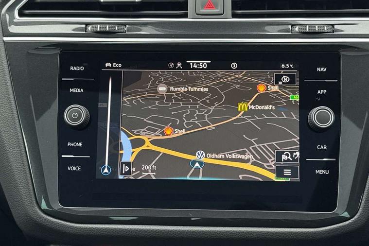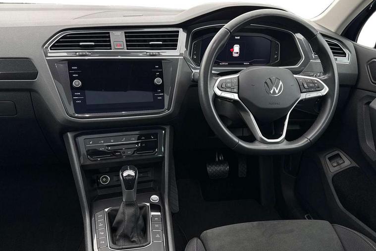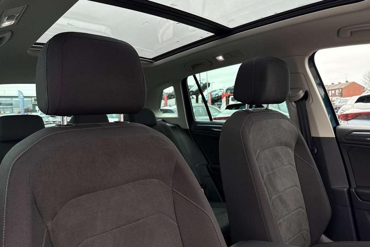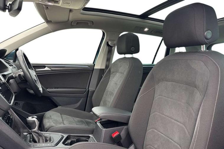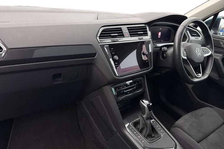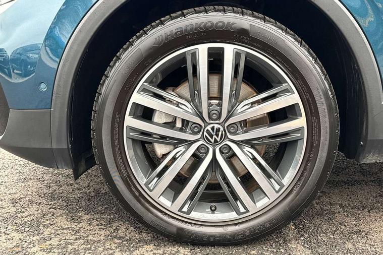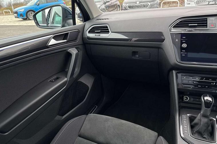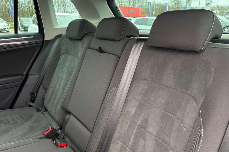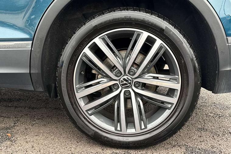 Adaptive cruise control ACC stop and go including speed limiter, App-Connect incl. App-Connect Wireless for Apple CarPlay and Android Auto, Bluetooth phone integration system, Distance control assist, Driver alert system, Driver profile selection, Dynamic road sign display, eCall emergency call system, Electromechanical speed sensitive power steering, Engine start/stop button, Lane keeping system Lane Assist, Lights on warning, Motorised electric tailgate operated via key fob, drivers door and foot movement under tailgate, Multifunction front facing camera, Outside temperature display, Premium multifunction display with multi colour display, Remote control boot opening, Rev counter, Revision / skills operating concept travel assistant, Service interval indicator, Speed limit display, Start/stop system with regenerative braking, Tailgate/trunk lid unlocking from outside, Trip computer, Warning sound and light for doors and tailgate open, Battery regeneration during braking, Charging cable Mode 3 Type 2 / 3 (16A), XDS electronic differential lock for improved traction and handling, 4 X 20 watt output, 8 Speakers, Diversity antenna for FM reception, Radio, SD card slot, Simultaneous pairing of 2 compatible mobile devices, SMS functionality - read, compose and send SMS messages using touch-screen display, Title and cover art display, USB C ports, Aluminium door sill protectors, Auto dimming interior rear view mirror, Automatic headlight control system, Body colour door handles, Body coloured bumpers, Body coloured door mirrors with integrated indicators, Coming/leaving home lighting function, Dynamic headlight range control, Front and rear electric windows, Heated rear window, High level 3rd brake light, IQ light-Adv high beam, Dynamic light assist for LED matrix headlamp+LED separate DRL+DCL, dark red rear LED tech, Poor weather light+ cornering light, Laminated safety glass windshield, heat and sound insulating, LED rear number plate lights, Privacy glass for rear side windows and rear window, Rain sensor windscreen wipers, Rear exhaust tailpipe, Rear fog lamp, Rear side wing doors, Rear windscreen washer and wiper with interval delay, Side and rear windows in heat insulating glass, Tilting and sliding panoramic sunroof with rear panoramic sunroof, Trailer Stability Programme, Windscreen wipers/ intermittent wipe + 4 position delay, 12V outlet in center console rear and in luggage compartment, 12V outlet in front and tray, 2 cup holders in front, 2 LED front reading lights, 2 LED rear reading lights, 3 bench rear seats in 2nd row, 3 rear headrests, 4 load lashing points, 40:20:40 split folding rear seats, Air Care Climatronic 3 zone automatic climate control with enhanced air filter and controls in the rear, Backrest release for left front seat, Climate control unit rear with touch function, Door and side trim panel in foam film and woven fabric, Front centre armrest, Front footwell illumination, Front seats head restraints (x-adjustment), Height adjustable front seats, Height/reach adjust steering wheel, Instrument lighting white adjustable panel illumination, Interior light with delay, Isofix Preparation 2 Rear child seats, Leather gear knob, Lockable cooled glovebox, Luggage compartment lighting, Luggage net, Rear bench seat asymetrically split folding, longitudinally movable and folding with load-through hatch and center armrest, Remote unlocking for rear seat backrest, Removable luggage cover, Removable rear headrests, Safety optimised front head restraints, Single front passenger seat, Sliding/reclining rear seats, Standard rear seat release, Storage compartment in driver's door, Storage compartment in passenger's door, Storage compartment in rear doors, Storage compartments in luggage area left and right, Storage tray on dashboard, Sun visors with illuminated vanity mirrors, Top front comfort seats, Variable boot floor, height adjustable and removable, Easy open and close pack with safelock - Tiguan, Park assist pack - Tiguan, 3 point seat belt for centre rear seats, 3 point seat belts with seat belt pretensioners for the outer rear seats, Active bonnet, Curtain airbags for front and rear passengers, Driver/Front Passenger airbags, Drivers knee airbag, Electronic parking brake with auto hold, Electronic Stability Control with driver steering recommendation, ABS, ASR, EDL, EDTC and trailer stabilization, Front assist with autonomous emergency braking (for Adaptive Cruise Control ACC up to 130 mph), Front disc brakes, Front passenger airbag deactivation, Front side airbags, Height adjustable front 3 point seatbelts + pretensioners, Hill hold control, Manual child proof rear door locks, Pedestrian monitoring system, Power assisted brakes, Proactive passenger protection system in combination with front assist, Rear disc brakes, Rigid safety cell with front and rear crumple zones, Two tone horn, Tyre pressure loss indicator, Warning sound and light for front seat belts if unfastened, Anti theft alarm system with interior monitoring, backup horn and towing protection, Anti theft wheel bolts, Central locking system with safelock radio remote control and 2 remote control folding keys, Electronic engine immobiliser, Tool kit, Tyre mobility kit Includes 12V compressor and tyre sealant,