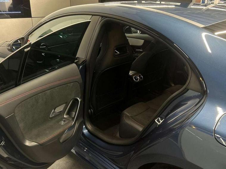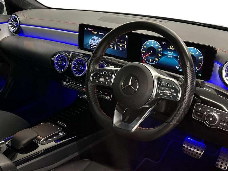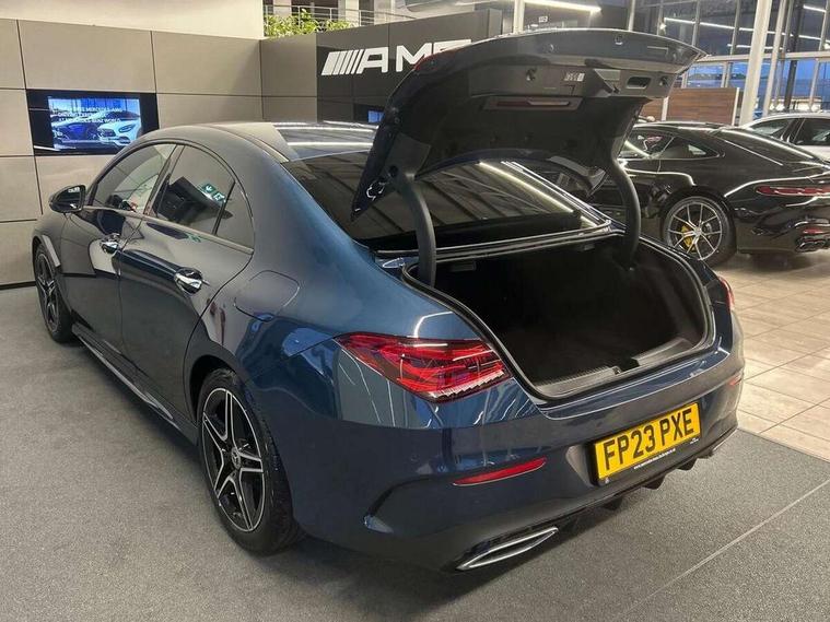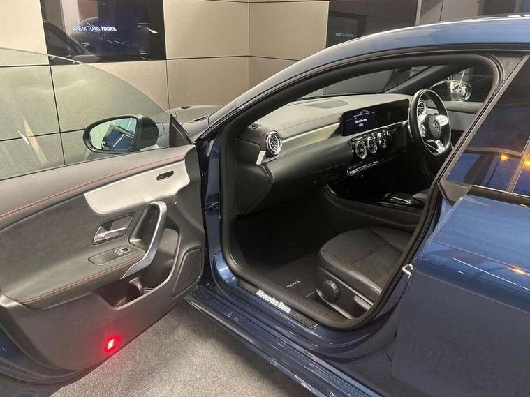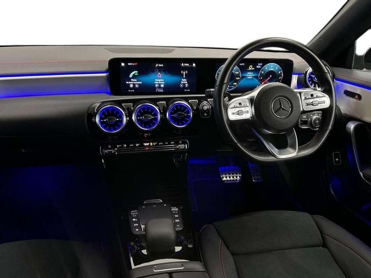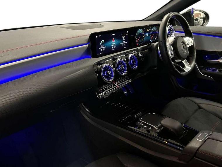 10.25 inch Instrument display with digital cockpit, 10.25 inch touchscreen central media display, Active lane keeping assist, Attention assist - Monitors steering behaviour and long journey fatigue, Bluetooth connection, Car wash mode, Cruise control with limiter, Direct steer system with speed sensitive power steering, DYNAMIC SELECT with a choice of driving modes (ECO, Comfort, Sport and Individual), ECO start/stop function, Fluid level warning indicator for fuel, oil, coolant and washer fluid, Hard-disk navigation, Hey Mercedes Voice activation, Lamp failure indicator, Mercedes me connect including emergency call system, accident recovery, breakdown and maintenance management, Mercedes me remote services, Outside temperature gauge, Owners manual and service booklet in English, Pre-installation of private car share, Preinstallation for Mercedes Benz link, Radio aerial integrated into front and rear windshields, Service indicator (ASSYST), Smartphone integration with Apple CarPlay and Android auto, Speed limit assist, Trip computer in multifunction display with current consumption indicator, Lowered comfort suspension, Rear axle multi-link, DAB digital radio tuner, MBUX multimedia system, Mid-range sound system, USB (type C) ports (2) in stowage compartment and 1 in front of centre console, Adaptive brake lights, AMG body styling with AMG front apron and rear apron and visible exhaust tailpipe in chrome trim elements, AMG bodystyling side skirts, Body colour bumpers, Body colour door handles, Chrome beltline strips, Diamond radiator grille pins in chrome, Electric windows, Electrically adjustable and heated door mirrors with integrated LED indicators, Exhaust system with 2 Visible tailpipe trim elements and rear apron with trim in chrome, Headlamp assist automatic headlamp activation, Heated glass rear windscreen + timer control, High level LED third brake light, Interior mirror with black reading lamps and frameless, LED high performance headlamps with integrated LED daytime running lights, LED tail lamp, Privacy glass with dark tinting on rear side windows and rear window, Rain sensing windscreen wipers with two sensitivity settings, Rear boot, Rear fog lamp, Rear side wing doors, Variable front intermittent wipers, Window line trim strip in chrome, 3 seat bench in 2nd row, 3 spoke flattened bottom nappa leather multifunction steering wheel with perforated leather in grip area, 40:20:40 split folding rear seat backrests, Air conditioning - Two zone thermotronic luxury automatic climate control with display, Air vents with surround in silver chrome, Artico man-made leather upholstery, Automatic child seat recognition sensor, Black roof lining, Brushed stainless steel sports pedals with rubber studs, Floor mats with stitched AMG lettering, Front centre armrest with stowage, Galvanished gear shift paddles on steering wheel, Heated front seats, Illuminated front door sills with changeable cover, Illuminated glove compartment stowage, Interior lighting - 64 colour Ambient lighting, Luggage net on driver/front passenger seat backrest, Manually adjustable front seats, Manually height and reach adjustable steering column, Rear armrest with two integral cup holders for drinks, Rear head restraints, Single front passenger seat, Sport seats with fixed head restraints, Stowage compartment in centre console with retractable cover, Sunvisors with illuminated vanity mirrors, Touchpad on center console, Twin front cupholders, Two outer rear seat isofix and top tether child seat fixing points, Keyless go comfort pack - CLA, Light and sight pack - CLA, Mirror pack - CLA, Night package - CLA, Parking package - CLA, Seat comfort pack - CLA, Active bonnet pedestrain safety measure which detects an impact and raises bonnet by 65mm, Active brake assist includes forward collision warning system with autonomous braking, Adaptive brake assist with hold function and hill start assist, Anti lock braking system (ABS) with brake assist, Black seat belts, Bonnet with power domes, Brake pad wear warning indicator, Childproof locks manually operated for rear doors and electrically operated for rear power windows, Crash responsive emergency lighting, Driver and front passenger head and sidebags, Driver and front passenger windowbags, Drivers knee airbag, Dual stage driver and front passenger airbags, Electric parking brake, Electronic stability programme with acceleration skid control, ESP curve dynamic assist, Front and rear seatbelt reminder, Front passenger seat occupancy sensor, Three point rear seat belts, Tyre pressure monitoring system, Warning triangle and first aid kit, Guard 360 degree guard vehicle protection system with immobiliser and interior protection, Remote central locking and crash sensor with emergency opening function, Light aluminium with longitudinal grain interior trim, 18" AMG 5 twin spoke light alloy wheels painted in black with high sheen finish, Summer tyres, Tirefit tyre sealant kit,
