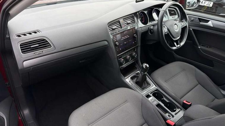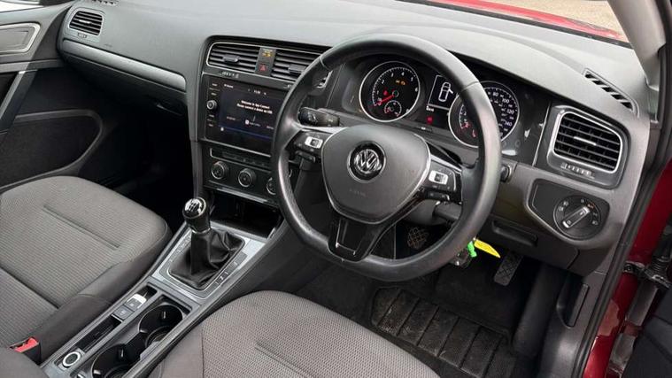 'Lights On' Reminder warning buzzer, ACC - Adaptive cruise control with front assist, forward collision warning, distance monitoring, city emergency brake and speed limiter, Bluetooth telephone and audio connection for compatible devices, Brake pad wear indicator warning light, Driver alert system, Driver profile selection, Driving Mode Selection with four preset modes - Eco, normal, sport or individual modes, Instrument cluster in white, Multifunction computer with visual gear change recommendation for fuel consumption, Power assisted speed sensitive electro-mechanical steering, Push tank flap, Speed limit display, Speedo, rev counter, electronic odometer, trip, service interval display, exterior temperature and fuel gauge, Stop/start system, Warning buzzer and light for front seatbelts unfastened, Battery regeneration during braking, XDS electronic differential lock, Composition media system, DAB Digital radio receiver, Driver Personalisation profile selection, MP3/WMA compatability, Multi device interface (MDI) with USB connection, Personalisation 1.1 profile for media, Premium USB cable in choice of either Apple or Android smartphone compatibility, SD card slot, SMS Functionality, USB and SD card connectivity, Black front air intake and radiator grille with chrome insert, Black rear diffuser, Body colour bumpers, Body colour door handles, Body colour door mirrors with integrated indicators, Dusk sensor + automatic driving lights, Electric front windows, Electric rear windows, Electrically adjustable and heated door mirrors, Fully galvanised body, Heated rear windscreen, Hidden exhaust pipe, High level 3rd brake light incorporating LED Technology, LED daytime running lights, LED front fog lights with static cornering light function, Rear fog lamp, Rear tinted glass 65% light absorbing from B pillar backwards, Rear window aerial, Rear window wash/wipe with intermittent wipe, Reflectors in all doors, Tailgate with integrated rear roof spoiler, Windscreen wipers/ intermittent wipe + 4 position delay, 12V socket in luggage compartment, 3 rear headrests, 4 load lashing points in luggage compartment, 60/40 split folding rear seat backrest, Auto fold down lever in rear seat backrest, Bag hook in luggage compartment x 2, Cooled glovebox, Cupholder cover, Dust/pollen filter, Front and rear reading lights incorporating LED technology, Front centre armrest with storage compartment and two rear air vents, Front seat back storage pockets, Grab handles front x 2, rear x 2 with integrated coat hooks, Height and reach adjustable steering wheel, Illuminated vanity mirrors, Instrument lighting white adjustable panel illumination, Interior light delay, Isofix preparation for 2 rear child seats, Load through provision with rear centre armrest and cupholders x2, Luggage compartment lighting, Overhead storage box, Passenger underseat drawer, Pearl grey headlining, Storage box in luggage compartment, Storage compartment in roof console with cover, Storage compartments in centre console, Storage compartments in front doors, Storage compartments in rear doors, Stowable luggage compartment cover, Sun visors, Variable boot floor, height adjustable and removable, Convenience Pack - Golf, Light and Sight pack - Golf, Mirror pack - Golf, 3 rear three point seatbelts, Airbags - Driver's and front passenger's, curtain airbag, Driver's knee, front side impact and passenger's airbag deactivation switch, Anti-lock Braking System (ABS) with Hydraulic Brake Assist (HBA), Automatic post collision braking system, Child locks on rear doors, Driver/Passenger optimised head restraints, Electronic parking brake with auto hold, Electronic stability control (ESC) including Electronic differential lock (EDL) and ASR (Traction control) with deactivation via infotainment system, Front ventilated disc brakes and rear disc brakes, Pre crash preventive occupant protection, Three point height adjustable front seatbelts with tensioners, Tyre pressure loss indicator, Alarm with interior protection and deactivation via infotainment system, Electronic engine immobiliser, Remote central locking with 2 remote folding keys, Brushed dark silver decorative inserts in dash and door panels, Chrome plated air vent surround, Chrome plated electric mirror adjustment light switch surround, Polar night black centre console, Steel space saver spare wheel,