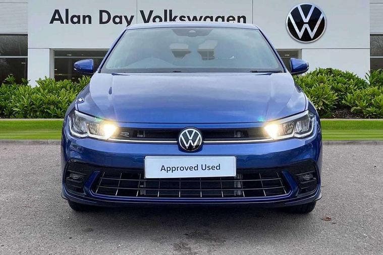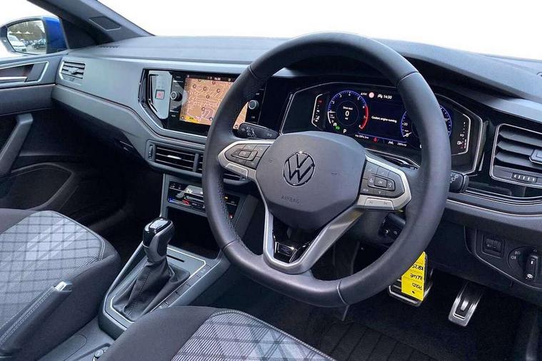 Adaptive cruise control with follow-to-stop and speed limiter, Advanced driver attention and drowsiness monitor, Bluetooth mobile phone interface, Digital Cockpit Pro with 10.25" Display, Dynamic road sign display, Emergency call service, Multifunction camera, Power assisted speed sensitive steering, Preparation for We connect and We connect plus, Speedo and rev counter, electronic odometer, trip, service interval display and fuel gauge, Standard rear axle, Travel Assist - Lane keeping system and traffic jam assist, Travel assist including emergency assist, Trip computer, Warning signal and warning light for front and rear seatbelts not fastened, Washer fluid level indicator, Wireless app connect, Front wheel drive, Rear shock absorpion, Start-stop system with battery regeneration (recuperation - energy recovery during braking), DAB Digital radio, Diversity antenna for FM reception, Front and rear 6 speakers, Body colour bumpers, Body colour door handles, Electric front windows, Front scuff plates with R-Line logo, Heat insulating glass windscreen, Power folding adjustable/heated exterior mirrors and front passenger exterior mirror lowering function, Rear electric windows, Rear fog light, Rear side wing doors, Rear windscreen washer and wiper with interval delay, Third brake light, 12V power socket in centre console, 2 USB-C ports in the front, 2 USB-C charging sockets on the center console in the rear, 3 rear head restraints, 60/40 split folding rear seat and rear seat bench not split, Air care climatronic air conditoning system with active combination filter and 2-zone temperature control, Black roof lining, Carpet mats, front and rear, Chrome plated radiator grille inserts, air vent surrounds and light switch surrounds, Door and side trim panel, Driver and front passenger seat height adjustment, Driver/passenger sunvisors with illuminated vanity mirrors, Front centre armrest, Front footwell illumination, Front seat backrest storage pockets, Front sports comfort seats, Handbrake lever handle in leather, Headliner in recycled material, Isofix child seat preparation easy-fit (for two outer rear seats, and front passenger seat) compatible with I-size, Karoso artvelours cloth upholstery, Leather trimmed gear knob, LED interior light with switch off delay and dimmer, 2 reading lights front and rear, Luggage compartment cover, Luggage compartment floor, Luggage compartment lighting, Lumbar adjustment for front seats, Single front passenger seat, Stainless steel pedals, Standard pedal cluster, Three spoke leather wrapped multifunction steering wheel with shifting paddles, Light and sight pack - Polo R-Line/Black Edition, 3 point height adj front seatbelts + pretensioners, 3x3 point rear seatbelts, ABS, Driver and front passenger airbag with front passenger airbag deactivation, Drivers and front passengers safety optimised head restraints, ESC (Electronic stability control) + EDL (Electronic Differntial lock) and ASR (Traction control), Extended and predictive pedestrian/ cyclist protection, Front curtain and side airbags with center airbag, Front/rear disc brakes, Hill hold control, Manual child lock in rear doors, Single tone horn, Tyre pressure loss indicator, Alarm with interior protection, Anti-theft alarm system with interior monitoring, backup horn, and towing protection, Anti-theft wheel bolts, Electronic engine immobiliser, Chrome applications on rotary light, mirror adjustment, window regulator switches, outlet with frame in black, Dark grey anodised matt decorative inserts in dash and front door panels, 16" Coventry alloy wheels, Low rolling resistance tyres,