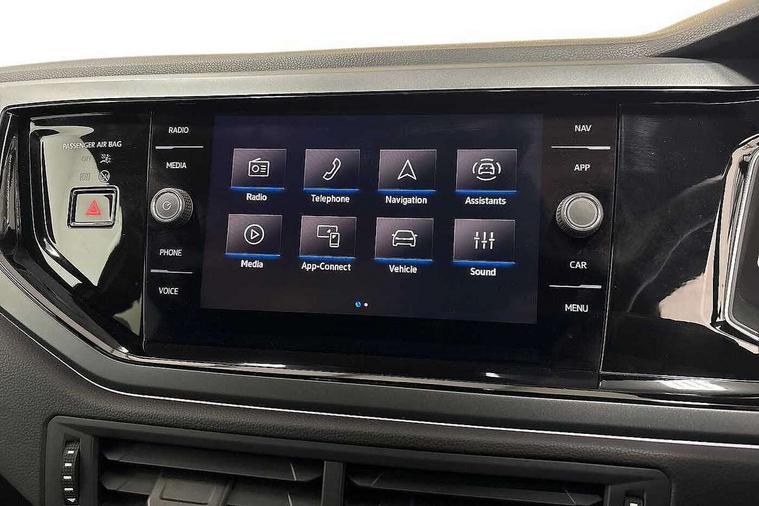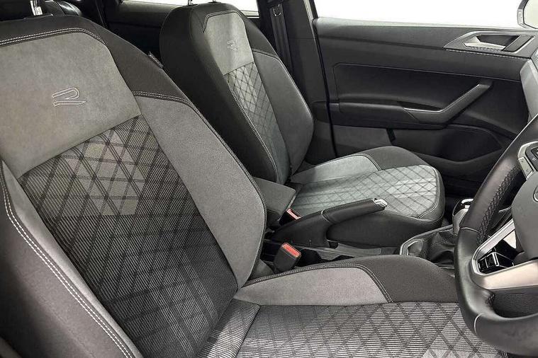 Adaptive cruise control with follow-to-stop and speed limiter, Advanced driver attention and drowsiness monitor, Bluetooth mobile phone interface, Digital Cockpit Pro with 10.25" Display, Dynamic road sign display, Emergency call service, Multifunction camera, Power assisted speed sensitive steering, Preparation for We connect and We connect plus, Speedo and rev counter, electronic odometer, trip, service interval display and fuel gauge, Standard rear axle, Travel Assist - Lane keeping system and traffic jam assist, Travel assist including emergency assist, Trip computer, Warning signal and warning light for front and rear seatbelts not fastened, Washer fluid level indicator, Wireless app connect, Front wheel drive, Rear shock absorpion, Start-stop system with battery regeneration (recuperation - energy recovery during braking), DAB Digital radio, Diversity antenna for FM reception, Front and rear 6 speakers, Body colour bumpers, Body colour door handles, Electric front windows, Front scuff plates with R-Line logo, Heat insulating glass windscreen, Power folding adjustable/heated exterior mirrors and front passenger exterior mirror lowering function, Rear electric windows, Rear fog light, Rear side wing doors, Rear windscreen washer and wiper with interval delay, Third brake light, 12V power socket in centre console, 2 USB-C ports in the front, 2 USB-C charging sockets on the center console in the rear, 3 rear head restraints, 60/40 split folding rear seat and rear seat bench not split, Air care climatronic air conditoning system with active combination filter and 2-zone temperature control, Black roof lining, Carpet mats, front and rear, Chrome plated radiator grille inserts, air vent surrounds and light switch surrounds, Door and side trim panel, Driver and front passenger seat height adjustment, Driver/passenger sunvisors with illuminated vanity mirrors, Front centre armrest, Front footwell illumination, Front seat backrest storage pockets, Front sports comfort seats, Handbrake lever handle in leather, Headliner in recycled material, Isofix child seat preparation easy-fit (for two outer rear seats, and front passenger seat) compatible with I-size, Karoso artvelours cloth upholstery, Leather trimmed gear knob, LED interior light with switch off delay and dimmer, 2 reading lights front and rear, Luggage compartment cover, Luggage compartment floor, Luggage compartment lighting, Lumbar adjustment for front seats, Single front passenger seat, Stainless steel pedals, Standard pedal cluster, Three spoke leather wrapped multifunction steering wheel with shifting paddles, Light and sight pack - Polo R-Line/Black Edition, 3 point height adj front seatbelts + pretensioners, 3x3 point rear seatbelts, ABS, Driver and front passenger airbag with front passenger airbag deactivation, Drivers and front passengers safety optimised head restraints, ESC (Electronic stability control) + EDL (Electronic Differntial lock) and ASR (Traction control), Extended and predictive pedestrian/ cyclist protection, Front curtain and side airbags with center airbag, Front/rear disc brakes, Hill hold control, Manual child lock in rear doors, Single tone horn, Tyre pressure loss indicator, Alarm with interior protection, Anti-theft alarm system with interior monitoring, backup horn, and towing protection, Anti-theft wheel bolts, Electronic engine immobiliser, Chrome applications on rotary light, mirror adjustment, window regulator switches, outlet with frame in black, Dark grey anodised matt decorative inserts in dash and front door panels, 16" Coventry alloy wheels, Low rolling resistance tyres,