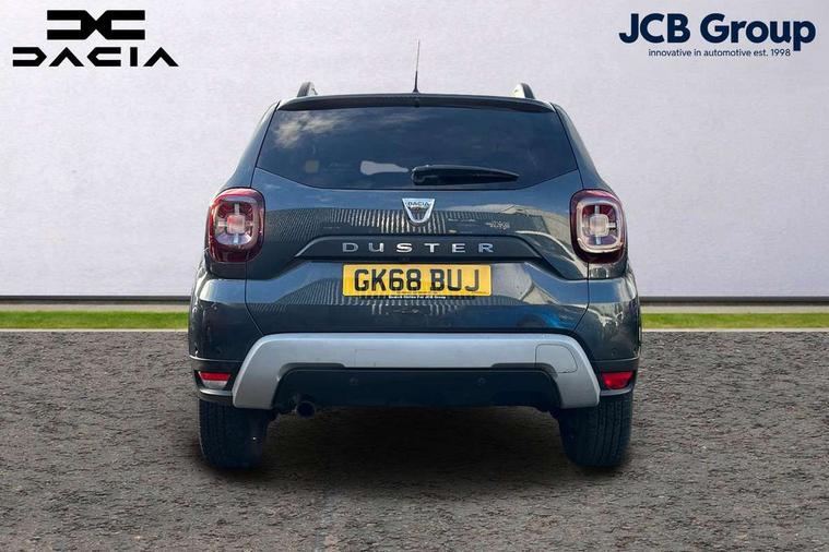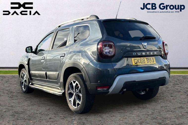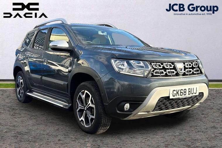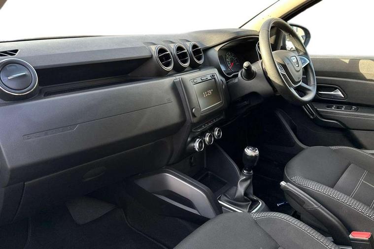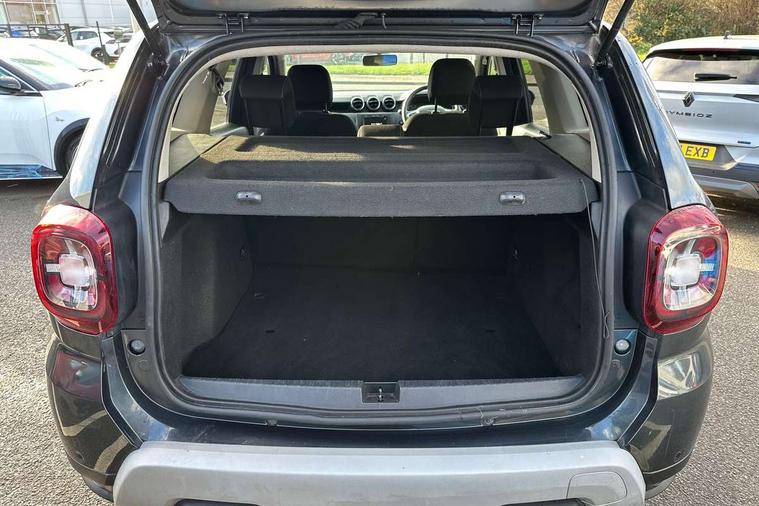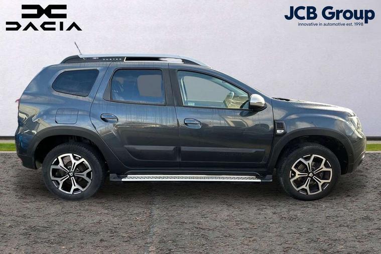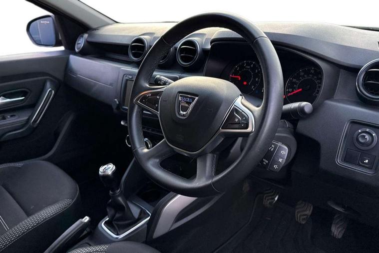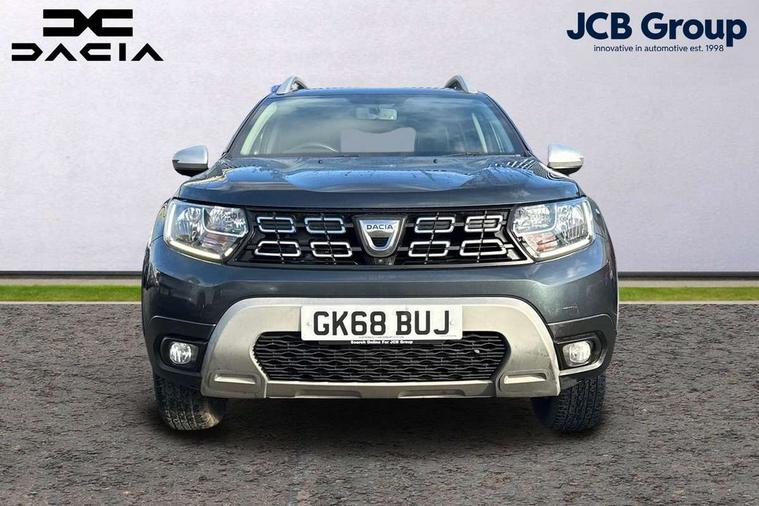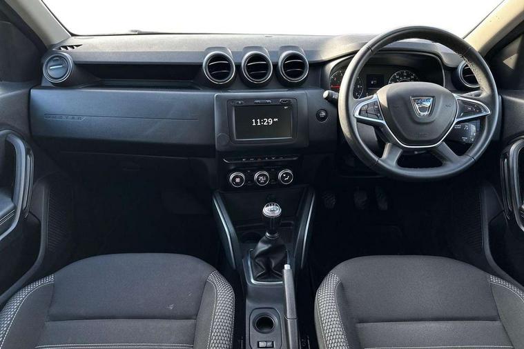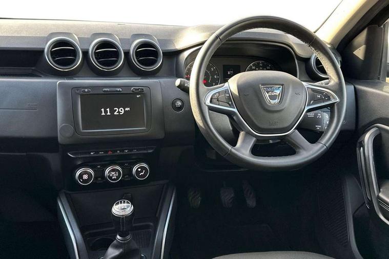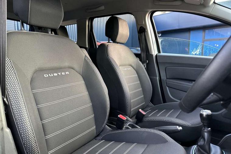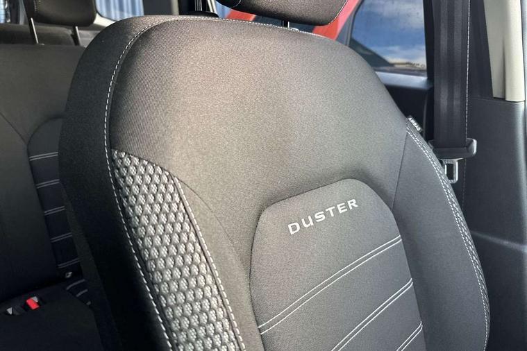 Blind spot monitoring, Bluetooth connectivity, Centre differential lock with selectable 2WD, Auto and Lock modes, Cruise control, Dusk sensor, Eco mode, Electric power steering, MediaNav Evolution 7" touchscreen multimedia system with satellite navigation with Apple car play and Android auto, Multi view camera, On board computer, Rear parking camera, Rear parking sensors, Rev counter, Service interval indicator, Speed limiter, Stop/start system, Trip computer, 4x 20W FM/AM/DAB tuner with steering column mounted fingertip controls, Aux-in socket, USB connection for MP3 players, 3 speed windscreen wipers, Black side sills, Body coloured door handles, Body coloured door mirrors, Body coloured front and rear bumpers, Chrome front grille, Dark tinted windows, Daytime running lights, Double optic headlights, Electric adjustable/heated door mirrors, Electric front windows, Electric rear windows, Front door sill protection strip, Front fog lights, Heated rear window, High level third rear brake light, Rear wash/wipe, Satin chrome front and rear skid plates, Satin chrome longitudinal roof bars, Tailgate trim with satin chrome Duster inscription in black background, 3 rear height adjustable headrests, 4 speed heating and ventilation with air recirculation, 60/40 split folding rear seat, Boot light, Climate control, Driver seat lumbar adjustment, Fabric decorative insert on door panels, Front passenger reading light, Front seat armrests, Front under seat storage, Gear shift indicator, Glovebox light, Height adjustable driver seat, Height adjustable front headrests, Height adjustable steering wheel, Isofix points for child seats in both outer rear seats, Map pocket on front seat backs, Rear passenger reading light, Rear storage compartment, Satin chrome gear lever cap insert, Satin chrome interior door handles, Satin chrome lower steering wheel insert, Soft feel steering wheel, 3x3 point rear seatbelts, ABS and Emergency brake assist, ASR traction control with Electronic stability control, Child locks on rear doors, Door open warning, Driver airbag, Driver and passenger seatbelt not fastened - visual and audible warning, Front passenger airbag deactivation, Front seatbelt pretensioners, Front side airbags, Height adjustable front seatbelts, Tyre pressure monitor, Keyless entry, Remote central locking, Thatcham approved engine immobiliser, Dark carbon central console surround, Matt black central console fascia, Piano black decorative insert on door panels, Satin chrome air vent surround, Satin chrome instrument dial surrounds, 17" diamond cut alloy wheels,