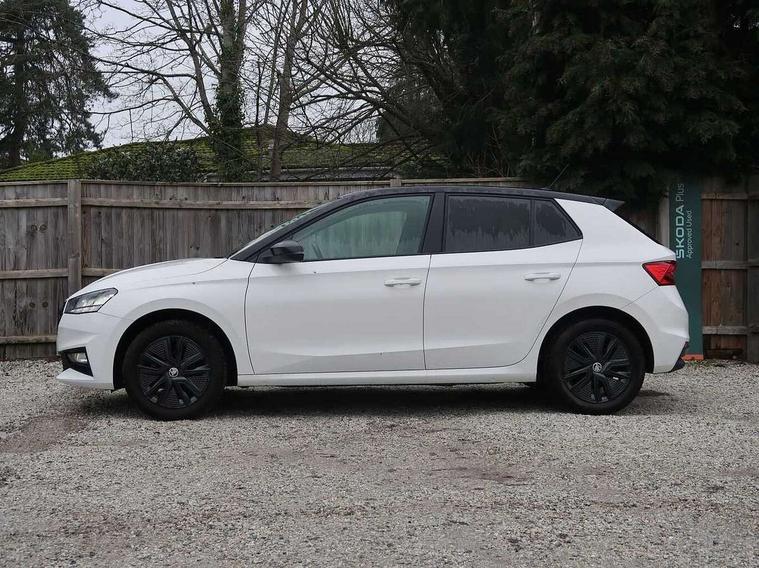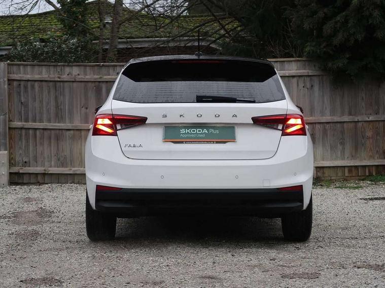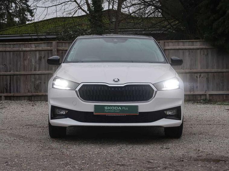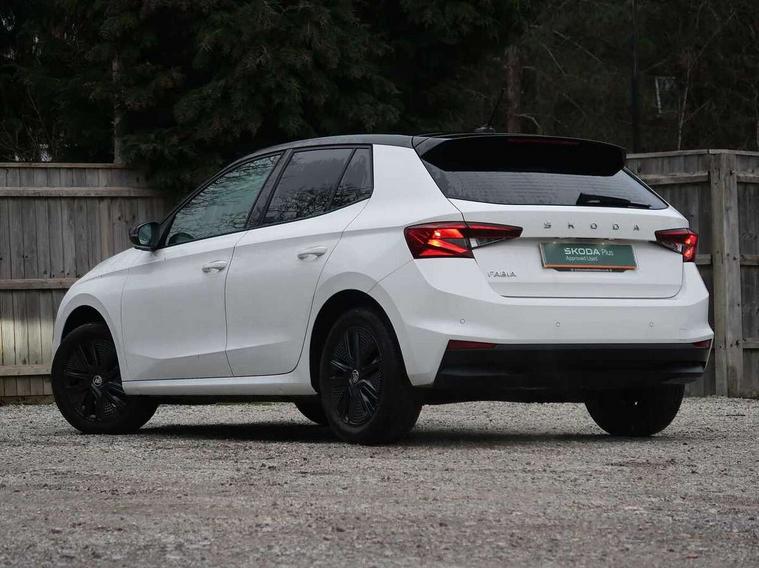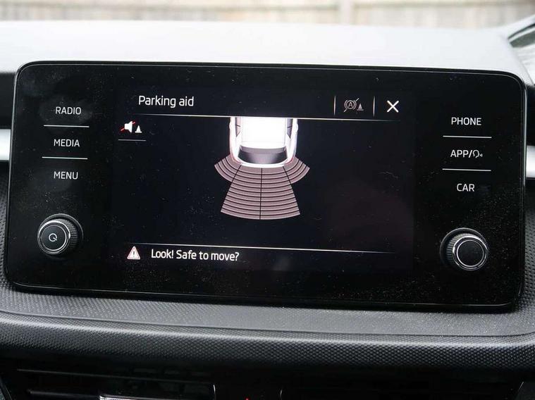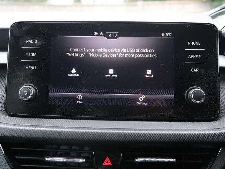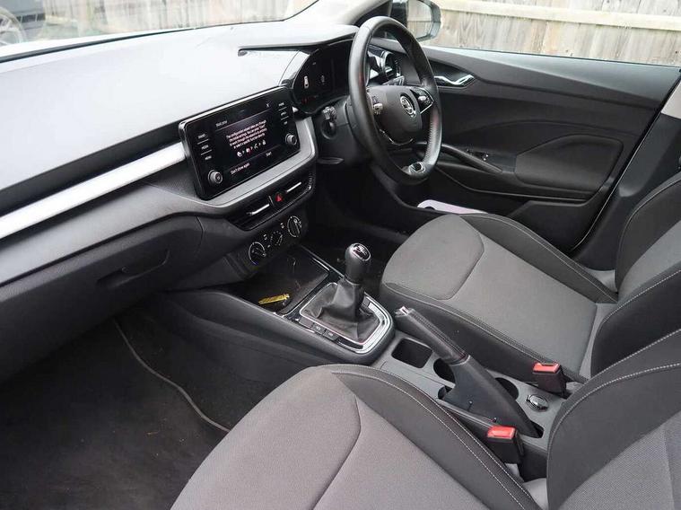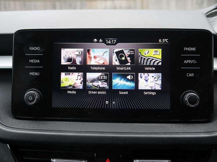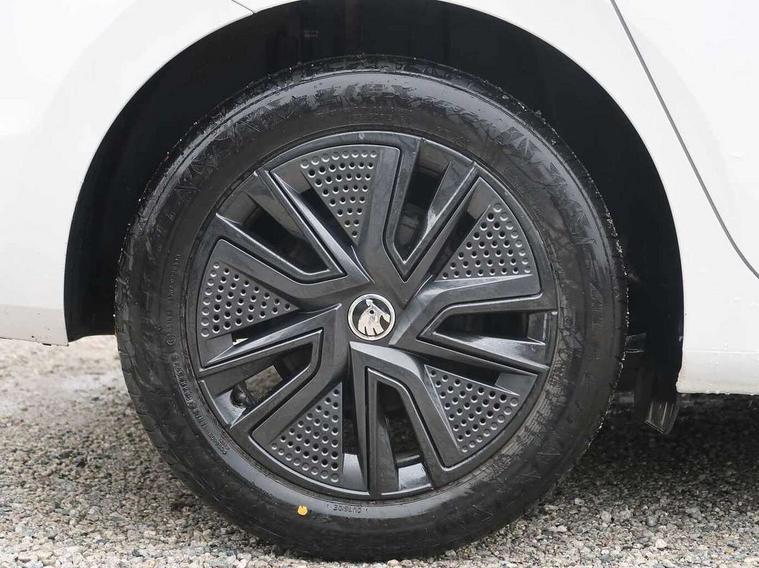 Bluetooth connection, Driver alert system - DAS, Electromechanical power steering, Exterior temperature gauge, Lane assist including road edge detection, Service interval indicator, Virtual cockpit with 10.25" colour display, 2x USB-C in the front (for data transmission and charging), 6 Speakers (4 in front and 2 in rear), Auxiliary socket for external MP3 player, Bolero radio with 8" colour display, DAB digital radio reception, Basic rear lights, Body coloured bumpers, Dimming rear view mirror with black frame, Door mirror integrated indicators, Electrically adjustable and heated door mirrors, Electrically adjustable front windows with function auto up/down, Front window wiper intermittent control, Headlight range control - Automatic, Ice scraper in fuel cap, LED daytime running lights with coming and leaving home feature, Mechanical adjustable rear windows, Privacy glass, Rear LED fog light, Rear side wing doors, Rear window wiper with washing nozzles, Roof mounted spoiler, SKODA tailgate lettering in chrome, Third brake light, 3 rear headrests, Backrest split and folding, Central console with fixed cup holder and storage box, Chrome handbrake release button, Fabric upholstery, Gearshift knob/handle in leather, Grain satin black interior door handles, Hand brake lever handle in leather, Height adjustable front headrests, Height adjustable steering wheel, ISOFIX and TopTether anchorage points to the outer rear seats, ISOFIX and TopTether on the front passenger seat, Luggage compartment lighting, Pollen filter, Rear seat bench unsplit, Single front passenger seat, Storm grey headlining, Sun visors with mirror and airbag label on passenger side, Ticket holder, Umbrella in drivers door, 3-point height adjustable front seats belts with pretensioner and force limiter, Automatic warning lights in case of crash, Driver and passengers airbag with switch off function, e-Call+, ESC including ABS, MSR, ASR, EDS, HBA and XDS, Front and rear seat belt warning, FRONT ASSIST (AEB City and AEB Inter Urban), Front side airbags, Head airbags, One tone horn, Pedestrian protection, Three rear 3-points safety seat belts with pretensioner and force limiter including stop function for outer rear seat belts, Tyre pressure monitoring system, Anti-theft alarm system including immobiliser, interior monitoring, backup horn, and towing protection, Anodized cross line upper decorative trim, Colour Edition air vents, Grain satin black central console cover, Grain satin black lower decorative trim, Satin black door and side trim panel in front, Anti-theft wheel bolts protection, Super-low rolling resistance tyres,