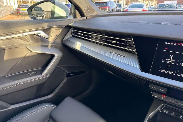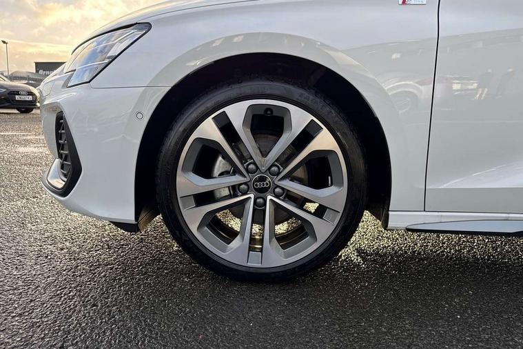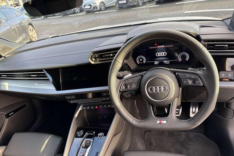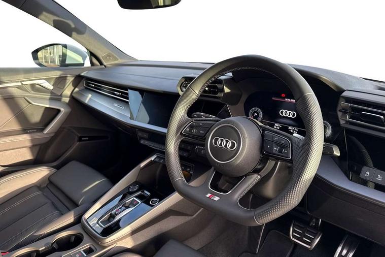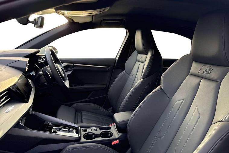 Adjustable speed limiter, Audi drive select, Audi smartphone interface with app store includes wireless Apple carplay, Android auto and Amazon alexa integration, Audi virtual cockpit plus - 12.3" full HD resolution dynamic digital instrument cluster, Automatic start/stop system with recuperation, Bluetooth interface, Camera based traffic sign recognition, Collision avoidance assistant, Cruise control, Distraction and Fatigue warning, e-Call (emergency call), Electromechanical power speed sensitive steering, Lane departure warning system, MMI Navigation Plus with high resolution 10.1" colour touch screen display, Park Assist with parking system Plus, Service indicator, Trip computer, Voice control system with natural language interaction, Sports suspension, Audi Phonebox light with wireless charging, Audi sound system - 10 loudspeakers including centre loudspeaker and subwoofer, DAB Digital radio, USB ports with charging function in the rear, Acoustic glass windscreen, Aluminium window trim, Auto dimming frameless rear view mirror, Body colour exterior mirrors, Chrome exhaust tailpipes, Electrically adjustable/heated/folding/auto dimming door mirrors with integrated LED indications + kerb view function for passenger side, Exterior model badging, Front and rear side air inlets in grained matt black with dark liquid chrome frame, Front electric windows, Front radiator grill in high gloss dark chrome, Heat insulating glass windscreen, Illuminated door sills with aluminium inserts at the front with S logo, LED 3rd brake light, LED daytime running lights, LED headlights with LED rear lights and dynamic rear indicators, Light and rain sensors, Privacy glass - dark tinted rear window, rear door and side windows, Rear boot, Rear diffuser and grill in grained matt black with inlay in dark liquid chrome, Rear electric windows, Rear side wing doors, S line bumpers, Side S line emblems on front wings, Side sill trim in dark liquid chrome, 12V socket and storage compartment in front centre console, 3 seat bench in 2nd row, 3 spoke flat bottomed leather multifunction sport steering wheel with gear shift paddles, 3-zone deluxe automatic air conditioning, 4 way electrically adjustable lumbar support for driver and front passenger, 40/20/40 split folding rear seat bench, Black cloth headlining, Front and rear centre armrest in artificial leather, Front and rear centre armrest in artificial leather with contrasting stitching on armrests and instrument panel, Front and rear headrests, Front/rear floor mats, Heated front seats, Height and reach adjustable steering wheel, Manual boot compartment lid, Manually adjustable front seats, Rear cup holders, S badging on the steering wheel, Seat side bolsters, Single front passenger seat, Stainless steel pedals and front footrest in black, Twin leather upholstery with front sports seats S embossed logo, Aluminium interior elements pack - A3, Multi-coloured LED interior lighting package - A3, 3x3 point rear seat belts, Driver and front passenger airbag with passenger airbag deactivation, Electronic Stabilisation Control (ESC) including ABS, ASR and EDL, First aid kit with warning triangle and 2 safety vests, Front side airbags with head airbags and interaction airbag, Hill hold assist, Pre-sense front with pedestrian and cyclist detection, Seatbelt monitoring, Tyre pressure loss indicator, Anti theft alarm, Anti-theft wheel bolts, Electronically operated child locks, Immobiliser, Remote central locking with safelock, Dash & door Inlay in dark aluminium Spectrum,