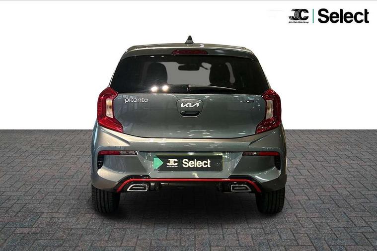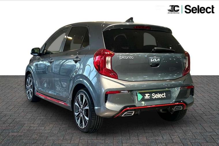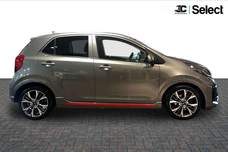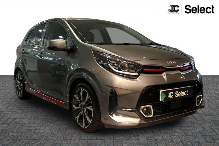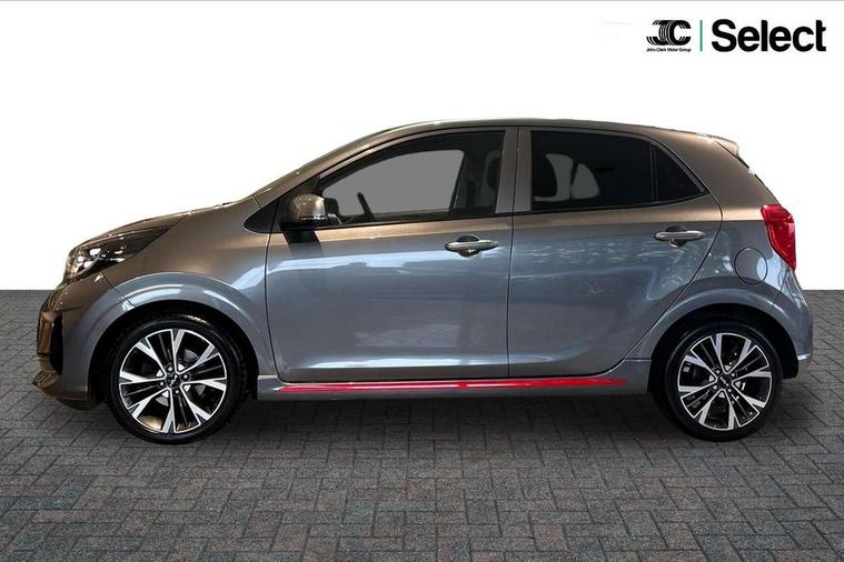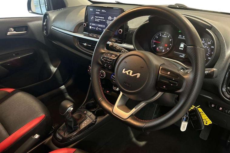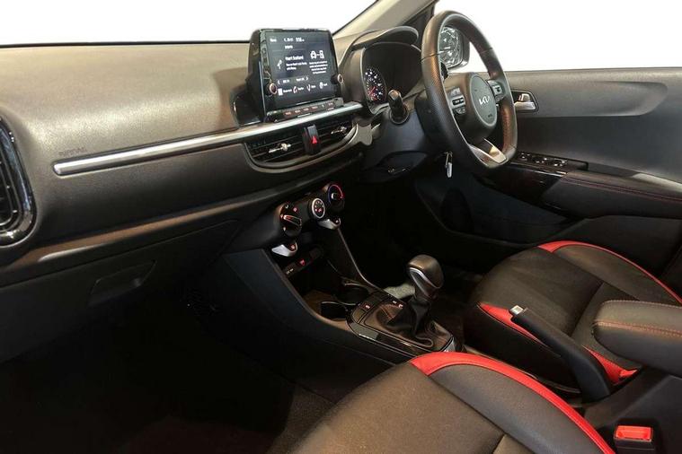 8" touchscreen display with RDS and DAB, Apple car play/Android Auto with voice control, Emergency call service, Emergency stop signalling system, External temperature gauge, Motor driven power steering, Reversing camera system with dynamic guidelines (Integrated into centre fascia screen), Tachometer, Trip computer, 6 speaker audio system, Bluetooth with music streaming, Steering wheel mounted controls, USB ports for connection of a media device, Automatic headlight control system, Bi-function projection headlights, Black beltline mouldings, Black grille with silver surround, Body colour B pillars, Body colour bumpers, Body colour mirrors and door handles, Body colour side sill mouldings, Day/night rear view mirror, Electric adjustable/heated/folding door mirrors with LED indicators lights, Front and rear electric windows with drivers's auto up/down function, Front fog lights, Headlamp levelling, Heated rear window, High mount brake light, LED daytime running lights, LED rear fog lights, Privacy glass - Rear windows and tailgate, Rain sensor, Rear side wing doors, Rear wash/wipe, Speed variable front wipers, Sports front and rear bumpers with gloss black skid plates twin exhaust, Tinted glass, Visible VIN plate, Welcome and follow-me home light functionality, 1 x rear coat hook, 12V power point front, 2 seat bench in 2nd row, 3 x passenger assist grips, 60/40 split/folding 2nd row of seats, All round height adjustable headrests, Black and red accents front door armrest, Centre Console with Storage Box and Sliding Armrest, Cupholders in centre console, D-cut steering wheel with red stitching, Driver and front passenger sunvisor with vanity mirror, Driver seat height adjust, Faux leather upholstery, Front cabin lights, Glovebox, High gloss lower centre fascia trim, door armrest and air vents, ISOFIX Child seat top tethers and anchor fixings, Leather trimmed steering wheel and gearshift, Luggage area light, Luggage area parcel shelf, Manual air conditioning, Passenger front seatback pockets, Satin chrome interior door handles, Single front passenger seat, Slide/reclining front seats, Tilt adjustable steering wheel, Advanced Driver Assistance Pack - Picanto, 2 x 3-point rear seatbelts, ABS/EBD, Automatic unlocking of doors in case of impact, Dual front airbags, ESC + BAS + VSM + HAC, Front passenger airbag cut-off switch, Front seatbelt height adjusters, Front seatbelt pretensioners + load limiters, Hill hold control, Knee airbags, Rear child proof door locks, Seatbelt warning, Side impact protection, Torque vectoring brake based and straight line stability (SLS), Traction control, Twin curtain airbags, Twin front side airbags, Tyre pressure monitoring system, Anti theft alarm, Engine immobiliser, Folding key, Locking wheel nuts, Remote central door locking, 16" alloy GT-Line wheels, Tyre mobility kit,