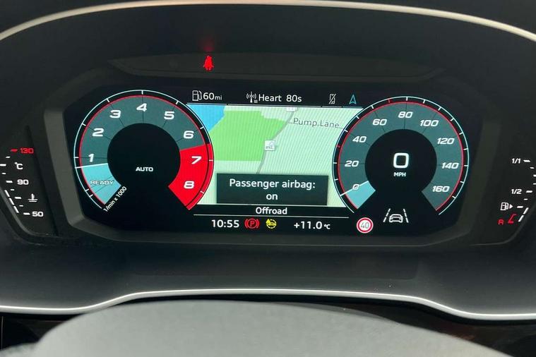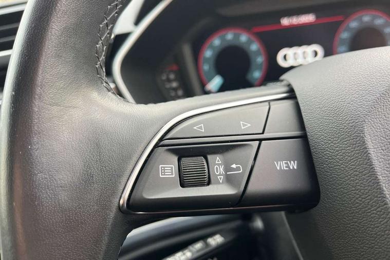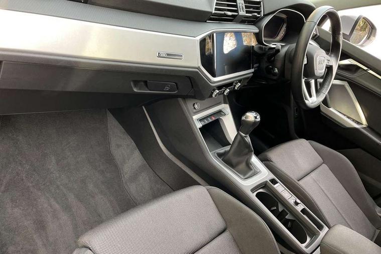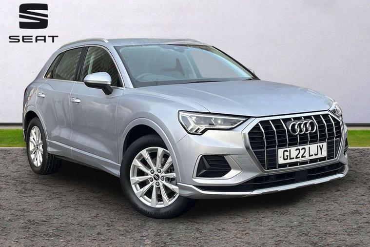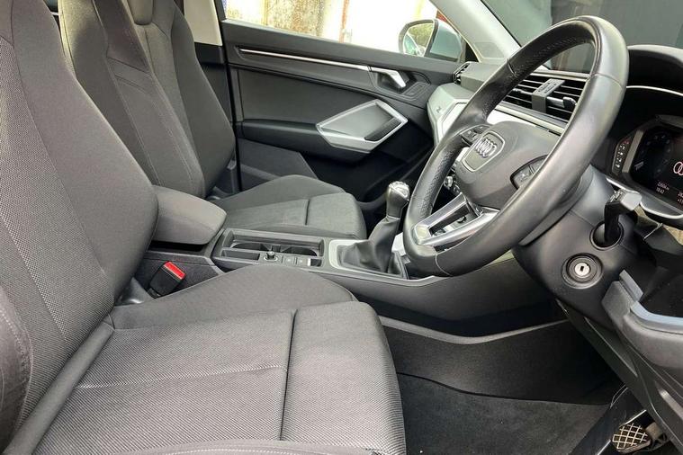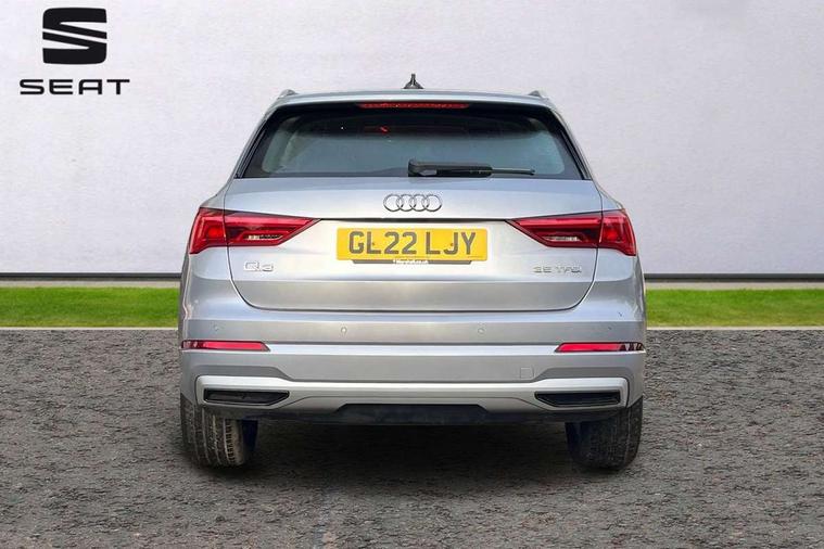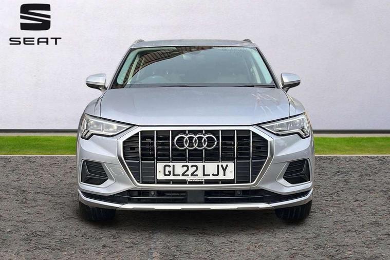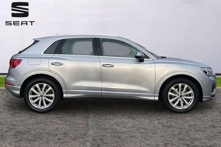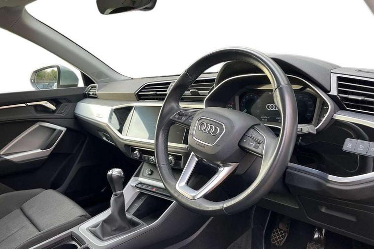 Amazon alexa Integration, Audi drive select, Audi lane departure warning, Audi Virtual Cockpit - 10.25" display, Bluetooth interface, Camera based traffic sign recognition, Cruise control + speed limiter, Legal emergency call, MMI Navigation Plus with high resolution 10.1 inch touchscreen colour display, Power operated tailgate, Progressive steering, Rear parking sensors, Service interval indicator, Smartphone interface includes wireless Apple carplay/Android Auto, Start stop system with recuperation, Voice control system with natural language interaction, Standard suspension, 2 USB-C ports with charge and data functions, 6 passive loudspeakers, DAB digital radio module, Acoustic windscreen, Aluminium roof rails, Aluminium window trim, Auto dimming frameless rear view mirror, Body coloured bumpers, Electrically folding, adjustable and heated door mirrors with integrated LED side indicators and kerb view function for passenger side, Front and rear electric windows, Front fog lights, Front side air inlets in matt selenite silver, Front spoiler in matt selenite silver, Grille vertical bars in aluminium silver/Matt, High gloss black finish B and C pillars, LED headlights with LED daytime running lights, LED rear lights, LED third brake light, Rain and light sensors, Rear diffuser strip in matt selenite silver, Rear side wing doors, Rear wiper, Titanium black radiator grille, Variable front intermittent wipers, 12V socket in rear centre console, 3 seat bench in 2nd row, 3 spoke multi-function leather steering wheel, 40:20:40 folding with manual adjustment for 60:40 forwards/backwards position and backrest angle, Door sill trims with aluminium inlay, Dual zone electronic climate control, Front and rear floor mats, Front and rear headrests, Front and rear roof module including reading lights, Front centre armrest, Glove compartment lighting, Height and reach adjustable steering wheel, ISOFIX child seat mounting for front passenger with airbag deactivation and outer rear seat including top tether attachment point for outer rear seats, Luggage compartment light, Lunar silver cloth headlining, Manual front seats with height adjustment, Single front passenger seat, Stainless steel luggage compartment sill finisher, Non smoking pack - Q3, 3x3 point rear seatbelts, 6 airbags - Driver, front passenger, curtain and side windows, Audi pre-sense front with pedestrain and cyclist recognition, Electromechanical parking brake, Electronic stabilisation control including ABS, ASR and EDL, Front seatbelt reminder, Hill descent control, Hill hold assist, Manual child lock in rear doors, Pre sense basic, Seatbelt monitoring, Tyre pressure warning, Warning triangle and first aid kit, Anti theft alarm, Anti theft wheel bolts, Immobiliser, Remote central locking, Detail dashboard around MMI touch colour display in glass look, black with surround in aluminium look, Micrometallic silver inlay,