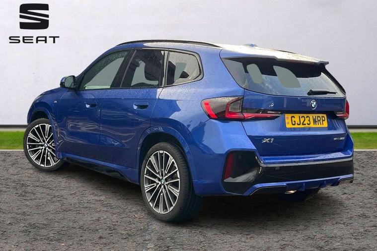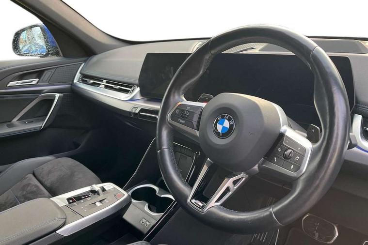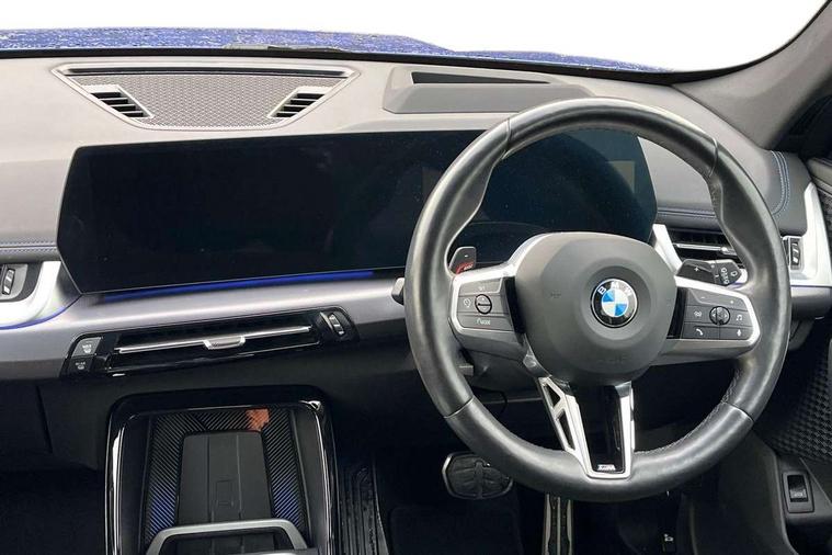 Active Guard + lane departure warning, speed limiting, front collision warning, Left turn warning with brake function and evasion assist, Attentiveness assist, Automatic start/stop function, BMW Live Cockpit Plus with 10.25" instrument cluster and 10.7" display, BMW Online services, BMW Teleservices, Brake pad wear indicator, Condition based service, Connected eDrive Services, Drive off assistant, Electrically opening/closing tailgate with opening/closing with remote control and contactless opening and closing, iDrive controller, Language version English, My Modes, Parking Assistant with Reversing Assistant, active PDC, Lateral Parking Aid, Rear View Camera and Park Distance Control, Personal Profile - automatic lock when driving away selectable, Servotronic PAS, Tyre puncture warning system, Widescreen display, Wireless charging, M Adaptive suspension, Performance Control, Petrol Particulate Filter, Steptronic transmission with double clutch and gear shift paddles, DAB Digital radio, Auto dimming interior rear view mirror, Badge on engine compartment lid and tailgate, Contoured rear roof spoiler in vehicle colour with side aeroblades in black high-gloss, Dynamic brake lights, Electric adjustable heated door mirrors, Electric windows - front and rear, with open/close fingertip control, anti-trap facility and comfort closing, Folding door handles integrated flush with surface, Folding wing mirrors with auto dimming, Follow me home headlights, Front and rear bumper panel with M specific design, in body colour with inserts in black high gloss, Front door exit lights, Front entry sills aluminium inserts with M inscription, Heated rear window, High gloss shadow line includes B-pillar trim panel/window cavity cover/window frame/window guide rail front doors/door mirrors in high gloss black, Invisible exhaust tailpipe, Key with M identification, LED 3rd brake light integrated in rear spoiler, LED daytime running lights, LED number plate light, M identification on the sides, M roof rails high gloss shadow line, M specific radiator grille in satinated aluminium, Matt black roof strips, Model inscription on right tailgate, Rain sensor including auto headlights activation, Rear side wing doors, Rear wiper, Side sill covers with M specific design in body colour, Trailer stabilisation logic, Welcome lighting, Windscreen washer nozzle for rear view camera, Windscreen wipers with front and rear heated washer nozzles, 12V - Power sockets with front centre console and luggage compartment, 2 cup holders in front, 2 x USB Type C ports for charging and data transmission (front centre console) and 2 x USB Type C ports for charging (rear centre console), 3 rear headrests, 3 seat bench in 2nd row, 3 upper retaining strap clips integrated into rear panels of seat backrests, 40:20:40 split folding rear seats, Ambient interior lighting, Anthracite headlining, Anthracite Velour front and rear floormats, Bottle trays in all doors, Child seat ISOFIX attachment for two outer rear seats and front passenger seat with anchorage points, Clothes hook rear, Driver and front passenger heated seats, Dual zone automatic air conditioning, Front and rear door pockets, Front centre console storage compartment, Front sports seats, Front/rear adjustable head restraints, Glove compartment, Light on right in luggage compartment, M sport leather steering wheel, Manual steering column height and depth adjustment, Map pockets, Middle centre console storage compartment, Rear armrest in door trim panel, Single front passenger seat, Sport leather multifunction steering wheel with thumbrests and operation of instrument display, audio, telephone and driver assistance, Storage compartment with folding cover under centre console armrest cushion, Connected Package Professional - X1, Technology pack - X1, ABS/EBD, Automatic hold function, Automatic Stability Control (ASC), BMW emergency call, Braking readiness, Cornering brake control (CBC), Crash Sensor - activates hazard/interior lighting + unlocks doors, Driver/Front Passenger airbags, Driver/front passenger side airbags, Dry braking, Dynamic stability control + (DSC+), Electromechanical parking brake, Energy recovery system, Front and rear brake discs, Front and rear head airbags, Front passenger airbag deactivation, Integrated brake system, PC iBrake PostCrash approach control warning with light braking function, Rear door child safety locks, Three point seat belts in all seats, Tyre pressure monitor, Warning triangle, Alarm system with tilt sensor, monitoring doors, bonnet interior and tailgate, Closing system with central locking, Locking wheel bolts, Luxury instrument panel, Tyre repair kit (including Tyre sealant and 12V Compressor),