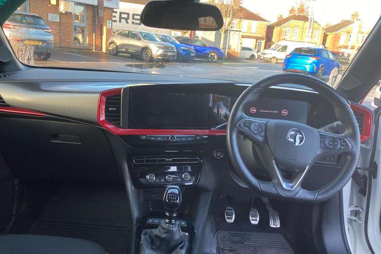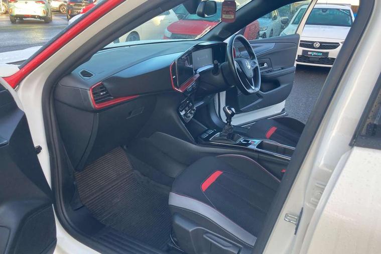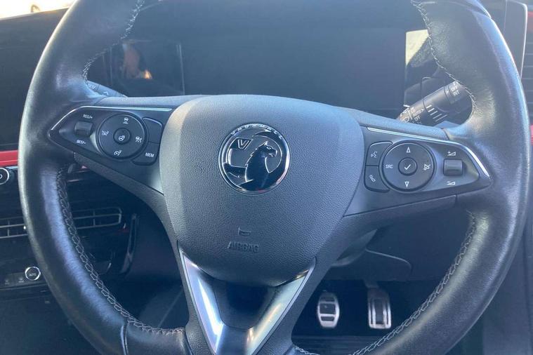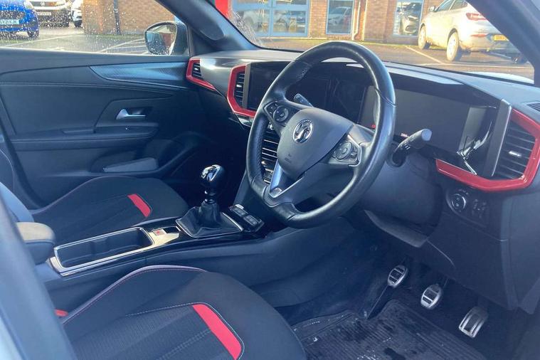 Automatic adaptive cruise control, Driver drowsiness alert system, Engine start/stop button, Front and rear parking distance sensors, Front camera system, Lane keep assist system (LAS) with Lane departure warning system (LDWS), Lights on audible warning, Multi function trip computer, Panoramic rear view camera, Power assisted speed sensitive steering, Side blind spot alert and flank guard, Smartphone integration compatible with Apple CarPlay and Android Auto, Speed sign recognition, Sports switch with engine sound enhancement, Start/stop system, Vauxhall connect with e-Call, 6 speed manual transmission, Chassis drive line front wheel drive, Electronic fuel system, Front chassis equipment, Rear chassis equipment, Standard chassis suspension system ride handling, Bluetooth A2DP audio streaming function (Advanced audio distribuition profile), Flexible Roof Mounted Radio Aerial, Front USB connection, Mobile phone portal - bluetooth connect, vehicle microphone, handsfree calls, SMS read out and reply, phone book access, Multimedia Navi pro infotainment with satellite nav, 10" colour touchscreen, 6 speakers, DAB radio, 12" instrument panel, Apple carplay/Android auto, Steering wheel mounted controls, Two rear USB sockets, 3rd brake light, Adaptive brake lights, Automatic lighting control with tunnel detection, Automatically dimming anti dazzle rear view mirror, Black door mirror housings, Black Griffin logo and vizor frame, Black rear spoiler, Black skid plates, Body colour door handles, Body colour front and rear bumpers, Dark tinted rear side windows + tailgate window, Electrically adjustable, heated and folding door mirrors, Electrically operated front and rear windows with safety auto reverse and one touch up/down facility, Hazard warning lights, Heated rear window+rear wash/wipe, High beam assist, LED daytime running lights, LED front fog lamps, LED side repeat indicators, LED tail lights, Manual headlamp level control, Rear foglight, Rear side wing doors, Rear wiper, Reversing light, Two speed rain-sensitive windscreen wipers with variable intermittent wipe, Windscreen and side window demist vents, 12V Accessory socket, 3 seat bench in 2nd row, 3 spoke flat bottomed leather steering wheel with satin chrome bezel, 4 speed fan with illuminated controls, 6 way manual adjustable driver fore/aft, up/down with reclining seatback, 6 way manual adjustable front passenger fore/aft, up/down with reclining seatback, Air recirculation system, Alloy sports pedals, Black headliner, Cabin particulate filter - removes dust, airborne particles and pollen, Centre console with two cup holders at front and one in rear, Chrome effect interior door handles, Door pockets with two litre capacity, Driver and passenger seat pocket, Driver and passenger sun visors with vanity mirror, Electronic climate control (ECC), Fabric/leather upholstery with jet black fabric side bolsters, Four adjustable facia vents, Four load restraint lashing eyes, Front centre armrest with storage, Front map reading lights, Front seat back storage pockets, Fully carpeted load area, Heated front seats, Heated steering wheel, Height adjustable front/rear head restraints, Illuminated load area, Interior courtesy light, Interior tailgate handle, Luggage compartment cover, Luggage compartment lighting, Reach + rake adjustable steering column, Single front passenger seat, Twin gas assisted tailgate struts, 2x Isofix child seat fitting on outer rear seats, 3x3 point rear seat belts, Anti-lock braking system (ABS), Automatic emergency city braking, Child proof locks on rear doors, Cornering brake control, Deactivation switch for front passenger front and side impact airbags, Drag torque control, Driver and front passenger airbags, front seat side impact airbags, full size curtain airbags, Electronic brake force distribution, Electronic Stability Programme (ESP), Emergency brake assist, Forward collision alert at all speed, Hill start assist, Inertia reel lap and diagonal seatbelts for all seats, Seatbelt unfastened audible warning and warning light, Straight line stability control, Traction control, Tyre pressure monitoring system, Electronically protected audio equipment, Freewheeling door locks, Immobiliser, Key left in ignition audible warning, Keyless entry and start, Locking wheel nuts, Remote control ultrasonic security alarm system, Visible vehicle identification number, Atlantis black trim inserts of front doors, Black facia with red trim insert, Instrument panel bar in Light Gravel, 18" bi colour alloy wheels with red accents,