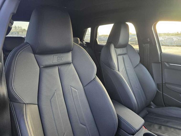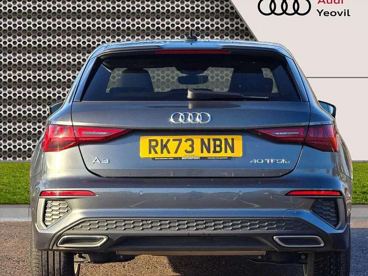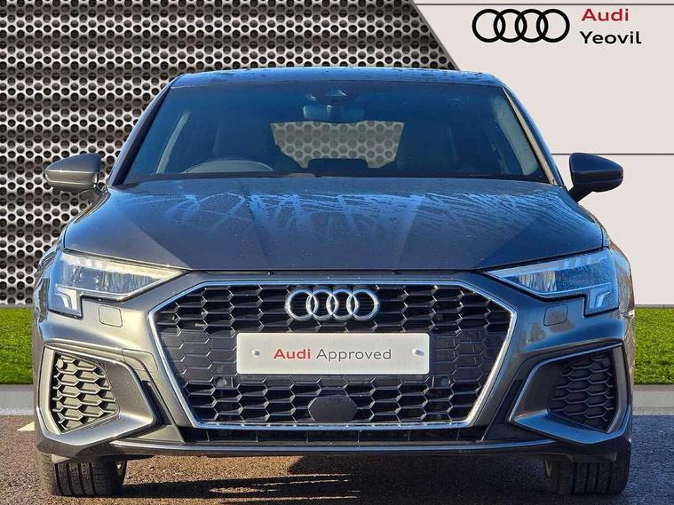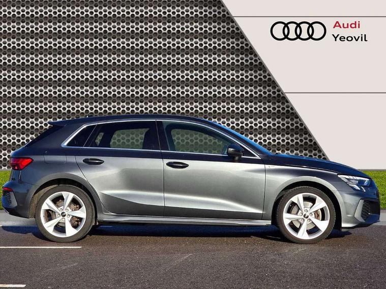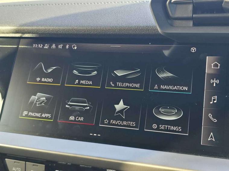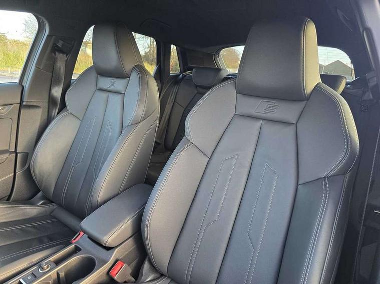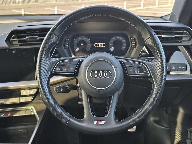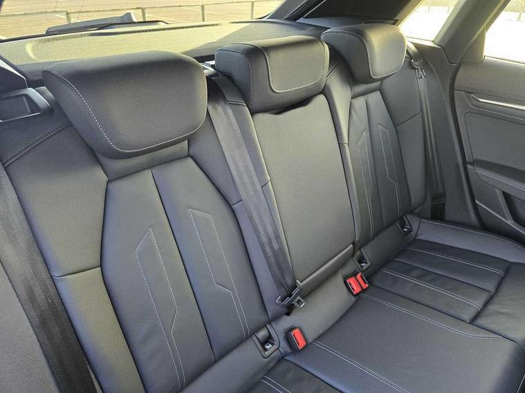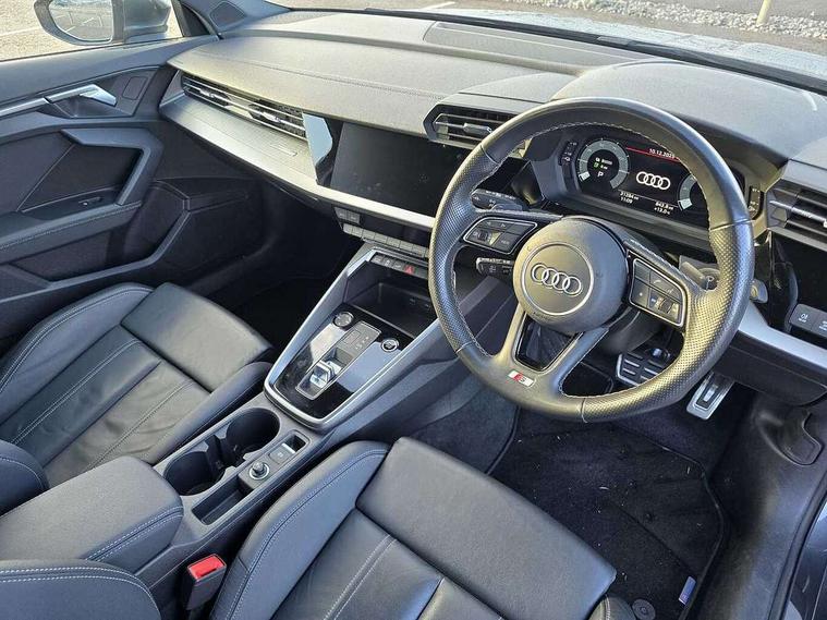 Audi drive select (Auto, Comfort, Dynamic, Efficiency and Individual), Audi smartphone interface, Audi Virtual Cockpit - 10.25" digital and colour instrument cluster, Automatic start/stop system with recuperation, Bluetooth interface, Camera based traffic sign recognition, Collision avoidance assistant, e-Call (emergency call), Electromechanical power speed sensitive steering, Lane departure warning system, MMI Navigation Plus with high resolution 10.1" colour touch screen display, Service indicator, Trip computer, Voice control system with natural language interaction, 3 pin 10 amp domestic charging cable, 3.6 kw On-board charger, Standard suspension, Type 2 mode 3 32 amp charging cable, Type 2 socket for AC charging, 2xUSB-C connection with data and charging functions, 6 passive loudspeakers, DAB Digital radio, 3rd brake light, Acoustic glass windscreen, Aluminium window trim, Auto dimming frameless rear view mirror, Body colour exterior mirrors, Electrically adjustable/heated/folding/dimming door mirrors with kerb view includes integrated LED indications + kerb view function for passenger side, Front electric windows, Illuminated door sills with aluminium inserts at the front with S logo, LED daytime running lights, LED headlights with LED rear lights and dynamic rear indicators, Light and rain sensors, Privacy glass - dark tinted rear window, rear door and side windows, Rear electric windows, Rear side air outlets in grained matt black, Rear side wing doors, Rear wiper, S line bumpers, S roof spoiler, 12V socket and storage compartment in front centre console, 3 seat bench in 2nd row, 3 spoke leather multifunction steering wheel with paddle shift, 4 way electrically adjustable lumbar support for driver and front passenger, 60/40 split folding rear seat bench, Black cloth headlining, Dual zone electronic climate control, Front and rear centre armrest in artificial leather, Front and rear headrests, Front/rear floor mats, Height and reach adjustable steering wheel, Interior lighting - glove compartment light and right hand side, Luggage compartment floor covering, Manual boot compartment lid, Manually adjustable front seats, Seat side bolsters, Single front passenger seat, Stainless steel pedals and front footrest in black, Twin leather upholstery with front sports seats S embossed logo, Aluminium interior elements pack - A3 Sportback, LED interior lighting pack - A3 Sportback, S line styling pack - A3 Sportback, 3x3 point rear seat belts, Driver and front passenger airbag with passenger airbag deactivation, Electronic Stabilisation Control (ESC) including ABS, ASR and EDL, First aid kit with warning triangle and 2 safety vests, Front side airbags with head airbags and interaction airbag, Pre-sense front with pedestrian and cyclist detection, Seatbelt monitoring, Tyre pressure loss indicator, Anti theft alarm, Anti-theft wheel bolts, Electronically operated child locks, Immobiliser, Remote control central locking, Dark spectrum aluminium inlays, accent surfaces in the dashboard and centre console in platinum grey silk effect paint finish, Tool kit, Tyre repair kit,