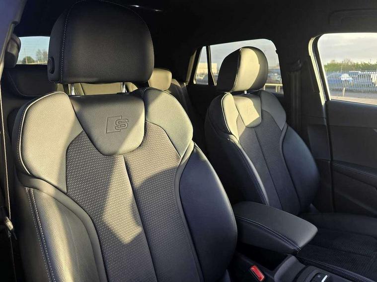 Audi connect navigation and infotainment includes innovative services, Audi connect remote and control connects your vehicle to your smartphone, Audi drive select - Power steering assistance + engine + gearshift, Audi drive select with efficiency, Audi smartphone interface, Audi virtual cockpit, Automatic start/stop system with recuperation, Bluetooth interface includes bluetooth audio streaming, Cruise control, E-call, Front and rear parking sensors, Instrument dials with S logo, MMI navigation plus with MMI touch, Power operated tailgate, Progressive steering, Rear view camera, Quattro all wheel drive, S sport suspension lowered by 20mm, 2 x SDXC card reader, 6 passive loudspeakers, DAB Digital radio, Auto dimming rear view mirror, Black Audi rings and black badging, Black exhaust tailpipes, Black window trims, Brilliant black C-Pillar blade in Solid, Brilliant black exterior mirror caps, Contrast bumper in grey, Electrically adjustable, folding, auto dimming and heated door mirrors with integrated LED side indicators, Front windscreen with grey tinted sunband, LED daytime running lights, LED headlights with LED rear lights, LED third brake light, Privacy glass - dark tinted rear and rear side windows from B-pillar backwards, Quattro decals on rear side flank, Rear side wing doors, Rear wiper, S design radiator grille with horizontal struts and SQ2 logo, Variable front intermittent wipers, Wheel arch trims in manhattan grey, 12V socket in front, 3 seat bench in 2nd row, 3 spoke flat bottom multi-fun leather sport steering with gear shift paddle and S badge grip in perforated leather with contrast stitch in rock grey, 4-way electric lumbar support for front seats including seat height adjustment for both front seat, 60/40 split folding rear seat bench, Black cloth headlining, Dual zone electronic climate control, Front and rear head restraints, Front centre armrest, Front/rear floor mats, Height/reach adjust steering wheel, Illuminated door sill trims with S logo, ISOFIX child seat mounting in front passenger and rear outer seats, Single front passenger seat, Stainless steel pedals, Black styling pack - SQ2, Extended interior upholstery pack - SQ2, 3x3 point rear seatbelts, 6 airbags - Front, curtain and front side airbags, Brake calipers painted black with S logo at the front, Electromechanical parking brake, Electronic stabilisation control including ABS, ASR and EDL, Front passenger airbag deactivation, Hill hold assist, Pre-sense front with pedestrian recognition, S model enhanced braking system, Seatbelt monitoring, Tyre pressure warning light, Warning triangle and first aid kit, Anti theft alarm, Anti theft wheel bolts, Electronically operated child locks, Remote central door locking, Aluminium interior element, Matt brushed aluminium trim inlays, Tool kit,