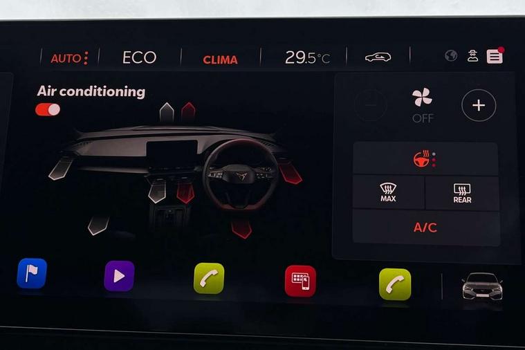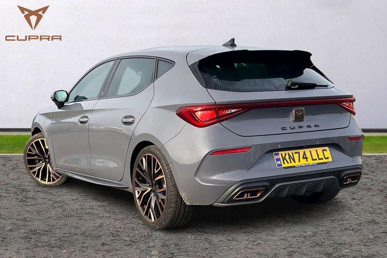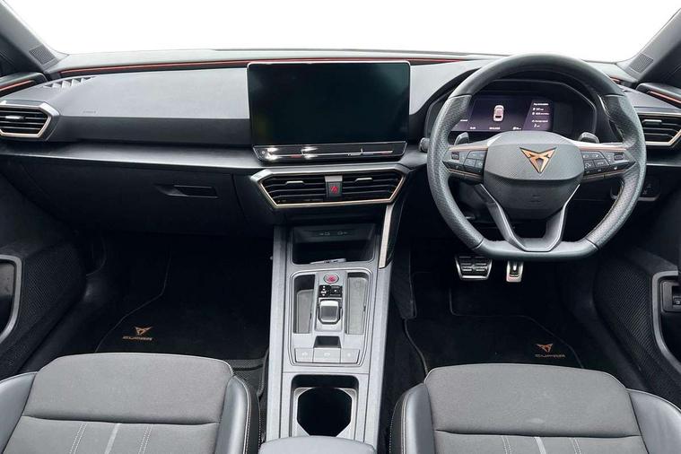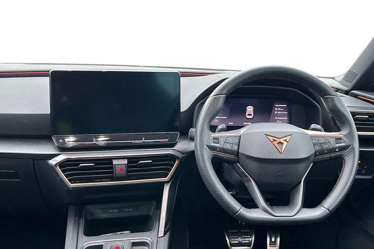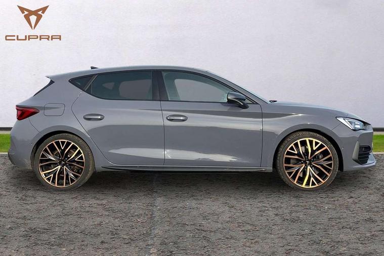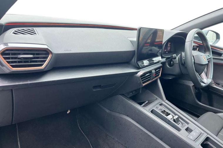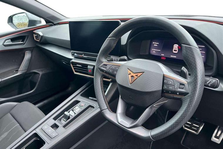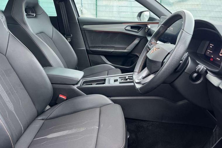 CUPRA drive profile selection with 4 modes (Comfort/Cupra/Sport/Individual), throttle response and gearshift mode, Digital cockpit, E-call, Four x USB Type C ports (2 in front and 2 in rear), Front assist with forward collision warning braking reaction to vehicles, pedestrians and cyclists, Full link smartphone integration with Mirror Link, wireless Apple CarPlay and wired Google Android Auto, Lane assist, Lockable tailgate, Park assist (inc front/rear parking sensors), Rear view camera, RPM, trip computer, outside temp gauge, instrument light brightness, low fuel warning light, lights on reminder, gearshift indicator, Service interval indicator, Start/stop system with regenerative braking, Wireless phone charger, 10 amp mode 2 charging cable, 16 amp mode 3 charging cable, 3.6 kw On-board charger, Standard suspension, XDS electronic differential lock and dynamic traction support, Auxiliary input socket, Auto dimming rear view mirror, Body colour door handles, Body coloured bumpers, Cupra sports bumpers, Dark tinted rear windows, Electric front/rear windows, Electrically adjustable, heated and folding door mirrors, LED front fog lamps with cornering function, LED headlights with dynamic turn signals, tail lights, rear fog lights with rear coast to coast lighting, Panoramic sunroof, Rain sensing wipers, Rear diffuser with twin exhaust pipe on each side with simulated exhausts, Rear side wing doors, Rear wash/wipe, Separate daytime running light with automatic headlight control and coming home feature, Third brake light, 12v power supply in centre console, 3 seat bench in 2nd row, 5 headrests, 60/40 split rear bench seat with armrest, Ambient lighting (glovebox, footwell, ambient lighting multicoloured), Black headlining, CUPRA Leather flat bottomed, heated, perforated steering and gearshift paddles, Cupra sports pedals, Driver/passenger manual seat height adjustment, Dust/pollen filter, Folding boot cover, Front and rear reading lights X 4, Front centre armrest, Front seats manual lumbar adjustment, Height/reach adjust steering wheel, Illuminated interior front door sills, Interior wraparound lighting, ISOFIX points in outer rear seats with top tether anchorage points, Luggage tie-down hooks, PVC/Cloth upholstery with copper stitching + Cupra embossed logo on headrest, Single front passenger seat, Sports bucket seats, Storage pockets on rear of front seats, Sunvisors with illuminated mirror, Three zone climate control, Design pack - Cupra Leon, Dynamic and comfort pack - Leon Cupra, Media system plus with navigation pack - Leon Cupra, 3 point seatbelts on all rear seats, ABS, Brake control system - ESC and brake booster, Child proof door locks, Cupra black brake calipers, Driver and front passenger airbags with front passenger airbag de-activation, front side and curtain airbags, Electronic parking brake, Extended safety system - seat belt tensioner, window closure and hazard lights, Hill hold control, Rear disc brakes, Seat belt reminder for front and rear seats, Tiredness recognition system, Tyre pressure monitoring system, Anti theft alarm system with interior monitoring in cab, backup horn and towing protection, KESSY Advanced - Keyless start, keyless entry, Locking wheel bolts, Chrome and copper interior detailing, 19" Performance satin black and copper alloy wheels with 91Y tyres, Breakdown kit, Tool kit,