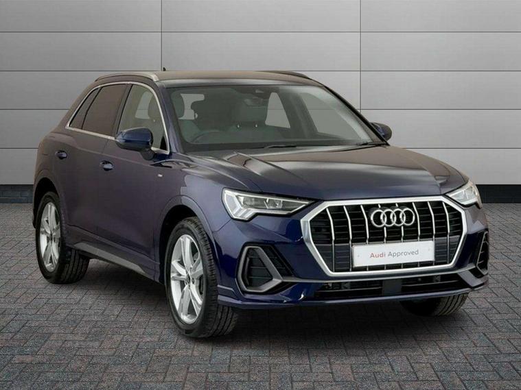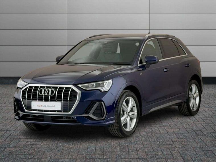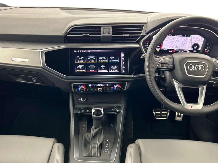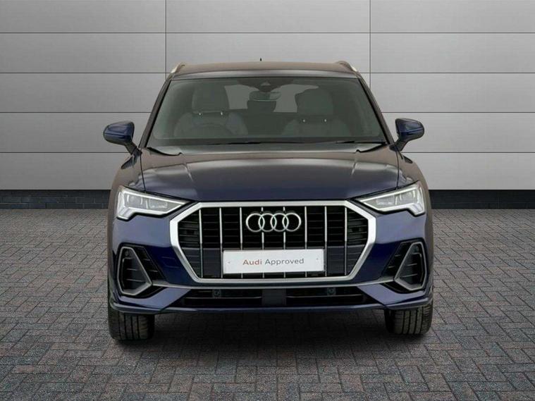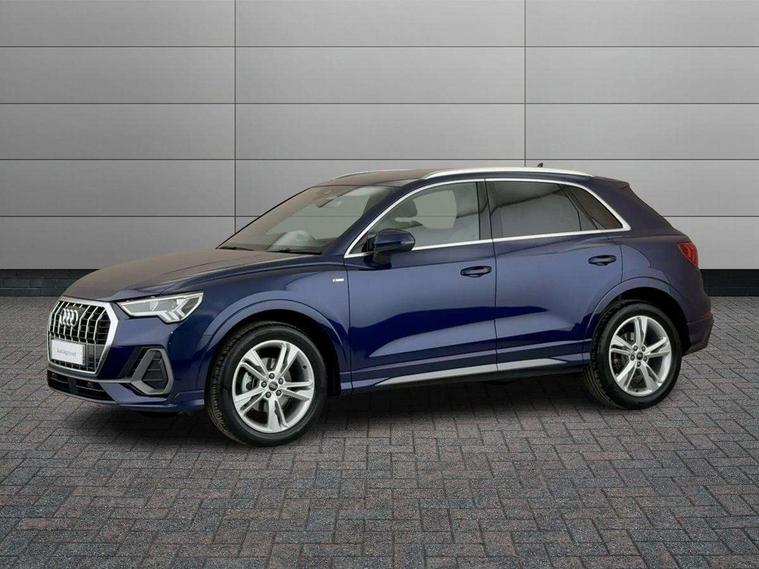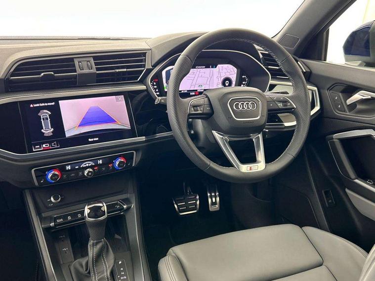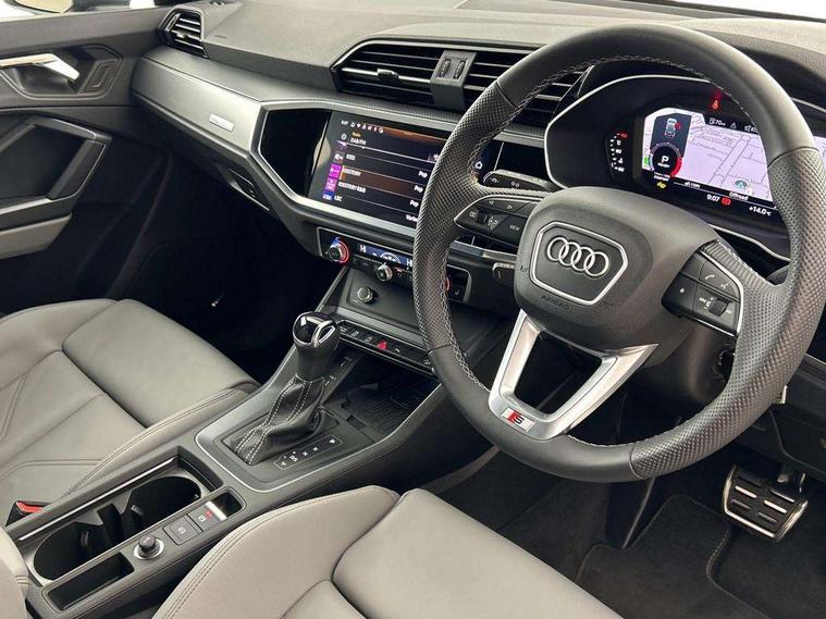 Amazon alexa Integration, Audi connect safety and service, Audi drive select, Audi lane departure warning, Audi Virtual Cockpit - 10.25" display, Bluetooth interface, Camera based traffic sign recognition, Distraction and Fatigue warning, Legal emergency call, MMI Navigation Plus with high resolution 10.1 inch touchscreen colour display, Power operated tailgate, Progressive steering, Service interval indicator, Smartphone interface includes wireless Apple carplay/Android Auto, Start stop system with recuperation, Voice control system with natural language interaction, Diesel particulate filter, Sports suspension, 2 USB-C ports with charge and data functions, 6 passive loudspeakers, DAB digital radio module, Acoustic windscreen, Aluminium roof rails, Aluminium window trim, Anthracite black radiator grille, Auto dimming door mirrors, Auto dimming frameless rear view mirror, Body colour front spoiler blade, Electrically folding, adjustable and heated door mirrors with integrated LED side indicators and kerb view function for passenger side, Front and rear electric windows, Front fog lights, Front side air inlets in matt platinum grey, Grille vertical bars in aluminium silver/Matt, High gloss black finish B and C pillars, LED Dynamic rear indicators, LED headlights with LED daytime running lights, LED rear lights, LED third brake light, Privacy glass dark tinted rear and rear-side windows (from B-pillar backwards), Rain and light sensors, Rear diffuser grille in grained matt black, Rear diffuser strip in matt anthracite black, Rear side wing doors, Rear wiper, S line badges on front wings, S line front and rear bumpers and side skirts in contrasting Manhattan grey paint finish, Side skirt insert in matt Platinium grey, Variable front intermittent wipers, 12V socket in rear centre console, 3 seat bench in 2nd row, 3 spoke leather multifunction steering wheel features S badging and grips in perforated leather with contrast stitching, 40:20:40 folding with manual adjustment for 60:40 forwards/backwards position and backrest angle, Adjustable rear seat bench/backrest with centre armrest and cupholder, Black cloth headlining, Dual zone electronic climate control, Electric lumbar support, Front and rear black floor mats with contrast stitching in rock grey, Front and rear headrests, Front centre armrest, Height and reach adjustable steering wheel, Illuminated door sill trims with S logo, ISOFIX child seat mounting for front passenger with airbag deactivation and outer rear seat including top tether attachment point for outer rear seats, Manual front seats with height adjustment, Perforated leather gearknob, Single front passenger seat, Stainless steel luggage compartment sill finisher, Stainless steel pedals, Twin leather upholstery with front sport seats + S embossing, Non smoking pack - Q3, 3x3 point rear seatbelts, 6 airbags - Driver, front passenger, curtain and side windows, Audi pre-sense front with pedestrain and cyclist recognition, Electrically operated child locks on rear doors, Electromechanical parking brake, Electronic stabilisation control including ABS, ASR and EDL, Front seatbelt reminder, Hill descent control, Hill hold assist, Pre sense basic, Seatbelt monitoring, Tyre pressure warning, Warning triangle and first aid kit, Anti theft wheel bolts, Immobiliser, Remote central locking, Thatcham approved category 1 anti theft alarm, Aluminium look interior elements, Dark matt brushed aluminium inlay, Detail dashboard around MMI touch colour display in glass look, black with surround in aluminium look, Leatherette door armrest,