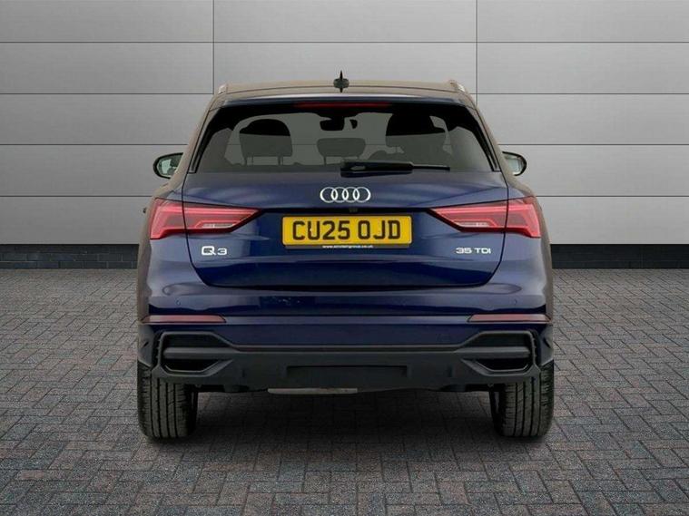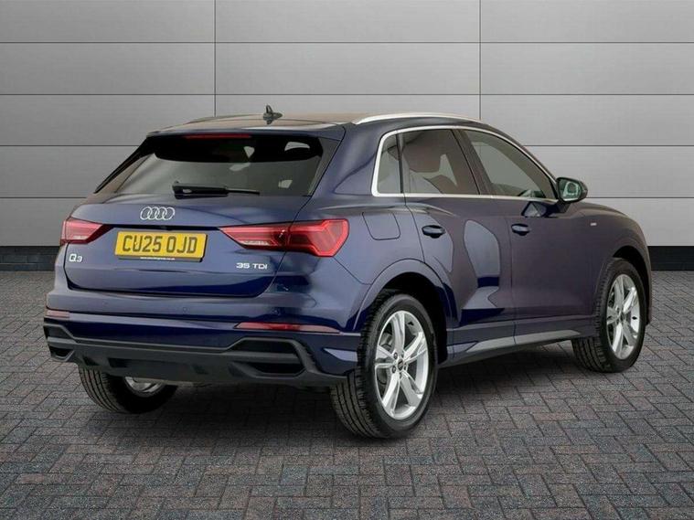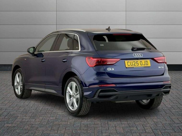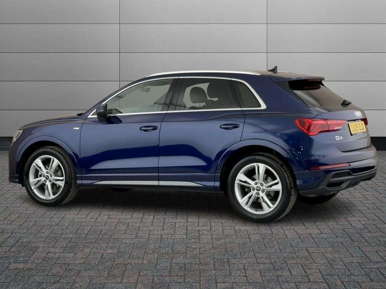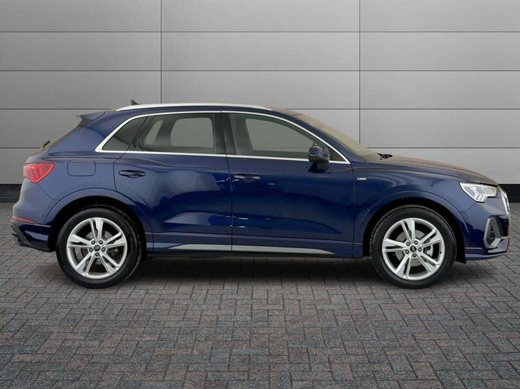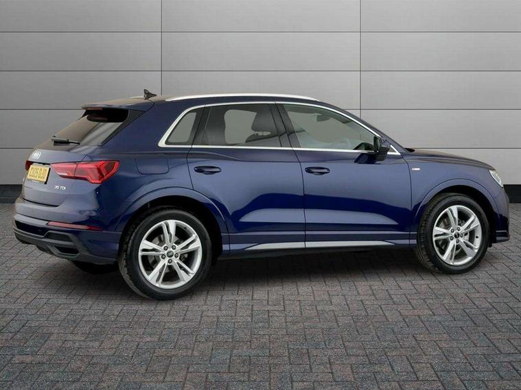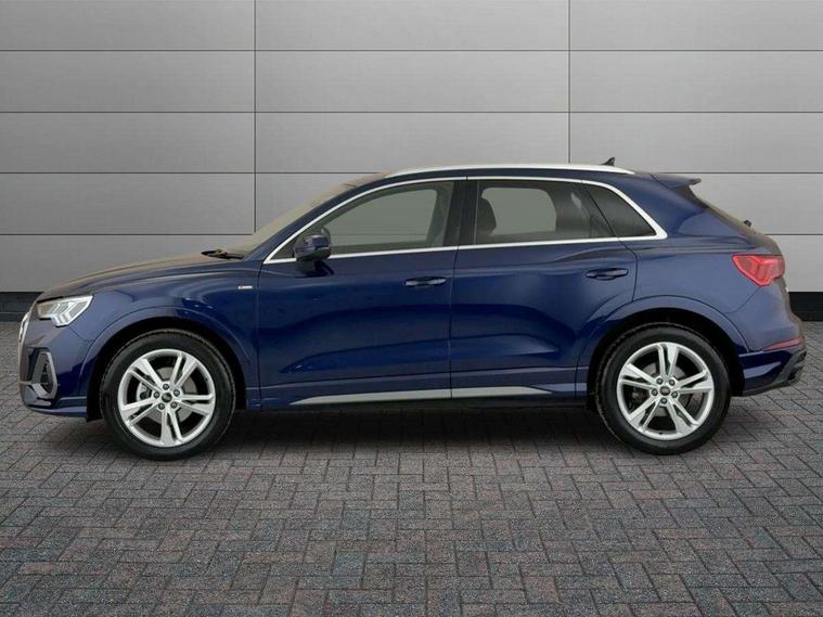Amazon alexa Integration, Audi connect safety and service, Audi drive select, Audi lane departure warning, Audi Virtual Cockpit - 10.25" display, Bluetooth interface, Camera based traffic sign recognition, Distraction and Fatigue warning, Legal emergency call, MMI Navigation Plus with high resolution 10.1 inch touchscreen colour display, Power operated tailgate, Progressive steering, Service interval indicator, Smartphone interface includes wireless Apple carplay/Android Auto, Start stop system with recuperation, Voice control system with natural language interaction, Diesel particulate filter, Sports suspension, 2 USB-C ports with charge and data functions, 6 passive loudspeakers, DAB digital radio module, Acoustic windscreen, Aluminium roof rails, Aluminium window trim, Anthracite black radiator grille, Auto dimming door mirrors, Auto dimming frameless rear view mirror, Body colour front spoiler blade, Electrically folding, adjustable and heated door mirrors with integrated LED side indicators and kerb view function for passenger side, Front and rear electric windows, Front fog lights, Front side air inlets in matt platinum grey, Grille vertical bars in aluminium silver/Matt, High gloss black finish B and C pillars, LED Dynamic rear indicators, LED headlights with LED daytime running lights, LED rear lights, LED third brake light, Privacy glass dark tinted rear and rear-side windows (from B-pillar backwards), Rain and light sensors, Rear diffuser grille in grained matt black, Rear diffuser strip in matt anthracite black, Rear side wing doors, Rear wiper, S line badges on front wings, S line front and rear bumpers and side skirts in contrasting Manhattan grey paint finish, Side skirt insert in matt Platinium grey, Variable front intermittent wipers, 12V socket in rear centre console, 3 seat bench in 2nd row, 3 spoke leather multifunction steering wheel features S badging and grips in perforated leather with contrast stitching, 40:20:40 folding with manual adjustment for 60:40 forwards/backwards position and backrest angle, Adjustable rear seat bench/backrest with centre armrest and cupholder, Black cloth headlining, Dual zone electronic climate control, Electric lumbar support, Front and rear black floor mats with contrast stitching in rock grey, Front and rear headrests, Front centre armrest, Height and reach adjustable steering wheel, Illuminated door sill trims with S logo, ISOFIX child seat mounting for front passenger with airbag deactivation and outer rear seat including top tether attachment point for outer rear seats, Manual front seats with height adjustment, Perforated leather gearknob, Single front passenger seat, Stainless steel luggage compartment sill finisher, Stainless steel pedals, Twin leather upholstery with front sport seats + S embossing, Non smoking pack - Q3, 3x3 point rear seatbelts, 6 airbags - Driver, front passenger, curtain and side windows, Audi pre-sense front with pedestrain and cyclist recognition, Electrically operated child locks on rear doors, Electromechanical parking brake, Electronic stabilisation control including ABS, ASR and EDL, Front seatbelt reminder, Hill descent control, Hill hold assist, Pre sense basic, Seatbelt monitoring, Tyre pressure warning, Warning triangle and first aid kit, Anti theft wheel bolts, Immobiliser, Remote central locking, Thatcham approved category 1 anti theft alarm, Aluminium look interior elements, Dark matt brushed aluminium inlay, Detail dashboard around MMI touch colour display in glass look, black with surround in aluminium look, Leatherette door armrest,
