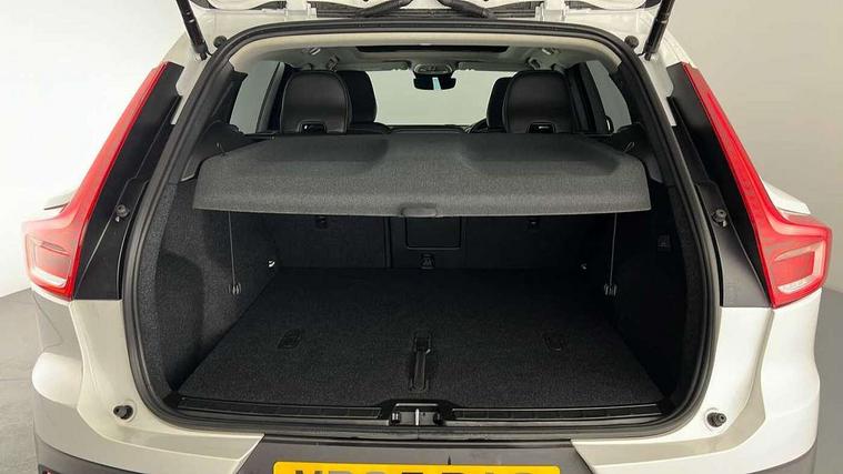 12.3" Progressive Driver Display, 360 degree surround view parking camera with side proximity sensors, 9" centre console portrait touch screen, Adjustable steering wheel force, Android auto (Wired), Apple carplay (wired), Bluetooth handsfree system, Driver alert control, Driver assistance (pilot assist and adaptive cruise control), Driver awareness - Blind spot information system with steer assist, cross traffic alert with autobrake and rear collision warning and mitigation, E-call, Front park assist, Google automotive services - Enabled entertainment apps, navigation with google maps, voice recognition with google assistant, Hands free power tailgate, Intelligent speed assistance, Lane keeping aid, Oncoming Lane Mitigation, Rear park assist, Speed sensitive steering, Volvo cars services with app - Driving journal, emergency and breakdown call, engine remote start, remote door locking/unlocking and vehicle dashboard, Wireless/Inductive Mobile Phone Charging, Automatic transmission with start/stop and manual change functions, Dynamic chassis, DAB Digital radio, Premium Sound by Harman Kardon, Dolby Pro Logic II Surround Sound, Dirac Unison, 12 speakers/600W and subwoofer, Steering wheel mounted remote controls, Active bending pixel LED headlights with adaptive shadow technology, Active high beam incorporating daytime running lights, Adaptive brake lights with high level LED brake lights, Auto dimming feature for exterior door mirrors, Auto dimming interior mirror, Automatic headlamp levelling, Dark tinted windows - rear side windows and rear screen, Front aluminium tread plates, Front and rear electric windows, Headlight cleaning system, High gloss black front and rear skid plate, High gloss black front bumper deco, High gloss black mesh front grille with high gloss black surround, High gloss black window trim, Home safe and approach lighting, Integrated roof rails in high gloss black, LED front fog lights with cornering function, Power glass tilt and slide panoramic sunroof with sun curtain, Puddle lights, Rain sensor with automatic windscreen wiper activation, Rear side wing doors, Rear wiper, Roof antenna, Roof spoiler, Visible VIN plate, 12V socket in front tunnel console and luggage compartment, 2-Zone electronic climate control with CleanZone air quality system and pollen filter, 3 seat bench in 2nd row, 3 Spoke tailored steering wheel with chrome trim, 60/40 versatile split folding rear seat, Centre console cupholders and storage, Flexible load floor and grocery bag holder, Floor mats, Front cabin courtesy lights, Front door pocket, front cupholder, ambient front door, rear reading, rear courtesy, instrument panel and tailgate lighting, Front footwell illumination, Front headrests, Front reading lights, Front seat cushion extensions, Front side step illumination (under door), Glovebox bag hook, Heated front seats, Height/reach adjustable steering column, High gloss centre tunnel deco, Illuminated glovebox, Illuminated luggage compartment, Illuminated vanity mirrors + ticket holder, Integrated waste bin, Isofix attachments on outer rear seats, Load cover, Load protection net, Multi directional lumbar support for driver and passenger seat, Power driver seat with memory + exterior mirrors memory, Power folding rear headrests, Power passenger seat, Rear armrest with cupholders, Single front passenger seat, Underfloor cargo storage, Climate pack without heated front seats - XC40, 3x3 point rear seatbelts, City safety with steering support with Pedestrian + cyclist + front collision warning with full auto brake and rear auto brake, Driver and passenger airbags, Drivers knee airbag, Electronic parking brake with auto hold, First aid kit, Front and outer rear seatbelt reminder and pretensioners, Front seats SIPS airbags, Hill descent control, Hill start assist, Inflatable curtain, Passenger airbag cut-off device, Power child locks on rear doors, Road sign information display, Run off Road Protection, SIPS (Side Impact Protection System), Slippery road and hazard light alert, Stability and Traction Control with Spin control, Engine Drag Control and Corner Traction Control, Tyre pressure monitoring system, Vehicle deceleration control with Anti-lock Brake System, Electronic Brake Distribution and Emergency Brake Assist, Warning triangle, WHIPS whiplash protection system - front, 2 x Key integrated remote control central locking including with deadlocking system and auto open/close windows and sunroof, Anti-theft alarm including immobiliser/volume sensor + level sensor, Keyless drive includes keyless entry and keyless start, Locking wheel nuts,