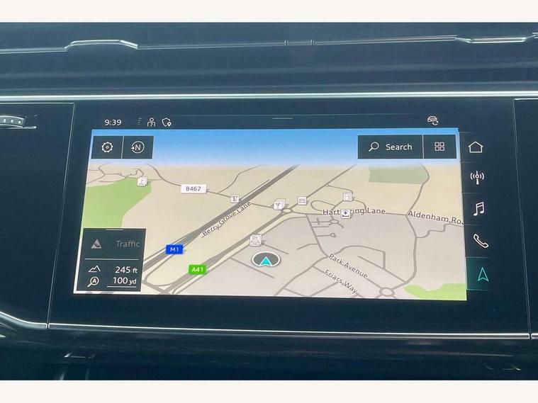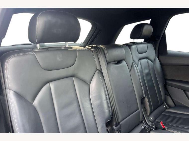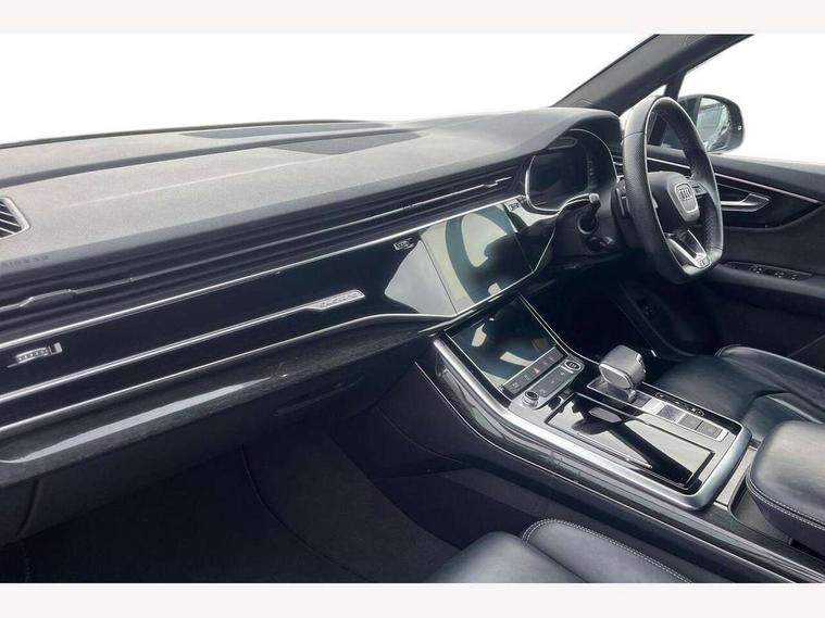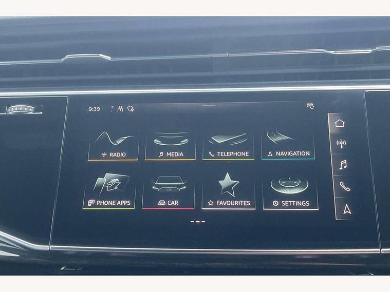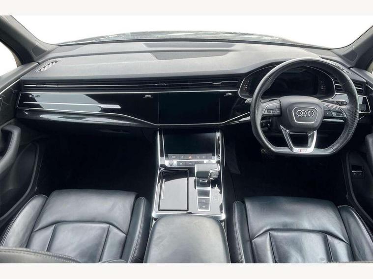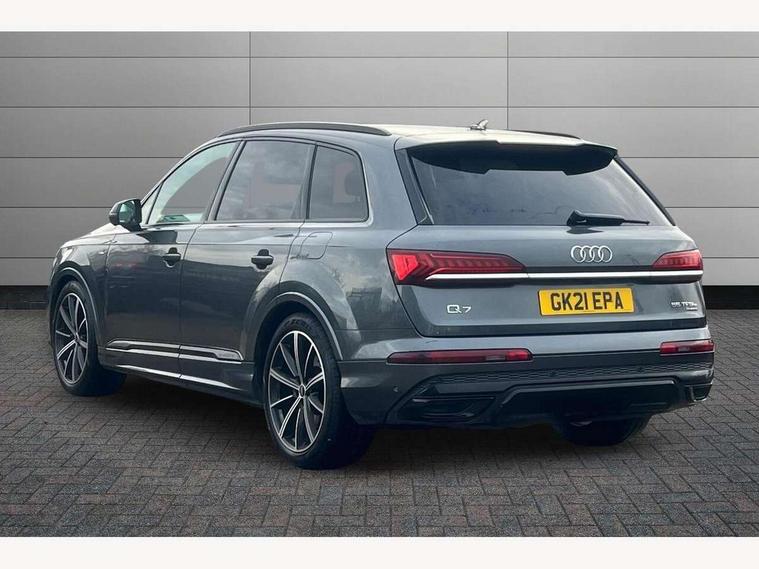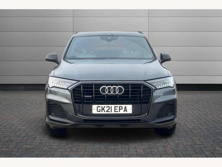 Audi connect safety and service (e-call), Audi drive select (Auto, Comfort, Dynamic, Efficiency, Individual, Off-road and All road), Audi phone box with wireless charging, Audi virtual cockpit - 12.3" high-resolution LCD display with fully customisable instrument cluster, Camera based traffic sign recognition, Electromechanical steering, MMI navigation plus with MMI touch screens includes 10.1" and 8.6" screens with haptic feedback, Natural voice recognition, Power operated tailgate, Smartphone interface includes wireless Apple carplay/Android Auto, Start/stop system, 3 pin 10 amp domestic charging cable, 75 litre fuel tank, Adaptive air sports suspension, Quattro all wheel drive with self locking centre differential, Type 2 mode 3 charging cable, Type 2 socket for AC charging, Audi music interface - front 2 USB-C ports with charger and data functions, DAB digital radio module, Audi matrix LED headlights with dynamic front and rear indicators, Auto dimming frameless rear view mirror, Black roof rails, Bumpers in contrast paint scandium grey finish includes door trim and wheel arch trim strips, inlays in door strip contain quattro embossing, Electrically adj heated/folding + automatically dimming exterior mirrors with memory + automatic kerb side function for passenger side exterior mirror, Heat insulating glass in windshield, Integrated LED indications in door mirrors, LED daytime running lights, LED rear tail lights, Privacy glass - dark tinted rear and rear side windows from B-pillar backwards, 4 zone deluxe automatic climate control, 5 seat layout with ISOFIX points for the front passenger seat and rear passenger seat, Black cloth headlining, Comfort front centre armrest, Folding rear seats, Front head restraints, Front/rear floor mats, Heated front seats, LED interior ambient lighting, Rear head restraints, Sunvisors with illuminated vanity mirrors, Comfort and sound pack with Bang + Olufsen premium sound system - Q7, Titanium black styling pack - Q7/SQ7, 3 point seatbelts on all rear seats, Acoustic vehicle alerting system, Audi pre sense front, Driver and front passenger, front side and curtain airbags, Electromechanical parking brake, Electronic Stabilisation Control (ESC) including ABS, ASR and EDL, Extended pedestrian protection measures, Hill hold assist, Seatbelt monitoring, Tyre pressure loss indicator, Warning triangle and first aid kit, Anti theft alarm, Anti-theft wheel bolts and wheel loosening detection, Keyless go with remote central locking, Polished oak trim with grey finish inlay, Tool kit, Tyre repair kit,