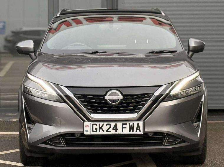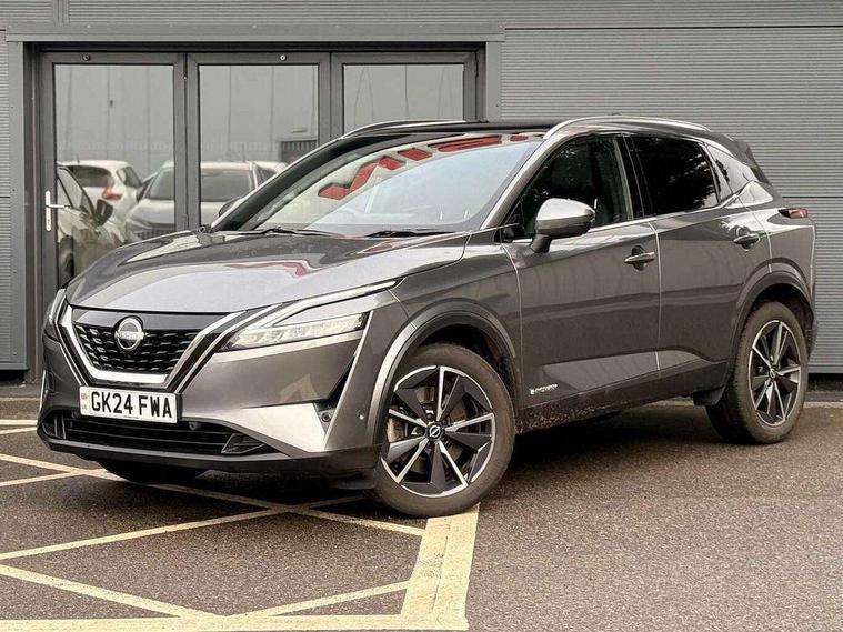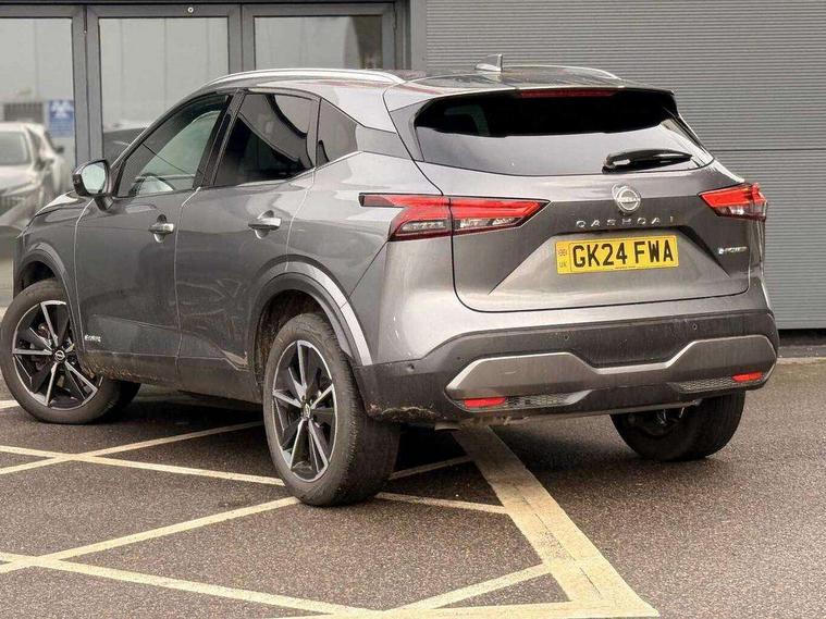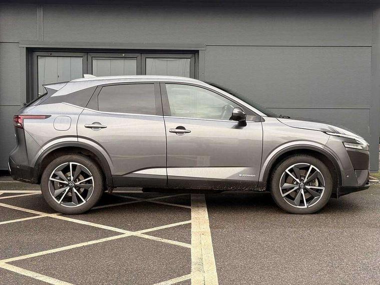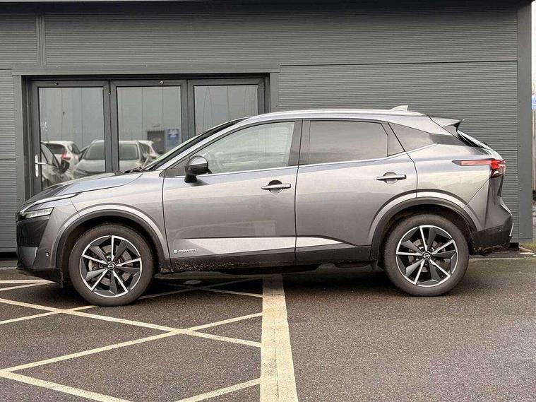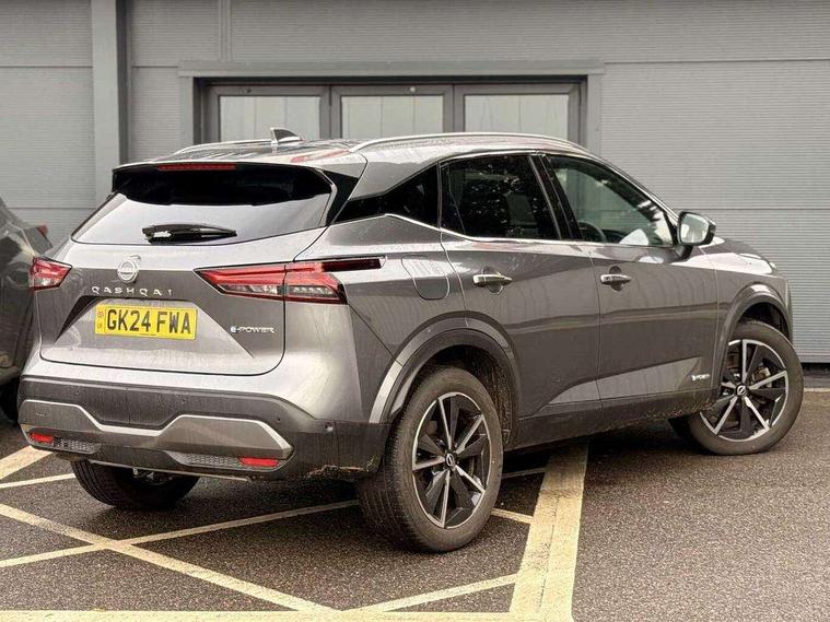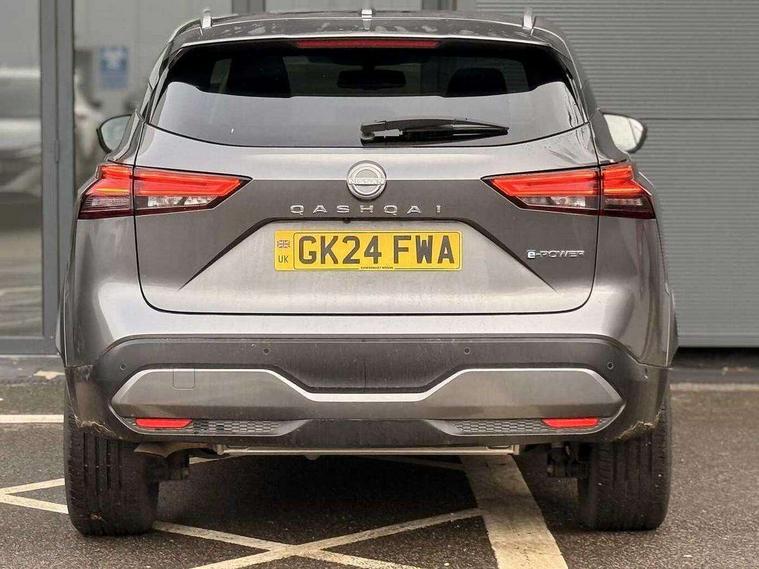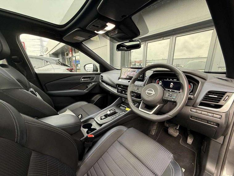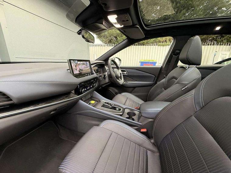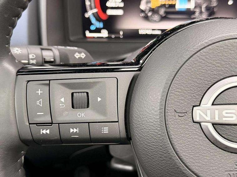 Advanced windscreen head up display, Blind spot warning, Drive modes (sport, normal, eco), e-Pedal step, Electric speed sensitive power steering, Emergency and breakdown call, Front and rear parking sensors, Full Digital 12.3" TFT Digital Combimeter, Google maps services - search, weather, 3D maps and Google street view, Hands free power tailgate, Idle stop/start system, Intelligent around view monitor, Intelligent Cruise control (ICC), Intelligent driver alert system, Intelligent forward collision warning, Intelligent lane intervention, Lane departure prevention, Lane departure warning system, Lane keep assist, Moving object detection, Nissan connect 12.3 inch touchscreen infotainment system, Nissan connect navigation, ProPILOT with Navi-Link, Push button starter, Rear cross traffic alert, Rear view camera, Remote control services - door locks, lights, horn and car locator, Telematics - notifications and connectivity services, TomTom live traffic services, Traffic sign recognition with legal speed adjustment, Trip computer, Virtual personal assistant and firmware over the air capability, Wireless Apple CarPlay and wired Android Auto, Wireless charging pad, 6 speakers, AM/FM audio system with DAB, Bluetooth audio streaming, Front USB connections (Type-A and Type-C), Rear USB charging only ports (Type-A and Type-C), Auto dimming rear view mirror, Auto rear wiper when reversing, Automatic hazard signal with emergency stop signal, Body colour mirror caps, Body coloured door handles, Bodyside mouldings, Chrome side window finisher, Door handle with button, e-POWER badging, Electric auto folding door mirrors, Electrically adjustable and heated door mirrors with LED turn indicator, Follow me home headlights, Front and rear LED turning signals, Headlights auto levelling system, Intelligent auto headlights, LED 3rd brake light, LED daytime running lights, LED headlights with adaptive driving beam, LED rear lights, One touch front and rear electric windows with remote opening and closing, Partially body coloured bumpers, Privacy glass, Rear bumper with graphite insert, Rear reversing light (bulb lighting), Rear roof spoiler, Rear side wing doors, Rear styling plate, Shark fin antenna, Splash free rain sensing wipers, Super UV and infrared cut glass, Thermaclear heated windscreen, Three blink turn signal, 12v power socket in dashboard and luggage, 2x Rear coat hooks, 3 bench rear seats in 2nd row, 3 rear headrests, 4 folding assist grip, 6 Luggage hooks - 4 on floor, 2 on side, 60/40 split folding rear seat bench, Ambient lighting around centre console, Ambient lighting in front doors, Centre console storage tray, Chrome interior door handles, Cloth/syntech leather monoform upholstery, Dark black/blueish PVC wrapping, Dark headlining, Driver and front passenger sunvisors with illuminated vanity mirrors, Driver seat back pocket, Dual zone automatic climate control with pollen filter, e-POWER shifter, Electrically adjustable driver seat, Electrically adjustable lumbar support for driver, Front and rear door storage, Front centre console and armrest, Front cupholders x 2, Front door with bottle holders, Glovebox with light, Hard trunk cover, Heated front seats, Heated steering wheel, Height adjustable driver's seat, Height adjustable front headrests, Height adjustable passenger seat, Leather steering wheel, Luggage board system, Luggage space lighting, Manual lumbar support on passenger seat, Manually adjustable passenger (slide recline + lifter), Multifunction steering wheel, Passenger seat back pocket, Rear armrest with 2 cupholders, Rear door bottle holders, Single front passenger seat, Soft PVC kneepad, Steering wheel switches, Tilt/telescopic adjustable steering wheel, Two rear isofix child seat anchorage points with top tether, Welcome light and doors with console tray ambient lighting, Glass roof pack with roof rails - Qashqai, 3x3 point rear seatbelt pretensioners + load limiters, ABS with EBD and brake assist, Active brake limited slip, Auto hold function, Child locks on rear doors, Curtain and front side, far side airbags, Driver and passenger airbags, Driver, passenger and 2nd row rear seat belt reminder, Electronic parking brake, Front seatbelt pretensioners + load limiters, Height adjustable front seatbelts, Hill start assist, Intelligent blind spot intervention, Intelligent front emergency braking with pedestrian, cyclist recognition and junction assist, Intelligent rear automatic braking, Tyre pressure monitoring system, Vehicle dynamic control, Capless fuel filler, Engine immobiliser, Intelligent Key, Remote central door locking with deadlocking, Thatcham Cat.1 alarm, Interior instrumental panel C finisher, 19" Diamond cut alloy wheels, Tyre puncture repair kit,
