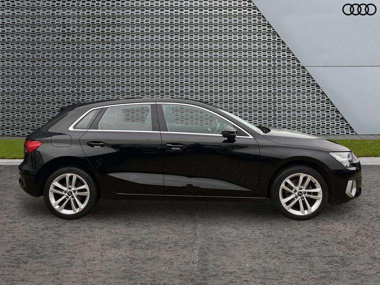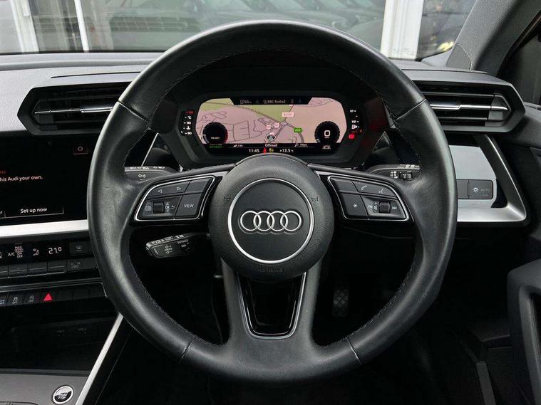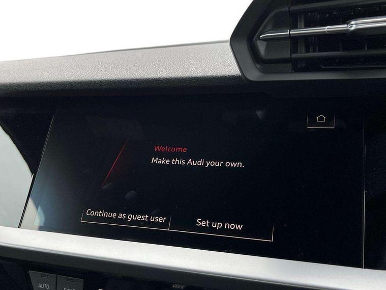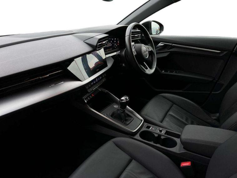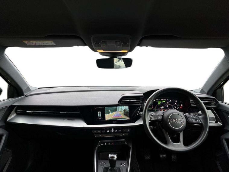 Audi drive select (Auto, Comfort, Dynamic, Efficiency and Individual), Audi smartphone interface, Audi Virtual Cockpit - 10.25" digital and colour instrument cluster, Automatic start/stop system with recuperation, Bluetooth interface, Collision avoidance assistant, Cruise control, e-Call (emergency call), Electromechanical power speed sensitive steering, Lane departure warning system, MMI Navigation Plus with high resolution 10.1" colour touch screen display, Rear parking sensors, Service indicator, Trip computer, Voice control system with natural language interaction, Standard suspension, 2xUSB-C connection with data and charging functions, 6 passive loudspeakers, DAB Digital radio, 3rd brake light, Acoustic glass windscreen, Aluminium window trim, Auto dimming frameless rear view mirror, Body colour exterior mirrors, Body colour roof spoiler, Electrically adjustable/heated/folding/auto dimming door mirrors with integrated LED indications + kerb view function for passenger side, Front electric windows, LED daytime running lights, LED headlights and halogen rear lights, Light and rain sensors, Rear electric windows, Rear side wing doors, Rear window, rear door windows and rear side windows in clear glass, Rear wiper, 12V socket and storage compartment in front centre console, 3 seat bench in 2nd row, 40/20/40 split folding rear seat bench with cupholder, Dual zone electronic climate control, Front and rear centre armrest, Front and rear headrests, Front door sill trims with aluminium inlay, Front/rear floor mats, Height and reach adjustable steering wheel, Interior lighting - Front and rear roof module including reading lights, glove compartment light and right hand side, Luggage compartment floor covering, Manual boot compartment lid, Manually adjustable front seats, Seat side bolsters, Single front passenger seat, Steel grey cloth headlining, Twin leather upholstery, Aluminium interior elements pack - A3 Sportback, Sport styling pack - A3 Sportback, 3x3 point rear seat belts, Audi pre sense front, Driver and front passenger airbag with passenger airbag deactivation, Electronic Stabilisation Control (ESC) including ABS, ASR and EDL, First aid kit with warning triangle and 2 safety vests, Front side airbags with head airbags and interaction airbag, Pre-sense front with pedestrian and cyclist detection, Seatbelt monitoring, Tyre pressure loss indicator, Anti theft alarm, Anti-theft wheel bolts, Electronically operated child lock, Immobiliser, Remote control central locking, Inlays with silk effect paint in platinum grey,