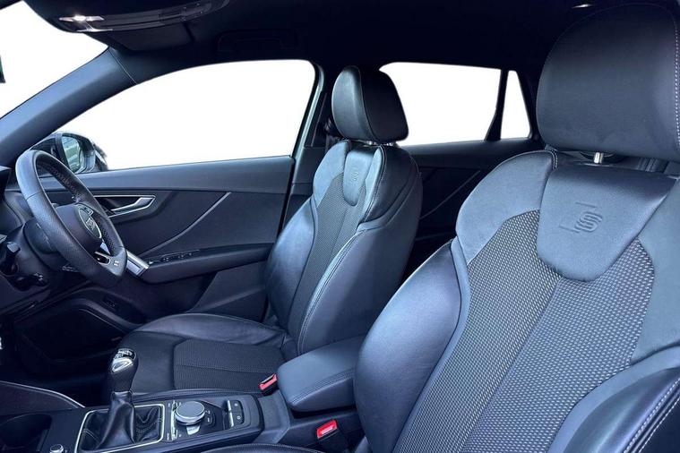 Audi connect navigation and infotainment includes innovative services, Audi connect remote and control connects your vehicle to your smartphone, Audi drive select, Audi drive select with efficiency, Audi smartphone interface, Audi virtual cockpit, Automatic start/stop system with recuperation, Bluetooth interface includes bluetooth audio streaming, Cruise control, E-call, MMI navigation plus with MMI touch, Power operated tailgate, Progressive steering, Rear parking sensors, 2 x SDXC card reader, 6 passive loudspeakers, DAB Digital radio, DVD Drive, Auto dimming rear view mirror, Black window trims, Bumper in full body colour paint finish, Electrically adjustable, folding, auto dimming and heated door mirrors with integrated LED side indicators, Front windscreen with grey tinted sunband, LED daytime running lights, LED headlights with LED rear lights, LED third brake light, Privacy glass - dark tinted rear and rear side windows from B-pillar backwards, Rear side wing doors, Rear wiper, Variable front intermittent wipers, Wheel arch trims in manhattan grey, 12V socket in front, 3 seat bench in 2nd row, 3 spoke flat bottomed multi-function leather sport steering wheel, 4-way electric lumbar support for front seats including seat height adjustment for both front seat, 60/40 split folding rear seat bench, Black cloth headlining, Front and rear head restraints, Front centre armrest, Front/rear floor mats, Height/reach adjust steering wheel, Illuminated door sill trims with S logo, ISOFIX child seat mounting in front passenger and rear outer seats, Single front passenger seat, Stainless steel pedals, Black styling pack - Q2, 3x3 point rear seatbelts, 6 airbags - Front, curtain and front side airbags, Electromechanical parking brake, Electronic stabilisation control including ABS, ASR and EDL, Front passenger airbag deactivation, Hill hold assist, Pre-sense front with pedestrian recognition, Seatbelt monitoring, Tyre pressure warning light, Warning triangle and first aid kit, Anti theft alarm, Anti theft wheel bolts, Electronically operated child locks, Remote central door locking, Aluminium interior element, Matt brushed aluminium trim inlays, Tool kit,