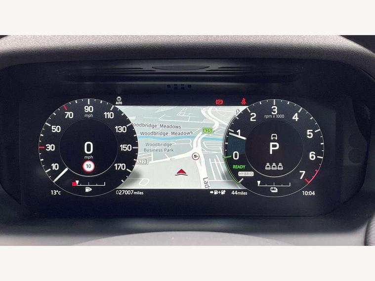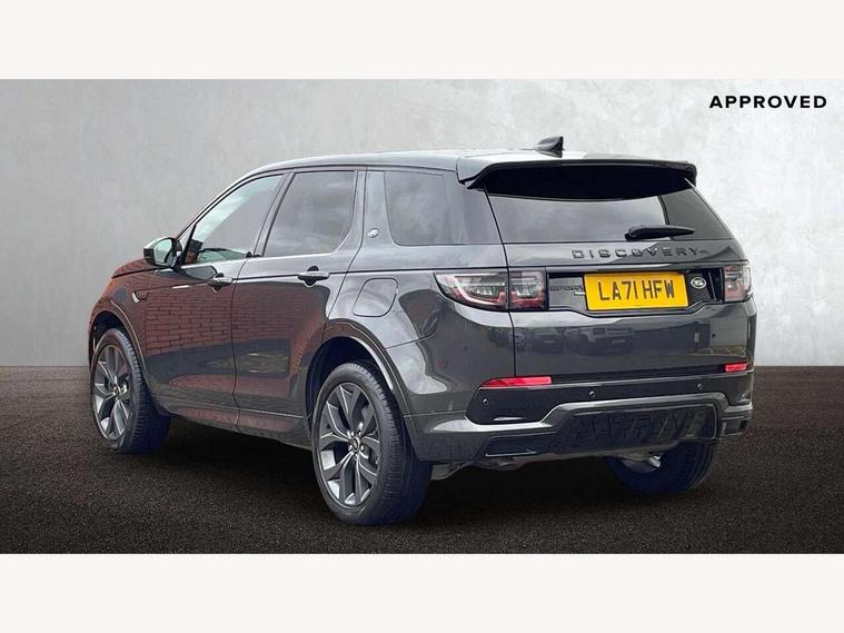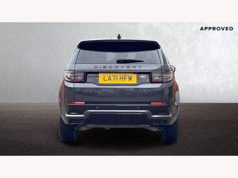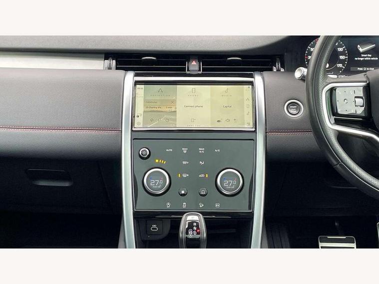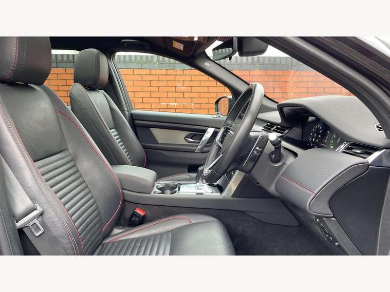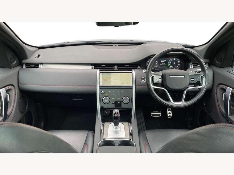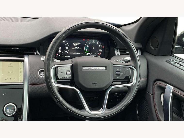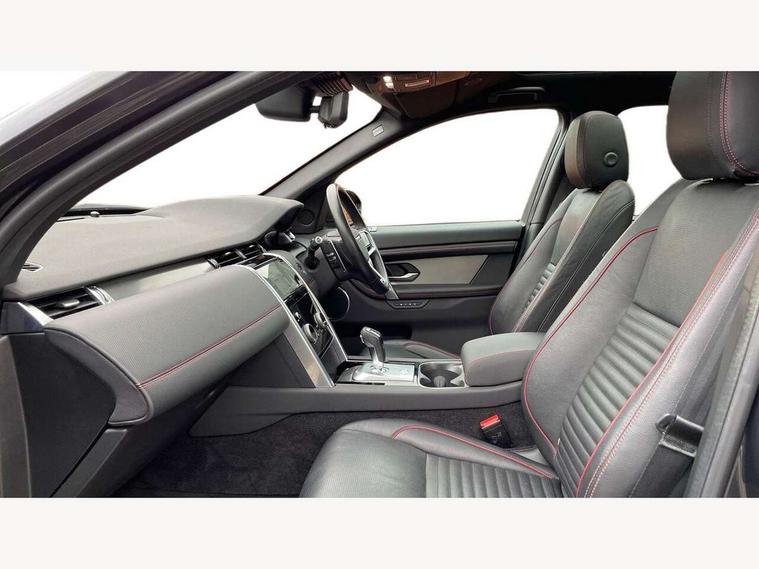 10" touch screen, Adaptive cruise control, Android Auto, Apple CarPlay, Blind spot assist, Clear exit monitor, Driver condition monitor, eCall emergency call system, Front and rear parking aid, InControl remote premium, Lane keep assist, Locking fuel flap, PAS, Pivi Pro connected navigation system with upgraded Infotainment, Powered tailgate/boot lid, Push button start, Rear collision monitor, Rear traffic monitor, Service interval indicator, Traffic sign recognition with adaptive speed limiter, Trip computer, Wade Sensing, 7 kW onboard charger, All terrain progress control, Coil suspension system, Dynamic stability control, Home charging cable, Public charging cable, Terrain Response 2, Bluetooth connectivity including audio streaming, Digital Audio Broadcast radio-DAB, Steering wheel mounted audio controls, 3rd brake light, Automatic headlight levelling, Automatic headlights, Electric front/rear windows, Electric heated/power fold door mirrors with approach lights and auto dimming driver side, Fixed panoramic sunroof with powered sunblind, Front and rear recovery eyes, Heated rear window, Heated windscreen including heated washer jets, Privacy glass, R Dynamic badge, Rain sensing windscreen wipers, Rear fog lights, Rear side wing doors, Rear wing door, Rear wiper, 5 seats, Bright metal pedals, Centre console with armrest, Footwell lights, Front and rear grab handles, Front passenger isofix child seat attachment, Loadspace cover, Loadspace light, Overhead lighting console, Overhead stowage for sunglasses, Rear headrests, Satin chrome gearshift paddles, Sunvisors with illuminated vanity mirrors, Tilt/reach adjustable steering wheel, Black exterior pack - Discovery sport R-Dynamic SE/HSE, Online pack with data plan - Discovery, 3 point seatbelts on all seats, ABS, Brake hold function, Child locks on rear doors, Collision mitigation braking system, Cornering brake control (CBC), Driver/Front Passenger airbags, Drivers knee airbag, Electronic brake force distribution, Electronic parking brake, Emergency brake assist, ESP + traction control, Hill descent control, Hill launch assist, Pedestrian airbag system, Rear seat ISOFIX, Roll stability control, Side and curtain airbags for front and 2nd row seats, Trailer stability control, Tyre pressure monitoring system, Battery Back Up System (BBUS) with tilt sensor, Global lock and unlock switch on driver door, Intrusion sensor, Keyless entry, Locking wheel nuts, Centre stack rails in noble chrome,