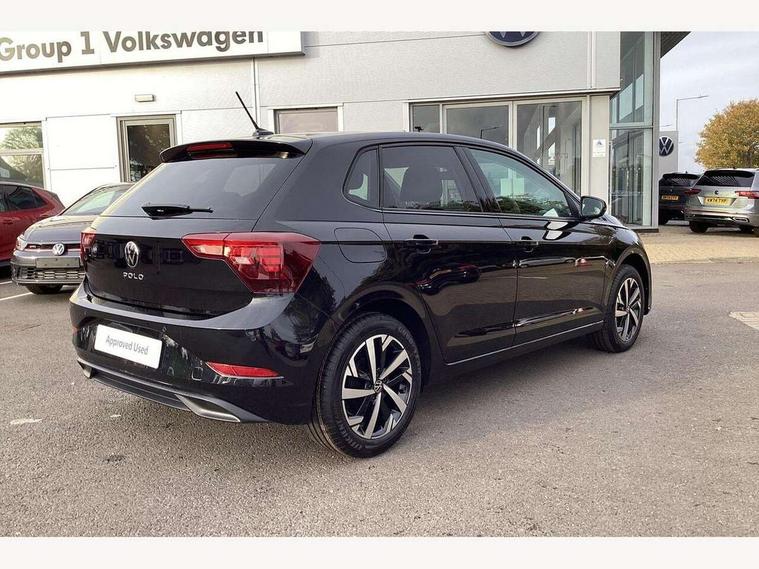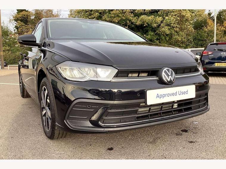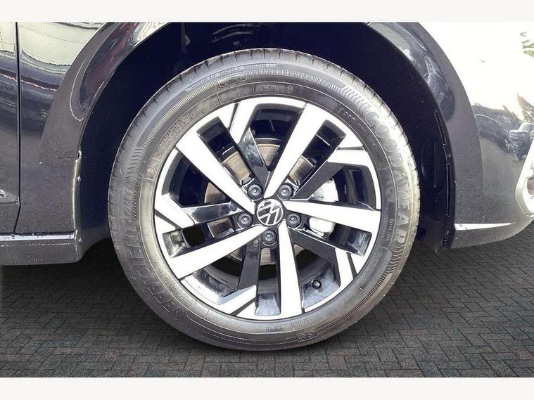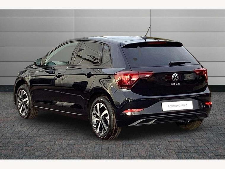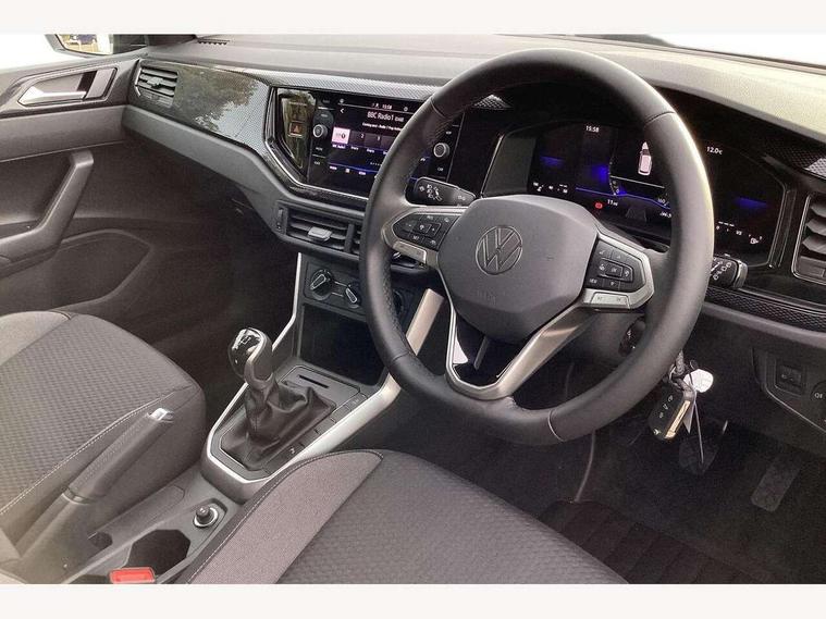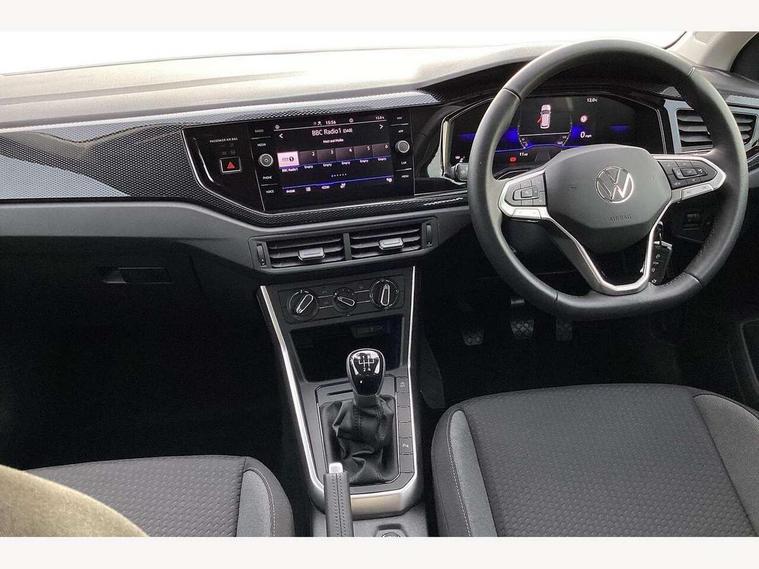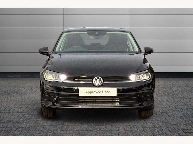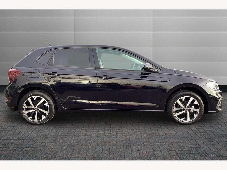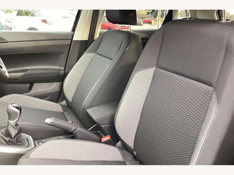 Adaptive cruise control without follow-to-stop and speed limiter, Advanced driver attention and drowsiness monitor, Bluetooth mobile phone interface, Dynamic road sign display, Emergency call service, Multifunction front facing camera for distance control, Power assisted speed sensitive steering, Preparation for navigation system with media and internet package, Preparation for We connect and We connect plus, Rear view camera, Speedo and rev counter, electronic odometer, trip, service interval display and exterior temperature gauge, Standard rear axle, Travel Assist - Lane keeping system and traffic jam assist, Travel assist including emergency assist, Trip computer, Warning signal and warning light for front and rear seatbelts not fastened, Washer fluid level indicator, Wireless app connect, Front wheel drive, Rear shock absorpion, Start-stop system with battery regeneration (recuperation - energy recovery during braking), DAB Digital radio, Diversity antenna for FM reception, Automatic dimming interior rear view mirror, Automatic headlight control with LED separate daytime running lights with coming/leaving home function, Body colour bumpers with chrome inserts, Body colour door handles, Body colour door mirrors, Electric front windows, Engine badge deletion, Headlight range adjustment, Heat insulating and laminated safety glass windshield, LED Headlights, LED rear combination lamps, Power folding adjustable/heated exterior mirrors and front passenger exterior mirror lowering function, Rain sensor, Rear electric windows, Rear fog light, Rear side wing doors, Rear tinted glass from B-pillar backwards approx 65% tinted, Rear windscreen washer and wiper with interval delay, Third brake light, 12V power socket in centre console, 2 front and 2 rear reading lights with switch off delay and dimmer, 2 USB-C ports in the front, 2 USB-C charging sockets on the center console in the rear, 3 rear head restraints, 60/40 split folding rear seat and rear seat bench not split, Ceramique roof lining, Chrome plated radiator grille inserts, air vent surrounds and light switch surrounds, Door and side trim panel, Driver and front passenger seat height adjustment, Driver/passenger sunvisors with illuminated vanity mirrors, Front centre armrest, Front seat backrest storage pockets, Front standard seats, Handbrake lever handle in leather, Hartley/Thomas cloth upholstery, Headliner in recycled material, Isofix child seat preparation easy-fit (for two outer rear seats, and front passenger seat) compatible with I-size, Leather trimmed gear knob, Luggage compartment cover, Luggage compartment lighting, Removable luggage compartment floor, Single front passenger seat, Standard climatic zones, Standard pedal cluster, Three spoke leather wrapped multifunction steering wheel, Light and vision pack - Polo, 3 point height adj front seatbelts + pretensioners, 3 point seat belt for centre rear seat, 3 point seatbelts, outer rear with ECE lable, ABS, Driver and front passenger airbag with front passenger airbag deactivation, Drivers and front passengers safety optimised head restraints, ESC (Electronic stability control) + EDL (Electronic Differntial lock) and ASR (Traction control), Extended and predictive pedestrian/ cyclist protection, Front assist with autonomous emergency braking (for Adaptive Cruise Control ACC up to 130 mph), Front curtain and side airbags with center airbag, Front disc brakes, Hill hold control, Manual child lock in rear doors, Rear drum brakes, Single tone horn, Tyre pressure loss indicator, Alarm with interior protection, Anti-theft alarm system with interior monitoring, backup horn, and towing protection, Anti-theft wheel bolts, Electronic engine immobiliser, Lava stone black gloss/matt decorative inserts in dash and front door panels, 16" Torsby alloy wheels, Low rolling resistance tyres,