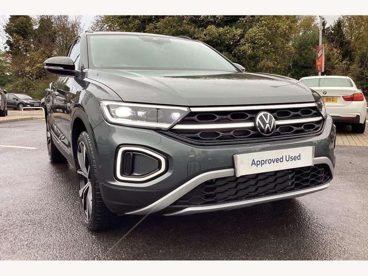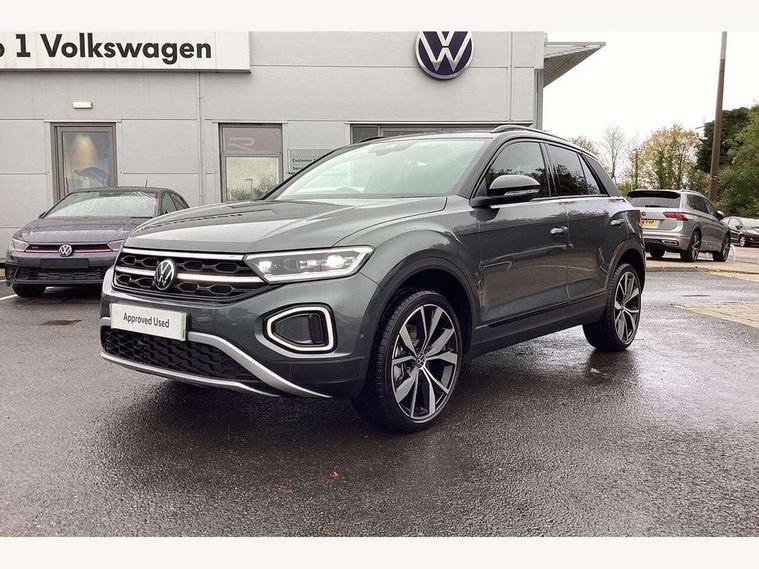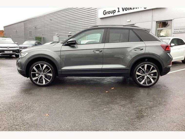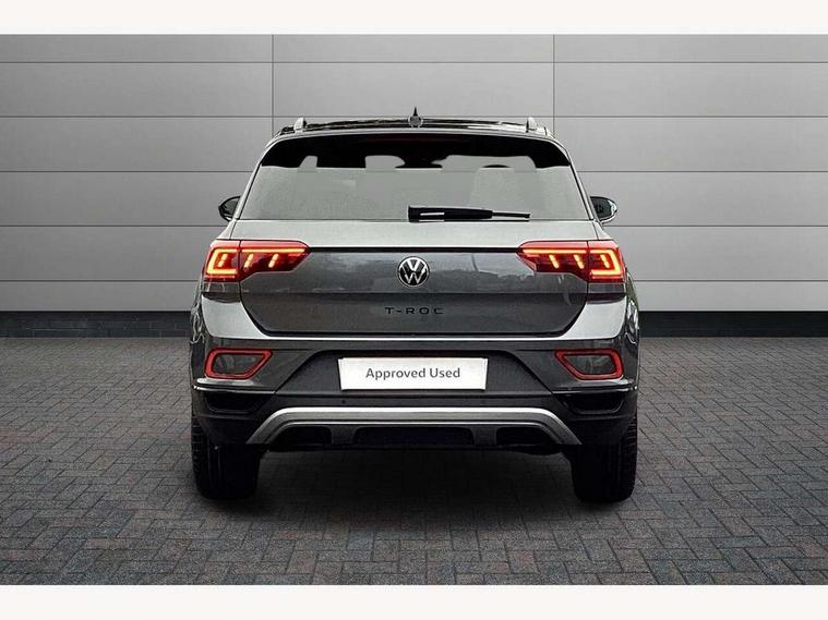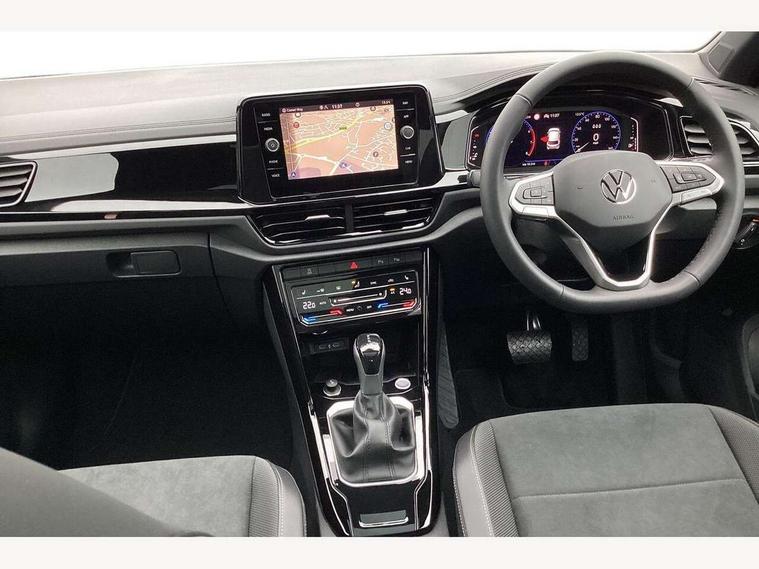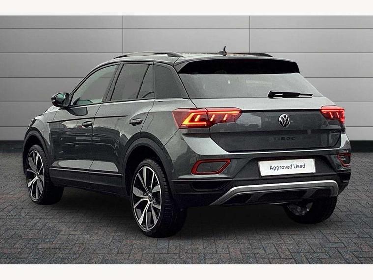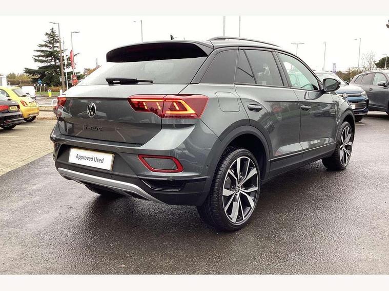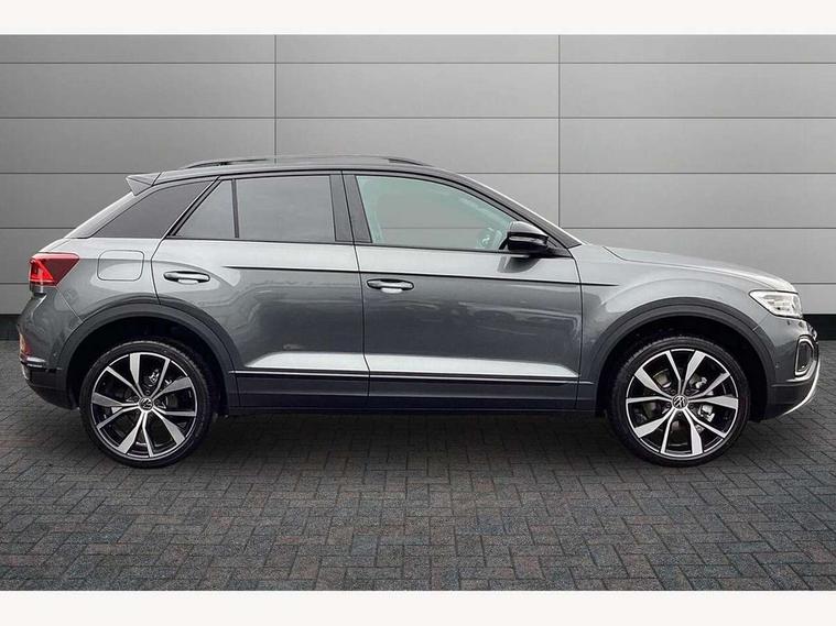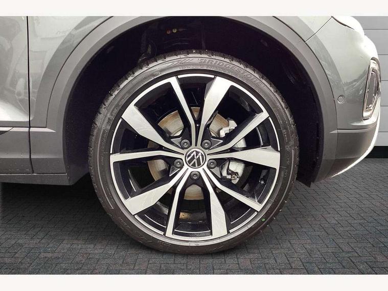 10.25" Digital cockpit pro, Advanced driver attention and drowsiness monitor, Dynamic road sign display, Emergency call service, Lane keeping system Lane Assist, Mobile phone interface, Modified key software - reduce switch off time for key status change to Long no motion, Online services, Park assist including front and rear parking sensors, Power assisted speed sensitive steering, Rear view camera, Service interval indicator, Tailgate/trunk lid release from outside, Think blue trainer driver tips and journey analysis, Warning sound and light for front seatbelts unfastened, Wireless app connect, Battery regeneration during braking, Front shock absorption, Rear shock absorption chassis with increased ride height, Start/stop function with battery regeneration, DAB Digital radio, Diversity antenna for FM reception, Music playback - MP3, WMA and AAC files, Premium USB cable in choice of either Apple or Android smartphone compatibility, SD card slot, Simultaneous pairing of 2 compatible mobile devices, Title and cover art display, We Connect and We Connect Plus functionality, Adhesive film in carbon look on the C-pillars, Advanced dynamic light assist for LED matrix headlights, Auto dimming interior rear view mirror, Automatic hazard lights activation under emergency braking, Black roof rails, Body colour sports bumpers with silver metallic underbody fascia, Body coloured exterior mirror housings and door handles, Dynamic cornering light, Dynamic headlight range control with self adjusting whilst driving, Electrically adjustable and heated door mirrors, Extended roof spoiler, Exterior ambient lighting, Exterior mirrors aspherical on driver side, convex on front passenger side, External USB type C socket and charging sockets, Front windscreen wiper with intermittent wipe and 4 position delay, Heated rear window, Illuminated front grille, IQ LED matrix headlights, LED 3rd brake light, LED rear number plate lights, LED rear tail lights with dynamic turn signal, LED separate daytime running light, Light mode for poor weather, rain, fog or snow, Power windows with comfort operation and circuit breaker, Privacy glass for rear side windows and rear window, Rain sensor, Rear exhaust tailpipe, Rear fog light on one side and reversing lights on both sides, Rear side wing doors, Rear wash/wipe with intermittent wipe setting, Remote electrically foldable door mirrors, puddle lights and reverse activated passenger's door mirror, Tilting and sliding panoramic sunroof with rear panoramic sunroof, 12V power socket in centre console, 3 rear head restraints, 3 seat bench in 2nd row, 4 load lashing points in luggage compartment, Air care climatronic air conditoning system with active combination filter and 2-zone temperature control, Black roof lining, Chrome plated radiator grille inserts, air vent surrounds and light switch surrounds, Door and side trim panel with leatherette insert, Drawer under drivers seat, Front + rear carpet mats, Front centre armrest, Front comfort sports seats, Front cupholders x 2, Front footwell illumination, Front seat back storage pockets, Glove compartment door with light, Instrument lighting, white adjustable panel illumination, Interior ambient lighting and surround lighting, Interior light delay, Isofix child seat preparation, Leather gearshift handle, LED interior light with switch off delay/dimmer and 2 front/rear LED reading lights, Load-through provision with cup holder when folded down ('Unsplit rear seat bench, split folding backrest, with centre armrest), Luggage compartment lighting, Non-folding front passenger seat backrest, Single front passenger seat, Storage compartment in left and right luggage area, Storage compartment in rear doors, Storage compartments in driver and front passenger doors, Sunvisors with illuminated vanity mirrors, Variable boot floor, height adjustable and removable, Black design pack - T-Roc style design, Driver assistance pack without proactive passenger protection - T-Roc, Easy open package with safelock - T-Roc, 3 point height adj front seatbelts + pretensioners, 3 point seatbelts in outer rear with ECE label, ABS, Child locks on rear doors, City emergency braking and pedestrian monitoring, Driver and front passenger airbag with front passenger airbag deactivation, Driver and front passenger safety-optimised head restraints, Drivers seatbelt reminder, Electronic parking brake, Electronic Stability Control (ESC) inc EDL (Electronic Differential Lock) and ASR (Traction Control), Front and rear passengers curtain airbag system including front side airbags, Front disc brakes, Predictive pedestrian protection, Rear disc brakes, Two tone horn, Tyre pressure loss indicator, Volkswagen roadside assistance, Keyless locking and starting system keyless access with safelock, Black decorative trims, Piano black decorative inserts in dashboard and front door trim panels, Tool kit, Trims for alloy wheels, Tyre mobility kit including compressor and sealing foam,
