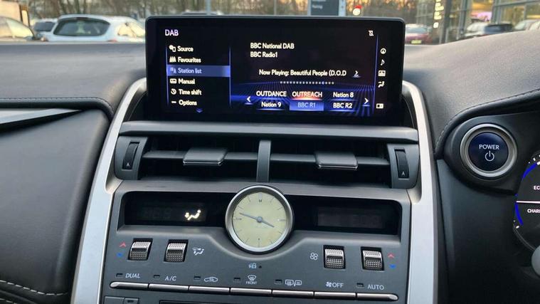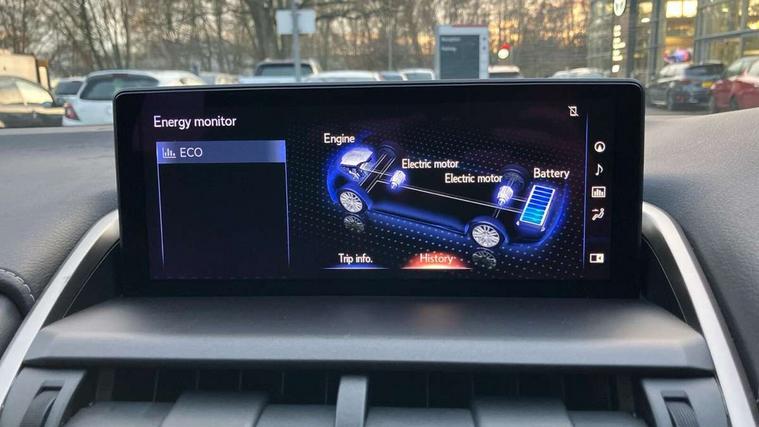 4 driving modes EV/Eco/Normal/Sport, 8" display screen with remote touch interface, Analogue clock, Apple car play/Android Auto, Bluetooth telephone connectivity, Electric speed sensitive power steering, Intelligent parking sensors - 4 front and 4 rear, Lane change flasher function, Lexus link connected services with available optional wifi, Lexus navigation system, Push button starter, Reversing camera, All wheel drive system, Vehicle Dynamics Integrated Management (VDIM), Vehicle Stability Control (VSC), 2 USB ports, 8 Speakers, AUX socket with VTR compatibility, CD player, DAB Digital radio, Auto dimming interior rear view mirror, Bi LED headlight with Auto high beam, Body adhesive, laser screw welding and laser brazed roof structure, Front and rear one touch power windows, with anti-jam protection, Heated and auto folding door mirrors with turn indicators, Hidden exhaust pipe, LED brake lights and rear lights with emergency brake signal, LED daytime running lights, LED front and rear sequential indicators, Rain sensor windscreen wipers, Roof rails, 12V accessory port centre console and luggage compartment, 2 cupholders in front centre console, 2 map pockets in the rear, 2 x fixed shopping bag hooks in boot, 2 x sun visors with vanity mirror and lamp, 6 tie down hooks in boot, 60/40 split folding rear seat, 8 way driver/passenger electrically adjustable front seats, Adjustable rear seat backrest, Card holder installed in driver and passengers sun visors, Centre armrest with storage box, Dual climate control air conditioning system, Front and rear head restraints, Front and rear textile carpet mats, Heated front seats, Leather gear lever, Leather steering wheel with paddle shifts, LED interior illumination, Rear air vents, Rear centre armrest with 2 cupholders, Self charging hybrid, Tahara leather upholstery, Whiplash Injury Lessening (WIL) feature (active headrest) for seats, 2 x Isofix child rear seat restraints, 3 point ELR front seatbelts with pretensioners, 3x3 point rear seat belts, ABS, Adjustable seat belt anchor points, Driver and front passenger 2 stage airbag, Driver/front passenger side airbags, Drivers knee airbag, EBD + Brake Assist, ECB (Electronically Controlled Brake System), Electronic parking brake, Front and rear curtain shield airbags, Front passenger seat cushion airbag, Hill start assist, Hybrid automatic with 6 stage sequential shift and kick down switch, Lexus safety system - dynamic radar cruise control, pre collision system day and night, lane tracing assist, road sign, automatic high beam, OTA, Passenger airbag cut-off device, Traction control, Tyre pressure warning, 2 x remote key fobs, Anti-theft system with siren, alarm, intrusion sensor, glass breakage sensor, tilt sensor and engine immobiliser, Locking wheel nuts, Speed sensitive auto door locking, Two motion door lock with double lock, VIN Window etching, Silver inlays, Space saver spare wheel,