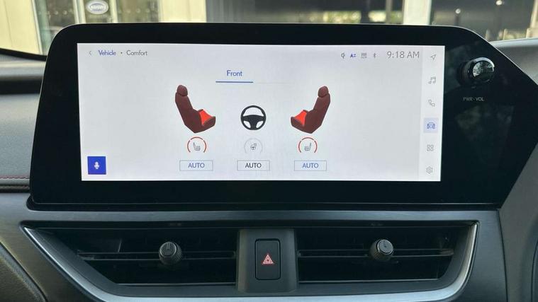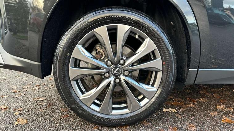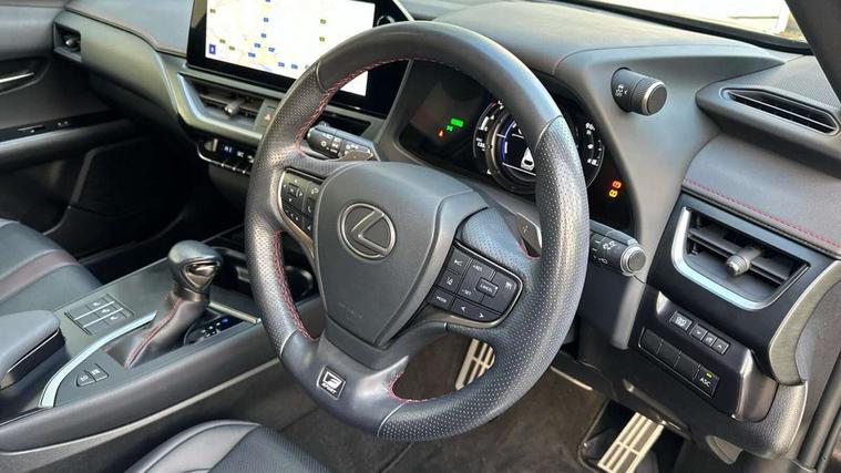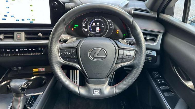 4 driving modes EV/Eco/Normal/Sport, 7" Lexus media display, 8" LFA inspired TFT meters with movable meter ring, Analogue clock with GPS function, Apple car play/Android Auto, Compatible mobile phone bluetooth with audio streaming, E-call, Electric power steering (EPS) with speed sensitive features, Front and rear parking sensor with intelligent clearance sonar, Lane change flasher function, Lexus link connected services, Lexus navigation system, Lexus safety systems + includes dynamic radar cruise control, pre collision system day and night, lane tracing assist, road sign assist, Push button start, Remote touch interface, Reversing camera with back guide lines, Trip computer, F Sport suspension tuning and rear performance dampers, Vehicle Dynamics Integrated Management (VDIM), Vehicle Stability Control (VSC), 2 front USB and 2 rear USB charging points, 6 speakers, AM/FM and DAB radio, AUX socket with VTR compatibility, CD player, Acoustic windscreen, Aero stabilising arch mouldings, Aero stabilising rear lights, Aero ventilated wheels, Aluminium roof rails, Auto dimming interior rear view mirror, Bi-LED (low and high beam) headlights with Auto High Beam (AHB), Black roof drip mouldings, Body adhesive, laser screw welding and laser brazed roof structure, Body coloured bumpers, Colour coded wheel arches, Electric adjustable/heated door mirrors, F SPORT exterior styling consists of black Mesh front grille, enhanced side rockers, metallic coated front bumper and F SPORT badging, Front and rear one touch power windows, with anti-jam protection, Headlight cleaners, LED cornering headlights, LED daytime running lights, LED front and rear fog lights, LED tail lights, LED third brake light, Privacy glass, rear doors and tailgate, Rain sensor windscreen wipers, Rear side wing doors, Rear wiper, Shark fin roof aerial, Single hidden exhaust pipe, Towing preparation, Variable front intermittent wipers, 12V accessory port centre console and luggage compartment, 2 cup holders in the front and rear centre console, 2 way electrical lumbar adjustment for driver, 2 x folding shopping bag hooks in boot, 2 x sun visors with vanity mirror and lamp, 3 seat bench in 2nd row, 4 x tie down hooks in the boot, 5 headrests, 60/40 split folding rear seat, 8 way driver/passenger electrically adjustable front seats, Active sound control, Card holder installed in driver and passengers sun visors, Centre armrest with storage, Driver and passenger door pocket, Dual zone electronic climate control + Nano-E humidity sensor, F Sport aluminium sports pedals, F SPORT dimpled leather gear lever, F SPORT front seat headrest adjustable forwards and backwards, F Sport interior styling, F Sport leather steering wheel with paddle shifts, Fabric/Tahara leather upholstery, Glovebox, Heated steering wheel, Illuminated entry system, LED interior illumination, Map pockets in the rear of passenger's front seat, Rear air vents with 2 USB chargers, Rear armrest with 2 cupholders, Single front passenger seat, Storage tray under audio panel, Textile carpet mats, Tilt/reach adjustable steering column, Under deck storage, Under desk side storage, 2 x Isofix child rear seat restraints, 3x3 point rear seatbelts, Anti-lock braking system (ABS), BAS (Brake Assist System), Driver and front passenger 2 stage airbag, Driver and front passenger knee airbag, Driver/front passenger side airbags, EBD - Electronic brakeforce distribution, ECB (Electronically Controlled Brake System), Electric child locks, Electric parking brake, Front adjustable seatbelt anchor points, Front and rear curtain shield airbags, Front outer seatbelt+pre-tensioners, force limiter+tension reduction: 3-point with active safety link to PCS, Hill start assist control (HAC), Passenger airbag cut-off device, Rear outer seatbelt+pre-tensioners, force limiter+tension reduction: 3-point with active safety link to PCS, Centre belt w/o pre tensioner+force limiter, Secondary Collision Brake (SCB), TRC (Traction Control), Tyre pressure warning, 2 x remote key fobs, Anti theft system : Alarm instruction sensor, glass breakage sensor and engine immobiliser, Locking wheel nuts, Remote central door locking, Speed sensitive auto door locking, Two motion door lock with double lock, VIN Window etching, 18" F Sport alloy wheels with run flat tyres,
