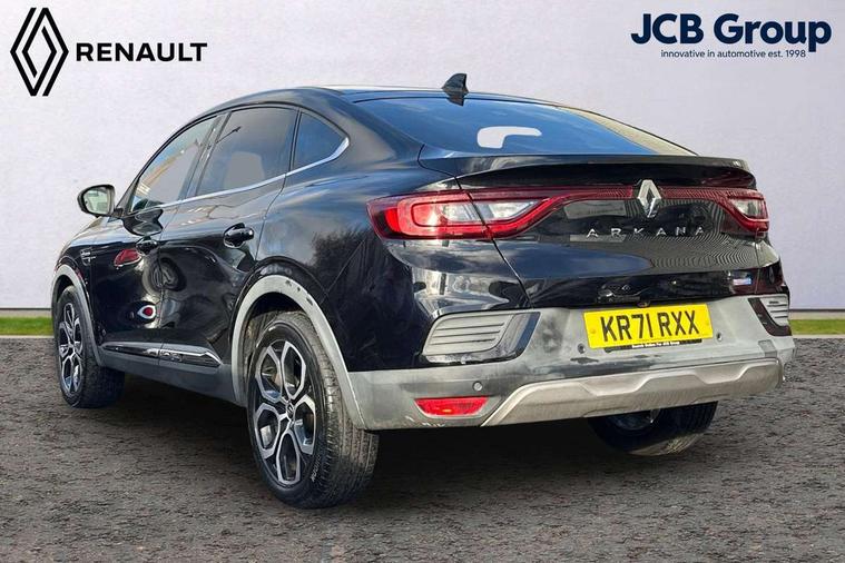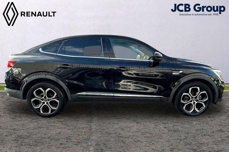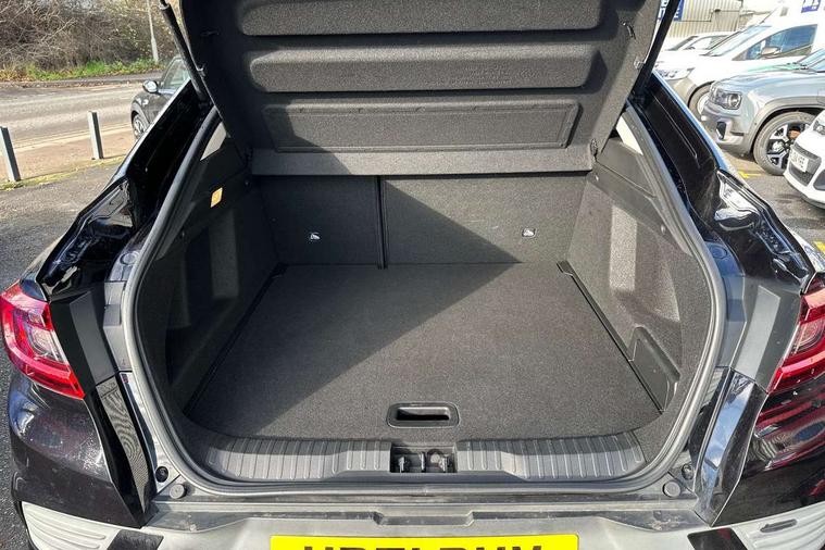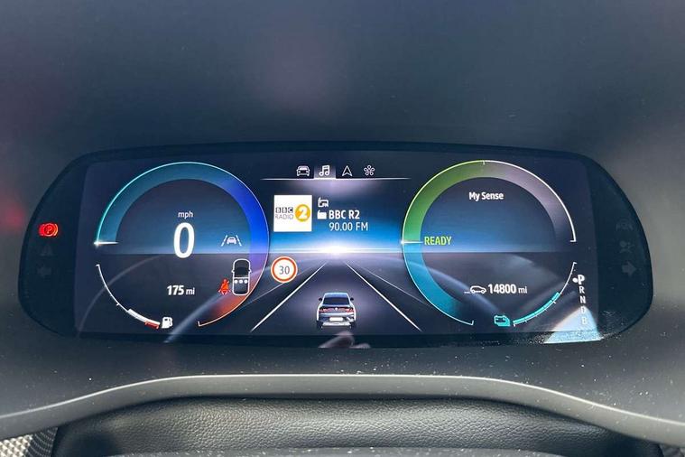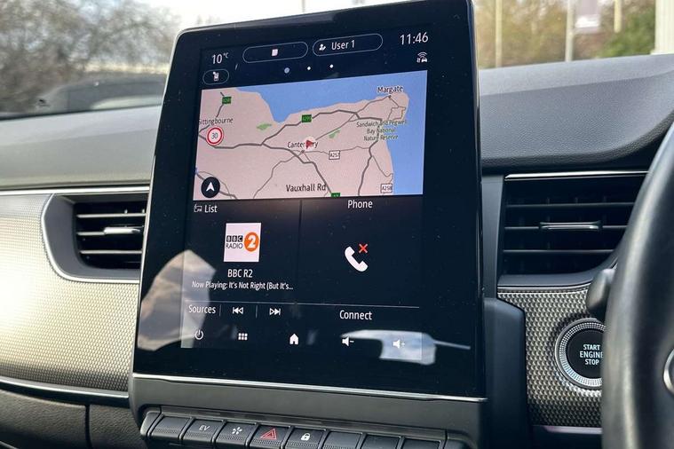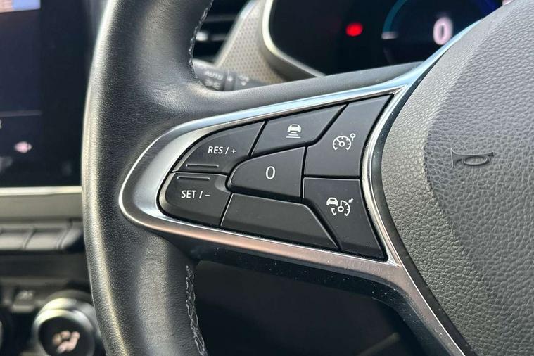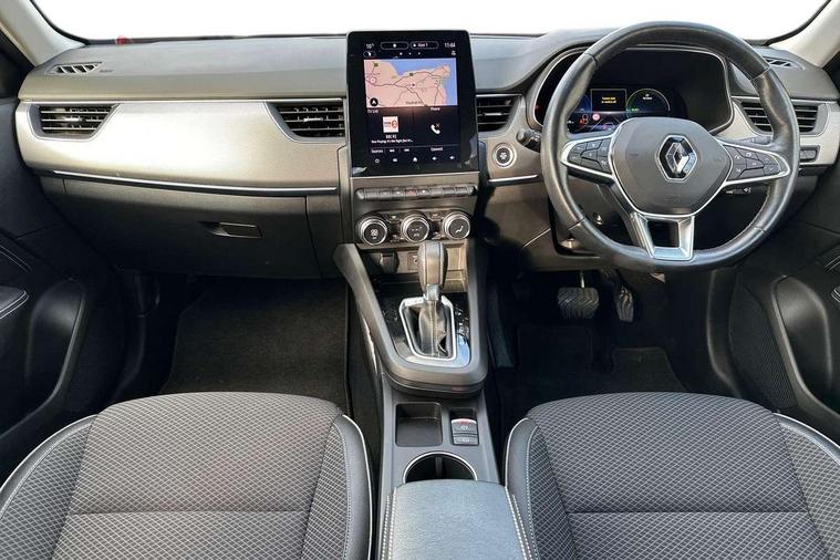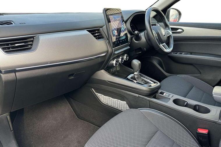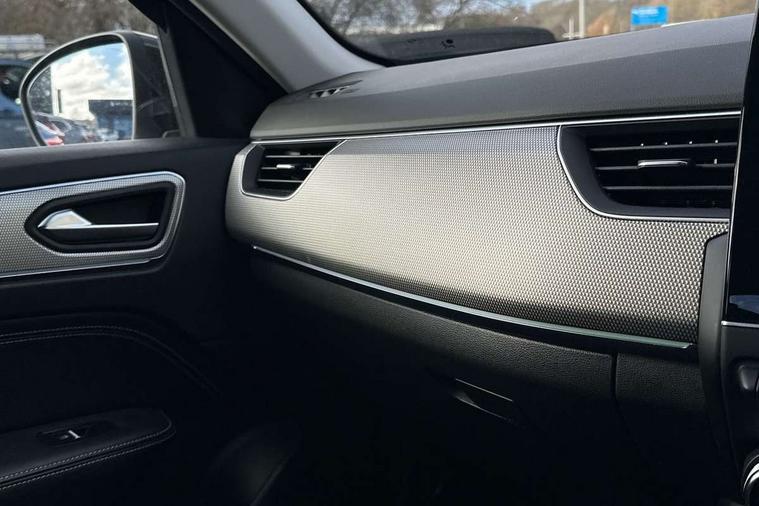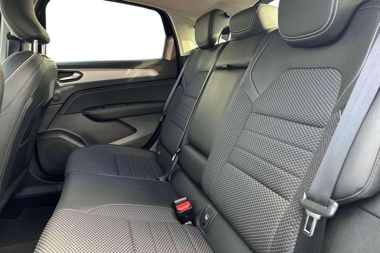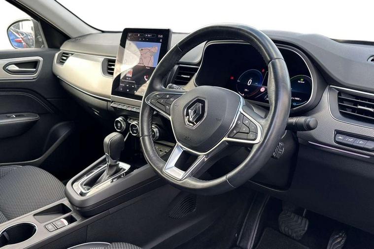 7" TFT Driver information display, Blind spot warning, Bluetooth system, EASY LINK 9.3" portrait touchscreen with navigation, Google search and traffic information, eCall emergency call system, Eco mode, EV button to activate pure mode, Front and rear parking sensors, Gear change indicator, Lane departure warning, Lane keep assist, Multi-sense - 3 driving modes and 8 ambient lighting, Rear cross traffic alert, Rear view camera, Renault automatic emergency assist, Smartphone integration compatible with Apple CarPlay and Android Auto, Traffic sign recognition with over speed prevention, Trip computer, Variable assistance electric power steering, Arkamys classic sound system with 6 speakers, DAB radio, USB port, 3rd brake light, Auto dimming rear view mirror, Automatic headlights, Automatic high / low beam, Automatic windscreen wipers with rain sensor, Black side door protection with chrome insert, Body coloured bumpers, C-shaped LED front signature lighting, Chrome decopart on wing (fender molding), Chrome window lower lining, Extra tinted rear windows and tailgate, Front and rear electric windows, Front driver window with one touch facility and anti-pinch function, Front grille with chrome on upper part, Full LED headlights, Grey front and rear skid plates, Heated rear window, Rain sensor, Rear windscreen wiper, Shiny black shark fin antenna, Side mirrors adjustable electrically, electrically foldable, with defrosting and temperature sensor, automatically foldable at vehicle closure, 3 seat bench in 2nd row, 60:40 split and fixed base rear seats, Automatic climate control with combined filter, humidity sensor and AQS, Central console with storage, Front and rear head restraints, Height and reach adjustable steering wheel, ISOFIX child seat fixing points on rear outermost seats, Leather steering wheel, LED front and rear roof lights, Rear air vents, Single front passenger seat, 3x3 point rear seat belts, ABS+EBA, Active emergency braking system, B Brake Mode - One pedal driving with increased regenerative braking, Distance warning alert, Driver airbag, Driver and passenger front and side airbag deactivation, Driver and passenger side airbags, Driver height adjustable seat belt, Electronic parking brake with auto hold, ESC (Electronic Stability Control), Front and rear no seatbelt warning sound, Front curtain airbags, Front head airbags, Hill start assist, Passenger airbag, Tyre pressure warning light, Anti drill door locks and locking fuel cap, Central door locking, Deadlocking system, Hands free keycard with Keyless access and start, RAID (Renault Anti-Intruder Device) automatic door locking, Rear side wing door and window child locking function (front driver door control panel), Superlocking, Thatcham alarm, 18" Pasadena diamond cut alloy wheels with grey inserts,