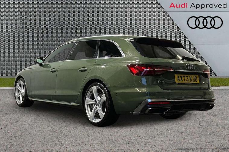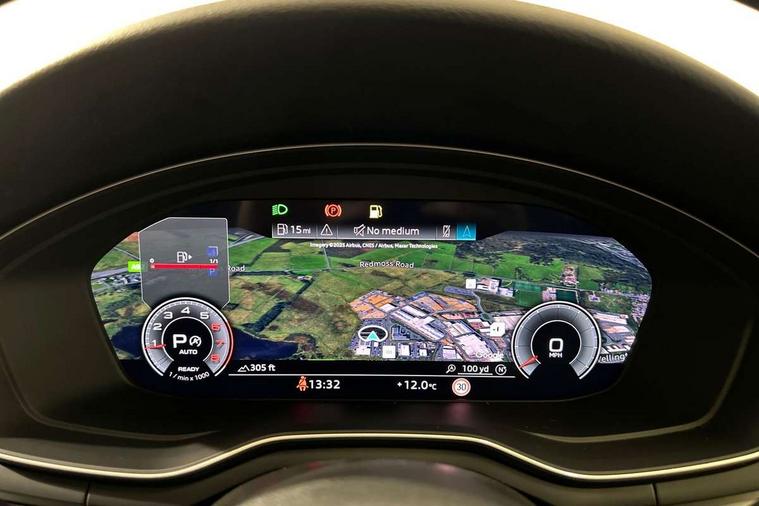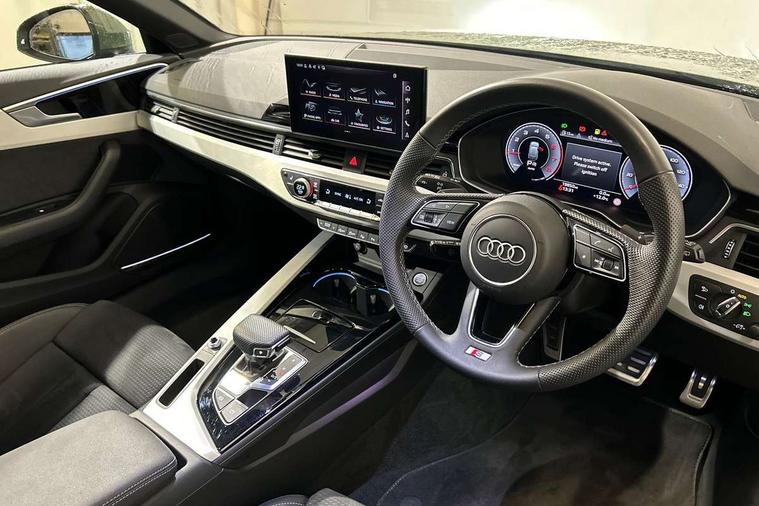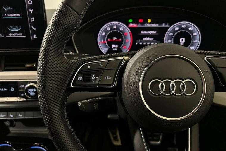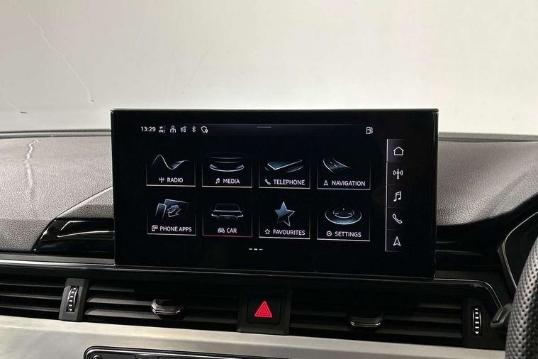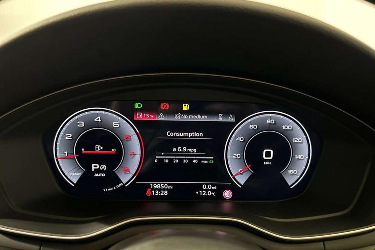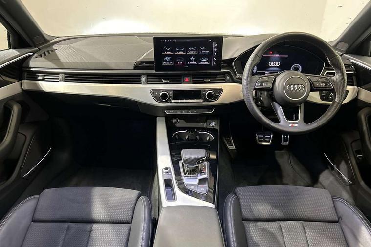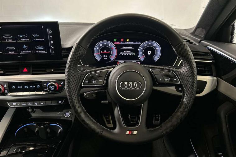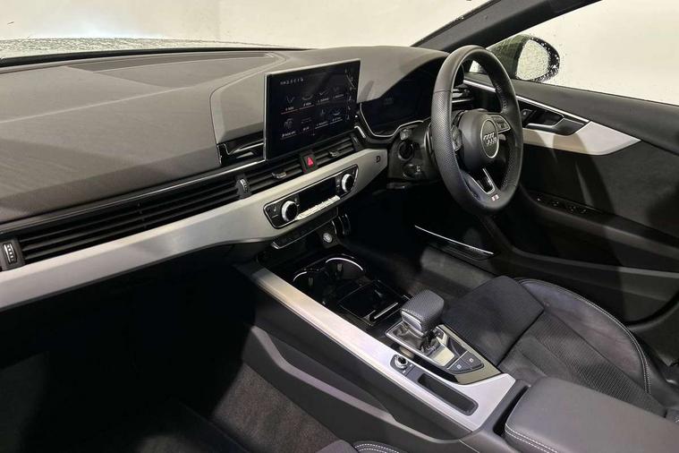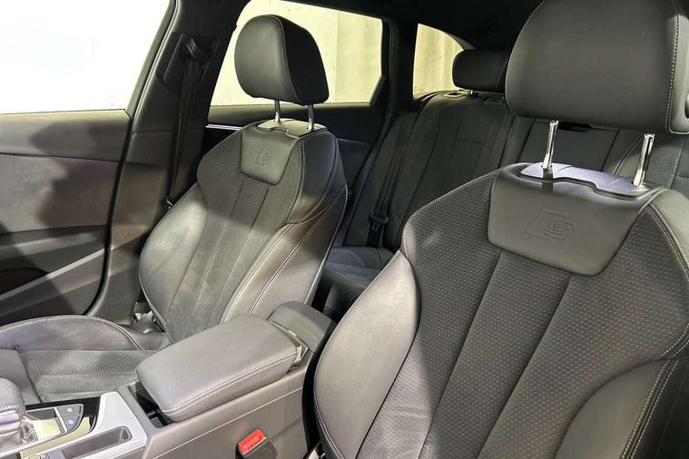 Audi connect safety and service (e-call), Audi drive select, Audi smartphone interface, Audi virtual cockpit, Automatic start-stop system with coasting functionality and efficiency programme, Bluetooth interface, Camera based traffic sign recognition, Electromechanical power steering, Email, calendar and text messages displayed via MMI, Front and rear parking sensors, Lane departure warning, MMI Navigation plus with MMI touch includes 10.1" high resolution colour MMI display, 3D map, Power operated tailgate, Rear view camera, Voice control system, 54 litre fuel tank, Sports suspension lowered by 23mm, 2 USB charging ports, 8 passive loudspeakers, DAB digital radio reception, Aluminium roof rails, Auto dimming rear view mirror, Body colour door handles, Body colour front spoiler lip, Body colour side sill trim, Body coloured door mirrors, Electric adjustable/heated/folding door mirrors with auto dimming, Grained matt black side air inlets with matt aluminium silver inlay, High beam assistant, Honeycomb structure radiator grille in grained matt black, LED headlights with LED rear lights + dynamic rear indicators + headlight adjustment and high beam, turning light + LED daytime running lights, LED third brake light, Matt aluminium silver tailpipe trim, Privacy glass, Rain and light sensors, Rear side wing doors, Rear wiper, S Line badges on the front wings, S line front and rear bumpers with side skirts, S Line rear diffuser in matt anthracite black with trim strip in matt aluminium silver, S Line roof edge spoiler, Variable intermittent front wash/wipe, Windscreen with acoustic glazing, 3 spoke high multi-function sports leather steering wheel grips in perforated leather with S badging including paddle shift, 4 way electric lumbar support for driver and front passenger, 40/20/40 split folding 3 rear seat bench in 3 parts with rear centre armrest, Black carpets, Black cloth headlining, Black perforated leather gearknob, Contrast stitching on seats, steering wheel and gear lever gaiter, Deluxe 3 zone electronic climate control, Electric load area cover, Front and rear head restraints, Front centre armrest, Heated front seats, Illuminated door sill trims with S logo, ISOFIX child seat mounting and top tether, Manual seat adjustment, Single front passenger seat, Stainless steel pedals and foot rest, High gloss package - A4, LED Interior light pack - A4/S4, 3 rear seatbelts, 6 airbags - Driver, front passenger, curtain and side windows, Attention and drowsiness assist, Electronic Stabilisation Control (ESC) including ABS, ASR and EDL, Hill hold assist, Multi collision brake assist, Pop-up bonnet for pedestrian protection, Pre sense city, Rear door child safety locks, Seatbelt monitoring, Warning triangle and first aid kit, Anti theft alarm, Anti theft wheel bolts, Central locking, Keyless Go, Matt brushed aluminium inlays, Tool kit, Tyre repair kit,