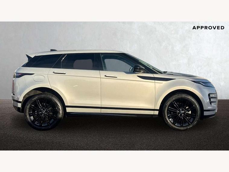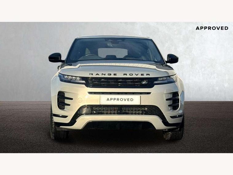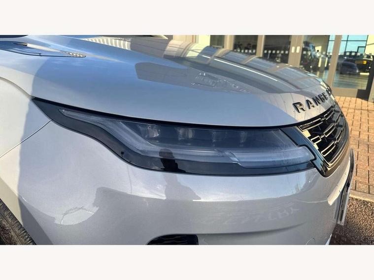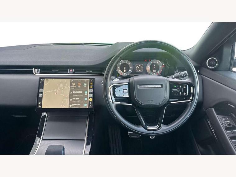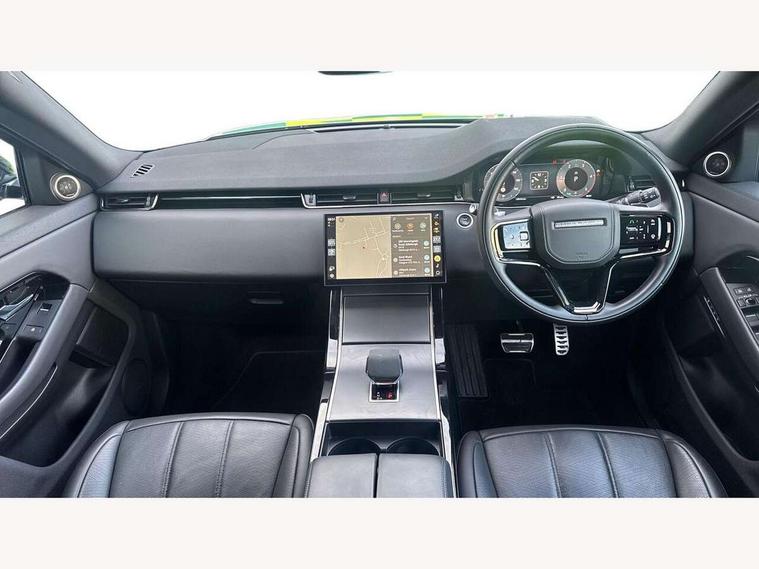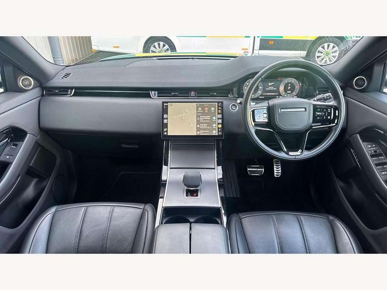 11.4" touch screen, Adaptive cruise control, Android Auto, Apple car play, Blind spot assist, Bluetooth connectivity, Brake pad wear indicator warning light, Driver condition monitor, eCall emergency system, Eco mode, Electronic power assisted steering (EPAS), Front and rear parking aid, InControl remote, Interactive driver display, Land Rover InControl apps, Lane keep assist, Pivi pro connected includes diamond pivi variant, smart settings, connected navigation pro, nuance speech licence, Powered tailgate/boot lid, Rear collision monitor, Rear traffic monitor, Traffic sign recognition with adaptive speed limiter, Voice control system, Wireless device charging, All terrain progress control, Diesel exhaust fluid (DEF) large tank, Efficient Driveline, Large fuel tank, Passive suspension, Terrain Response 2, Digital Audio Broadcast radio-DAB, Steering wheel mounted controls, Acoustic laminated windscreen, Auto headlights, Automatic headlight levelling, Electric windows with one touch open/close and anti trap, Flush deployable exterior door handles, Front and rear recovery eyes, Front fog lights, Heated rear window with timer, Heated washer jets, Heated windscreen, Pixel LED headlights with signature DRL and LED tail Lights, Power fold, auto-dimming, heated door mirrors with approach lights and auto dimming driver side, Rain sensing windscreen wipers, Rear animated directional indicators, Rear fog lights, Rear side wing doors, Rear wiper, Side repeater indicators in mirror, Tailgate spoiler, Third brake light, Winter wiper park position, 14 way driver memory electric front seats with 2 way manual headrests + 4 way lumbar support, bolsters, 40:20:40 split folding rear seats with centre headrest and armrest, Ambient interior lighting, Bright metal pedals, Carpet mats, Chrome tread plates with range rover branding Includes stainless steel loadspace scuff plate with etched graphic, Customer configurable single point entry, Electrically adjustable steering column with memory function and easy entry/exit, Front and rear cupholders, Heated steering wheel, Isofix system on outer rear seats, Overhead lighting console, Overhead stowage for sunglasses, Passive front head restraints, Rear air vents, Rear head restraints, Satin chrome gearshift paddles, Single passenger seat, Sunvisors with illuminated vanity mirrors, Twin sliding front centre armrest, Online pack with data plan - Evoque, Power socket pack 2 - Evoque, 3 rear 3 point seatbelts, Anti-lock braking system (ABS), Brake hold function, Customer configurable autolock, DSC - Dynamic Stability Control, Electronic brake force distribution, Electronic parking brake, Electronic traction control, Emergency braking, Front and rear seatbelt reminder, Hill descent control, Hill launch assist, Low traction launch, Occupant protection assist, Passenger seat occupant detector, Power operated child locks, Roll stability control, Six airbags - Driver and passenger airbags/driver knee airbag/front side airbag and curtain airbags, Torque vectoring brake, Tyre pressure monitoring system, Alarm, Immobiliser, Intrusion sensor, Keyless entry, Locking wheel nuts,