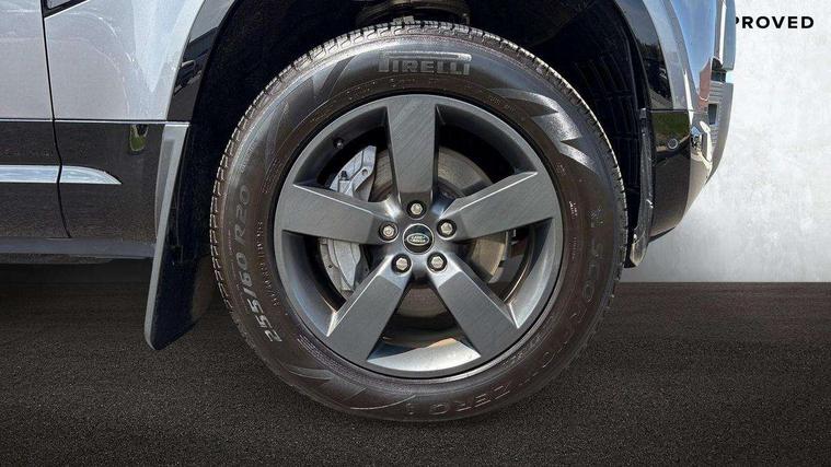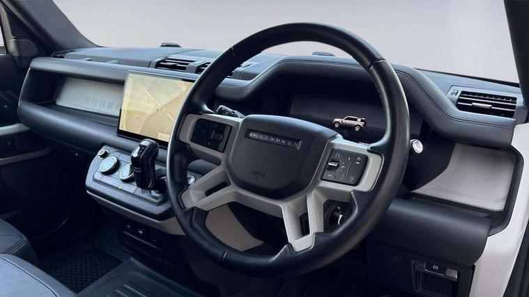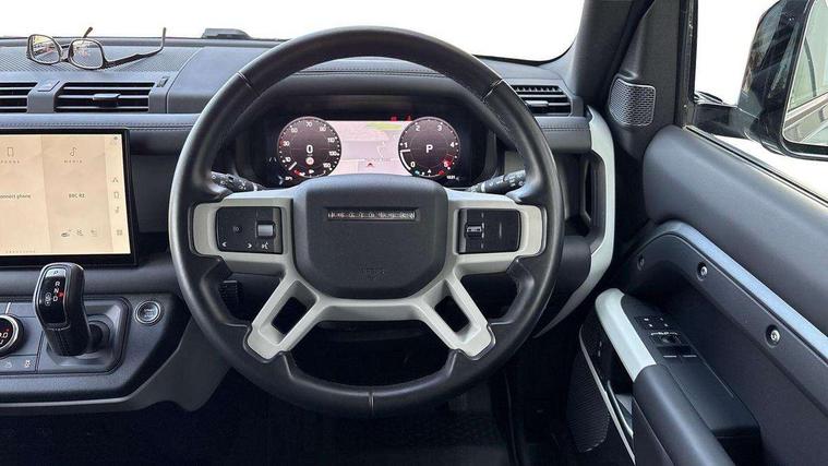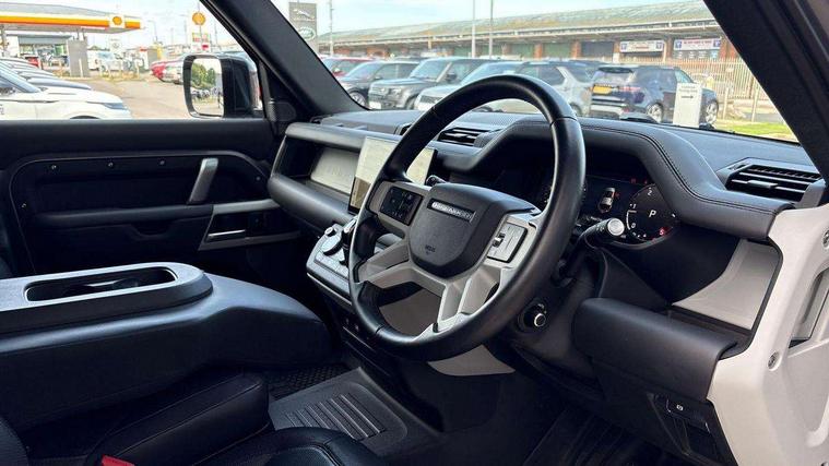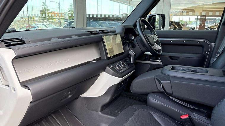 Customer Configurable Autolock, 11.4" touchscreen, 360 parking aid, 3D Surround Camera with 360 View, 180 Rear View, Front Traffic Detection, Forward Vehicle Guidance, Tow Hitch Assist and clear sight Ground View, Adaptive cruise control, Blind spot assist, Brake Hold, Driver condition monitor, Electric power assisted steering (EPAS), Lane keep assist, Low traction launch, Pivi pro connected, Rear collision monitor, Rear traffic monitor, Traffic sign recognition adaptive speed limiter, Trip computer, Tyre pressure monitor, Wade Sensing, Android Auto, Apple CarPlay, DAB Radio (Digital Audio Broadcasting), Meridian 280W sound audio system with 7 speakers with subwoofer, Alpine lights, Assisted tailgate, Auto High Beam Assist, Automatic headlight levelling, Automatic headlights and rain sensitive front wipers, Body coloured exterior Utility Panel, Centre high mounted stop light, ClearSight interior rear view mirror, Electric heated/power fold door mirrors with approach lights and auto dimming driver side, Electric windows with one touch open/close and anti-trap, Follow me home lighting, Front fog lights, Heated rear window with timer, Heated windscreen, LED tail light, Privacy glass, Puddle lights, Rear fog lights, Rear wash wiper, Side-hinged tailgate, Standard roof, X-Dynamic Badge, X-Dynamic Treadplate, 14 way heated and cooled electric adjustable memory front seats with 4 way manual headrests, Additional lashing points, Black exposed rear recovery eyes, Dual zone climate control, Durable rubber cabin flooring, Electric adjustable steering column, Footwell lights, Front jump seat and folding front centre armrest, Front passenger seat ISOFIX points, Full height bulkhead behind row 1 seats, Glovebox storage, High sided rubber mats, Loadspace cover, Loadspace hooks, Loadspace rubber mat, Lockable and illuminated underfloor storage compartment (x1 under boot floor and x1 accessible via rear doors), Overhead stowage for sunglasses, Premium cabin lighting, Rear centre headrest, Rear reading light, Signature graphic, Standard seating configuration, Sunvisors with illuminated vanity mirrors, Twin front cupholders with cover, Upgraded loadspace LED lighting, Online pack - Defender with data plan, Brake pad wear indicator, Electronic traction control, Emergency braking, Front airbags, with passenger seat occupant detector, Power operated child locks, Remote for (e-Call, Optimised assistance call, InControl app, Climate, beep and flash and door), Seat belt reminder, Intrusion sensor, Keyless entry system, Locking wheel nuts, 8 speed automatic transmission, ABS and EBA, All wheel drive, CBC - (Cornering brake control), Dynamic stability control, Electronic brake force distribution, Electronic park brake, Gradient acceleration control, Hill Descent Control, Hill start assist, Particulate filter (DPF), Push button start, Roll stability control, Trailer stability assist, Twin speed transfer box (high/low range), Extended leather upgrade,