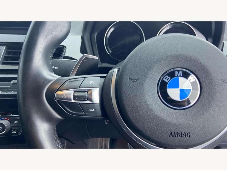Active Guard incl approach control warning with city brake function and person warning with city brake function, Apple car play, Automatic powered electric bootlid, BMW ConnectedDrive online services, BMW Navigation system with 8.8" monitor, BMW Online services, BMW remote services, BMW Teleservices, Brake pad wear indicator in front and rear, Check Control warning system for monitoring of lights and door/luggage compartment open warning, Electric Power Steering (EPS) with Servotronic, Electro hydraulically controlled multi plate clutch in rear axle, Energy efficient operating strategy, Front axle single joint with specific axle kinematics to minimise drive influences on steering + provide increased rigidity agile driving behaviour, Front/rear park distance control, Instrument cluster with black optic and 5.7" colour display + speedometer + tachometer + fuel gauge + instant fuel economy, Integrated owners handbook, Lights on warning by audio warning signal when ignition is switched off, On board computer - average speed+fuel consumption, service interval, clock/date, odometer/trip meter, outside temperature display and ice warning, Operation by iDrive with direct selection buttons and 8 programmable buttons, Optimum shift indicator, Park assist system, Personal Profile, Real time traffic information, TMC for lifetime of vehicle, 12V compressor with integrated sealant injection bottle and hose, Anti roll bar front and rear, Balancer shaft, Diesel particulate filter, Drive performance control with ECO PRO comfort + sport mode, Electronic differential lock, Performance Control, Sport automatic transmission, Transmission of power to rear axle via front axle differential and two-part cardan shaft, Twin tube gas filled shock absorbers with degressive characteristic curve, Variable vane geometry, xDrive intelligent four wheel drive system, Bluetooth audio streaming, DAB Digital radio, Steering wheel mounted audio/telephone controls, Adjustable headlights, Aero curtain, Automatically dimming rear view mirror, BMW badge on bonnet, tailgate with integrated tailgate release and C pillars, Body colour door handles, Body colour mirror caps, Body colour roof trims, Chrome exhaust twin tailpipe round 90mm in left and right split, Chrome kidney grille with black vertical slats, Clear lenses direction indicator lights, Dark shadow front air intakes, Direction indicator side lights integrated in exterior mirrors using LED technology, Door mirror integrated indicators, Dynamic brake lights, Electric folding exterior mirrors with anti-dazzle, Electrically adjustable and heated door mirrors glass aspheric on driver's side and convex on passenger side, Engine designation on electric bootlid - right, Fingertip control / anti-trap function on electric window, Front and rear bumper system, Front and rear electric windows, Green tinted heat protection glazing, Heated windscreen washer jets, High gloss black front side air intake with matt black insert, High gloss black in window frame, recess covers and B-Pillar trim, High gloss shadowline in window frame, recess covers, mirror frame and B-Pillar/C- pillar trim, High level third brake light, Lightweight engineering, M logo designation in side chrome, M rear spoiler, Model designation in left tailgate, Rain sensor with automatic headlight activation, Rear fog lights, Rear tail lights with LED technology and 3D design, Rear window aerial, Rear window wiper with wash/wipe function, Reversing light in rear light cluster, Shark fin antenna, Visible VIN plate, Welcome lighting, 2 cupholders in front centre console, 40:20:40 manually split folding rear seat with two tilt positions for backrest, Anthracite headlining, Armrest in centre section of rear seat backrest and folding, Automatic two zone climate control air conditioning, Child seat ISOFIX attachment for two outer rear seats and front passenger seat with anchorage points, Conditioned based service, Contrast stitching on centre console and mid section of dashboard to match upholstery seam, Driver and front passenger seat heating, Driver/passenger sunvisors with ticket holders, Floor mats with black surround and M flag detail on front mats, Front and rear door armrests, Front armrest, Front axle always driven, Front door sill finishers with M designation, Front head restraints, Front sports seats, Gearshift paddles on steering wheel, Interior light in front centre interior mirrors and rear centre auto interior light activation when door is opened when ignition switched off, Luggage compartment lighting, Luggage compartment loading edge with stainless steel insert, M Sport multifunction leather steering wheel, Rake/reach adjustable steering wheel, Retaining strap on the left side of the luggage compartment, Single turbo charger, Three rear headrests, Additional interior lighting pack - X2, Extended storage pack - X2, M Sport aerodynamic pack - X2, 3 point seatbelts on all seats, front pyrotechnic belt tensioners, stopper and belt force limiters, rear coded belt buckles, Airbags - Front driver and passenger, front and rear head, front side, curtain head protection, Anti lock braking system (ABS) with brake assist, ASC - Active stability control, BMW emergency call, Brake drying, Brake energy regeneration, Braking readiness, Child proof locking system in rear door, Crash sensor activating central locking release with hazard warning lights and interior lighting + battery safety cut-off, Driver and front passenger seat belt security check, Dynamic stability control + (DSC+), Dynamic Traction Control - DTC, Electrically operated parking brake with automatic drive release, Front passenger airbag deactivation, Front ventilated brake disc, Hill descent control, Hill start assist, Multi collision braking system, Rear brake discs, Side impact protection, Twin horns, Tyre pressure monitor, Warning triangle and first aid kit, Auto door lock when driving, Central locking switch for all doors, fuel filler cap and luggage compartm