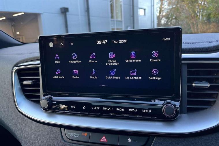 10.25" touchscreen satellite navigation, 12.3" TFT supervision cluster display, Android auto with voice control, Apple car play with voice control, Blind spot collision avoidance assist, Blind spot Collision Warning (BCW), Bluetooth with Voice Recognition & Music Streaming, Drive mode select (Normal and Sport), Driver attention warning with leading vehicle departure warning, Emergency call service, Emergency stop signalling system, Forward Collision-Avoidance Assist (FCA) 1.5 - City/Pedestrian/Cyclist/Junction turning, Front and rear parking sensors, Intelligent speed limit warning, Kia connect, Lane Following Assist (LFA), Lane keep assist, Motor driven power steering, Rear cross traffic collision avoidance assist (RCCA), Reversing camera with dynamic guide lines, Safe exit warning (SEW), Smart cruise control with stop and go functionality, Smart power tailgate, Tailgate, Trip computer, Wireless Mobile Phone Charger, Intelligent Stop and Go, 2 Front USB Charge port (one for C-type/one for USB), DAB Radio with MP3, JBL Premium sound system with 8 speakers, Rear console USB C-type charge port, Steering wheel mounted controls, All-round Electric Windows with Auto Up & Down Function, Auto dimming rear view mirror, Automatic defog system, Automatic headlights, Body colour bumpers, Body colour side sill mouldings, Body coloured rear roof spoiler with high gloss black trim, Body coloured wheel arches, Chrome window surround, Electric adjustable/heated/folding door mirrors with LED Indicators, Exterior front door handle illumination, Heated rear window with timer, High beam assistant, High Gloss Black and Satin Chrome Radiator Grille, High gloss black door mirrors, LED 3rd brake light, LED daytime running lights, LED front fog lights, LED full width tail lights, LED Headlights, LED rear combination lights, LED rear fog light, Panoramic sunroof with tilt/slide function and automatic electric roll blinds, Privacy glass in rear windows and tailgate, Projection headlights, Rain sensing front wipers, Rear side wing doors, Rear wash/wipe, Satin finished beltline, Windscreen Washer Level Warning, 12V power socket in front centre console, 3 seat bench in 2nd row, 3 x passenger assist grips, 40:20:40 Split Folding Rear Seats with Remote Folding, All-round height adjustable headrests, Aluminium pedals, Black headlining, Centre Console with Storage Box and Sliding Armrest, Cupholders in rear armrest, Dash illumination dimmer switch, Driver + front passenger electric lumbar support, Driver and front passenger sunvisors with illuminated vanity mirrors, Driver's power seat height adjuster, Dual zone automatic air conditioning, Front and rear door storage, Front cabin LED light, Front Passenger Seat Height Adjuster, Front seatback pockets, Glovebox, Half perforated leather gearshift, Heated front seats, Heated outer rear seats, Heated steering wheel, Interior door lock/unlock function, ISOFIX Child seat top tethers and anchor fixings, Leather D-Cut steering wheel with grey stitching, Leather/Faux suede upholstery, Luggage area light, Luggage area parcel shelf, Luggage board, Luggage under floor storage, Memory driver's seat, Paddle shifter, Premium centre console with sliding cupholder cover, Rear Air Ventilation, Rear centre armrest, Rear coat hooks, Satin chrome interior door handles, Single front passenger seat, Tilt/telescopic adjustable steering wheel, ABS with Electronic Brakeforce Distribution (EBD) and Brake Assist System (BAS), All round 3-point seatbelts, Dual horn, Electronic parking brake with auto hold function, Electronic stability control (ESC) and vehicle stability management (VSM), Front passenger airbag cut off switch, Height adjustable front seatbelts, Hill start assist control (HAC), Impact sensing auto door unlocking, Rear airbags, Rear door child safety locks, Seatbelt reminder warning, Twin curtain airbags, Twin front airbags, Twin front side airbags, Tyre pressure monitoring system, Alarm system, Engine Immobiliser & Deadlocks, Engine Start/Stop Button with Smart Entry System, Locking wheel nuts, Speed sensitive auto door locking, Visible vehicle identification number, Black high gloss front console tray garnish & door trim, 18" GT-Line S alloy wheels, Tyre mobility system,